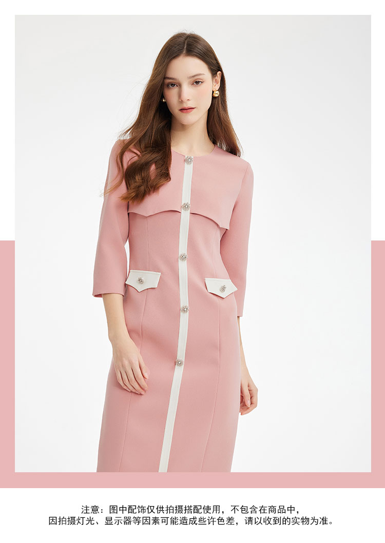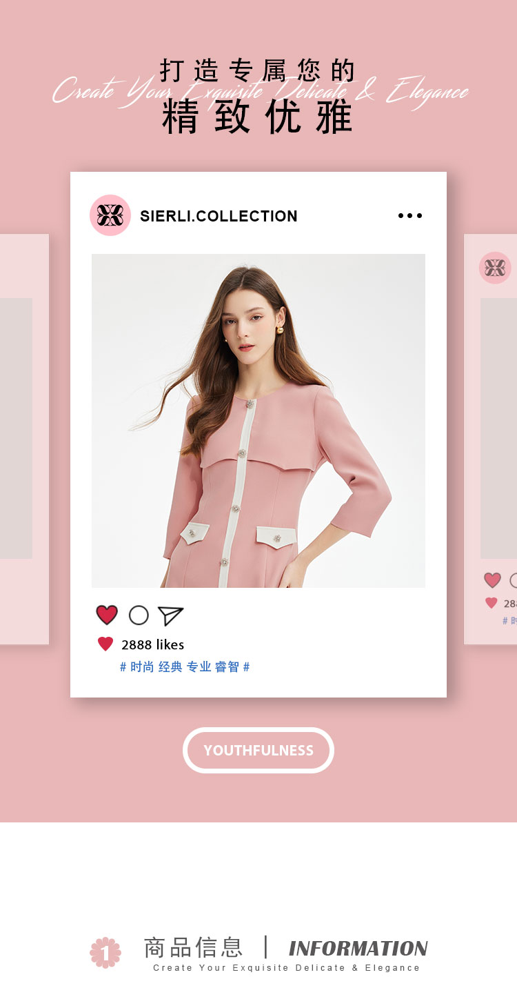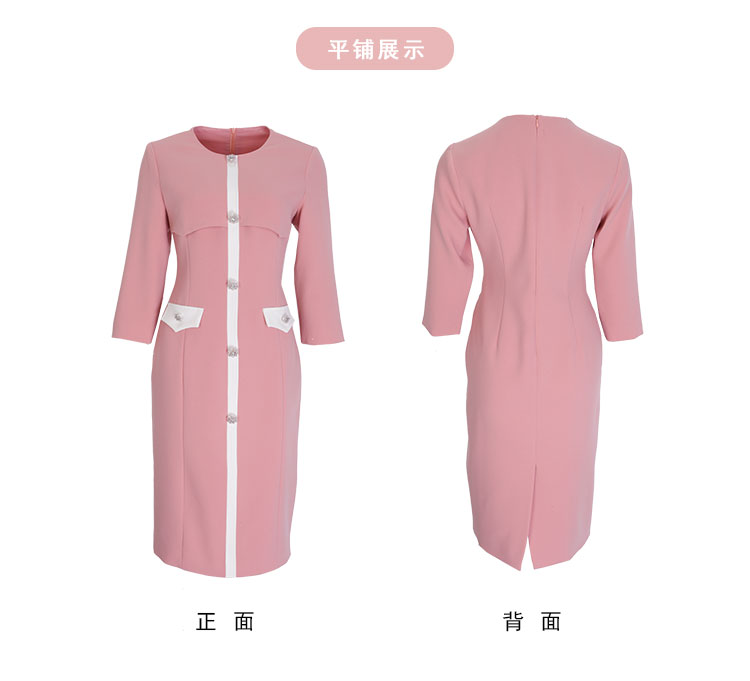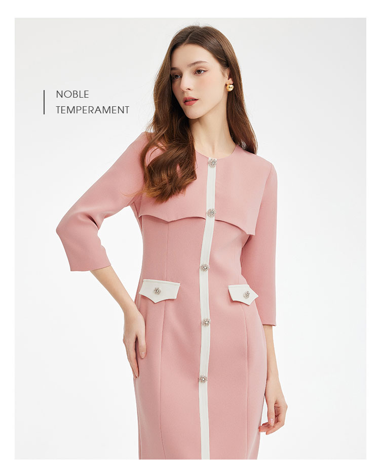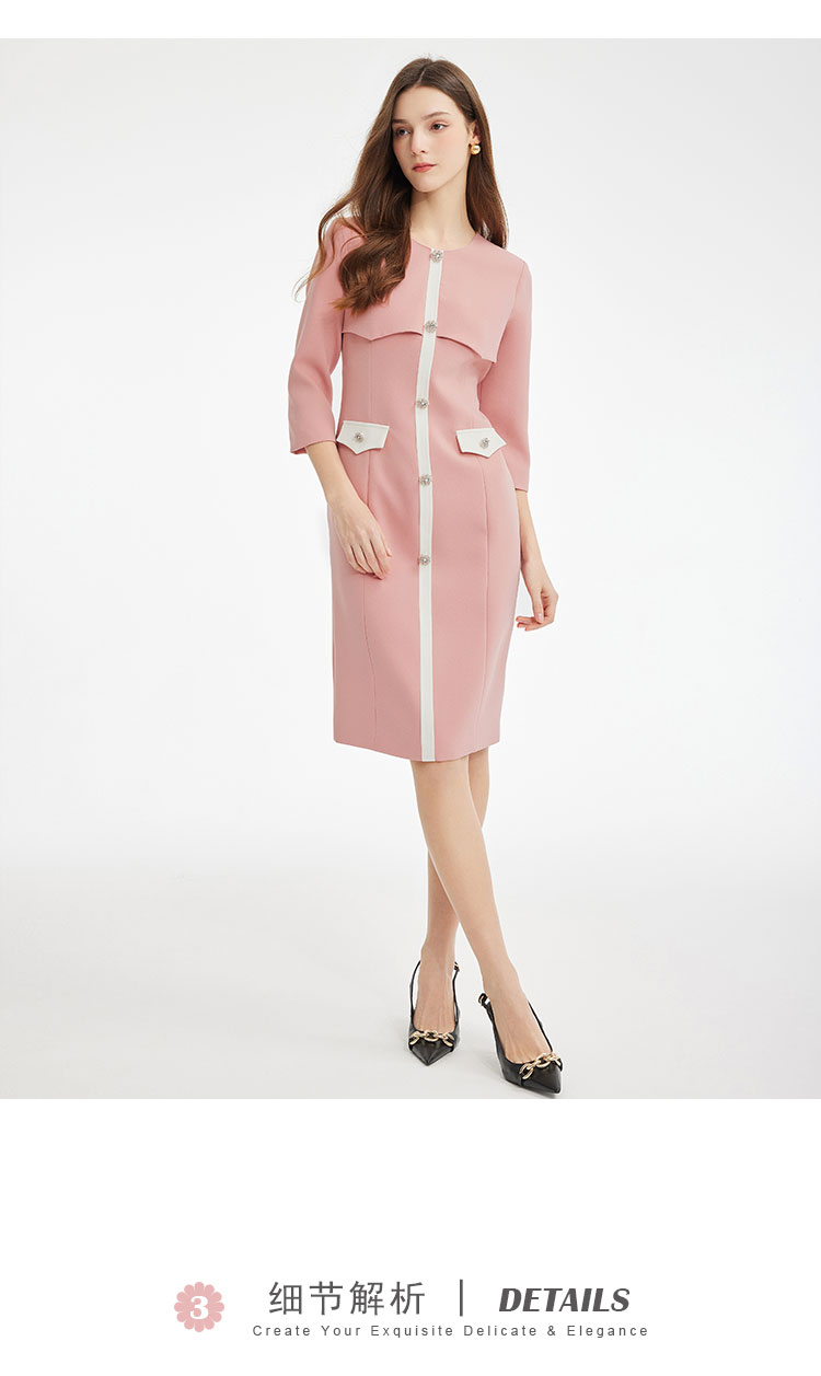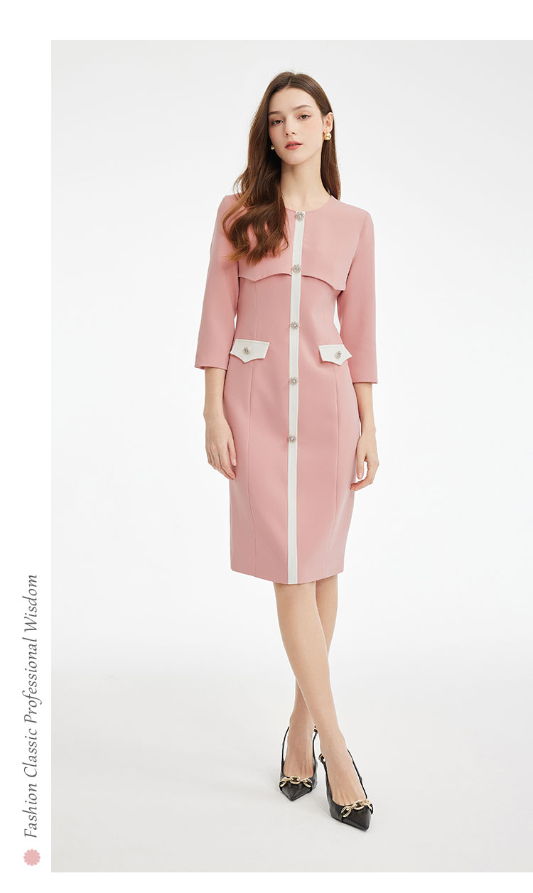 PF878斯尔丽2024新款气质高雅小香风系列职业装拼接收腰修身连衣裙
