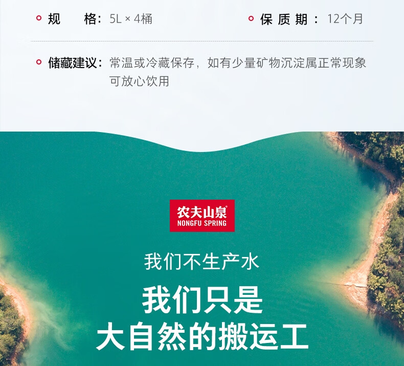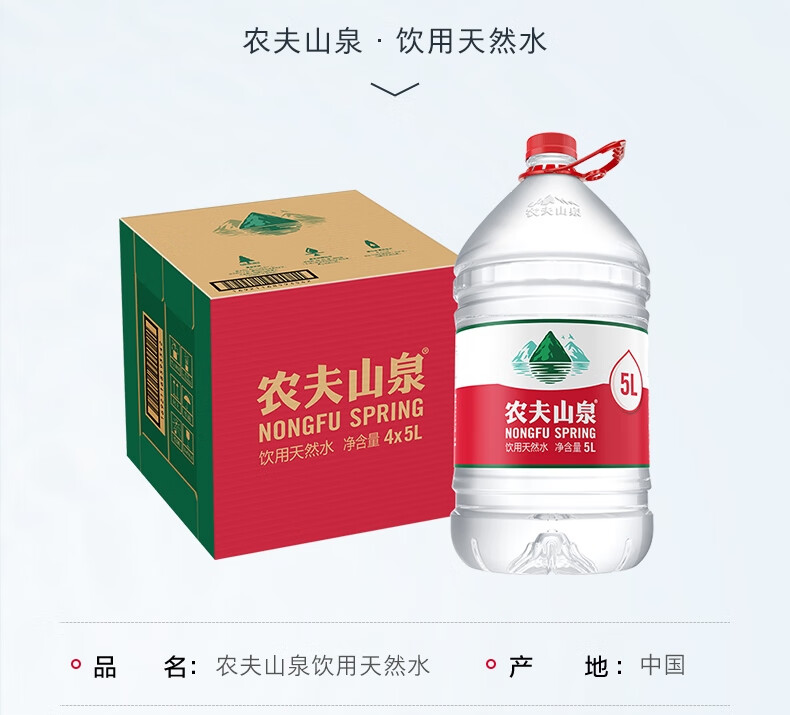 农夫山泉 饮用水 饮用天然水5L*4桶 整箱装 桶装水