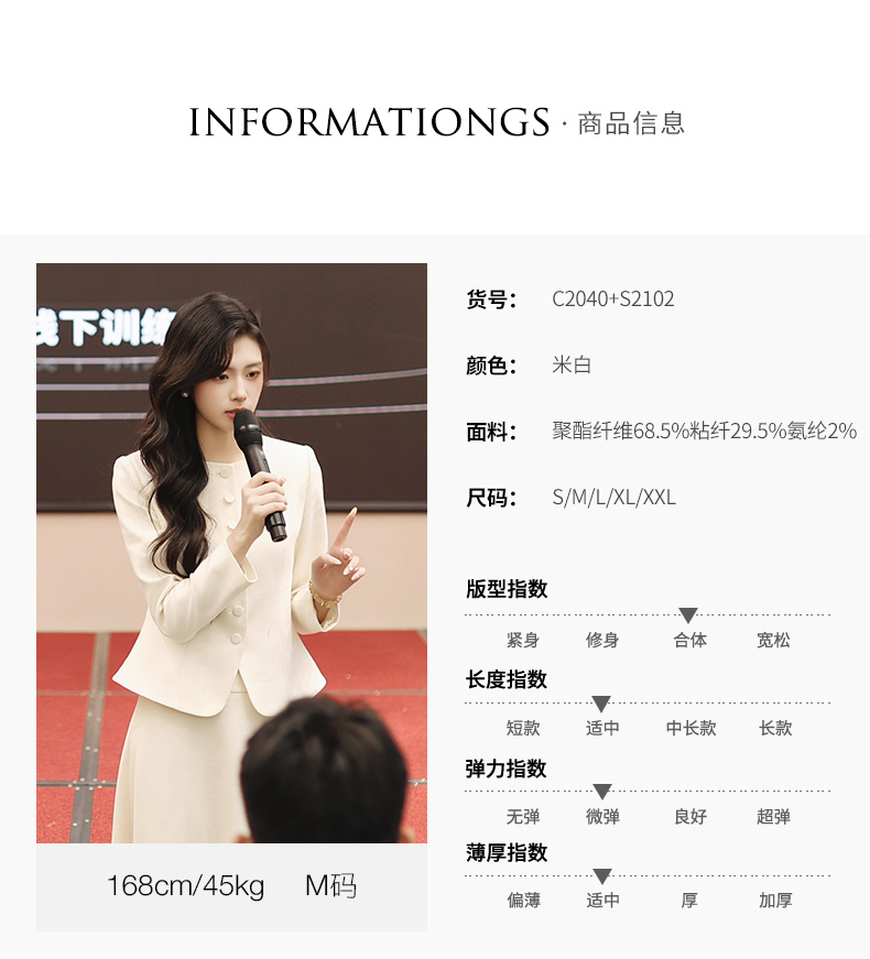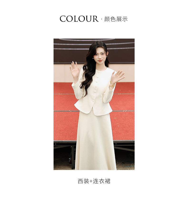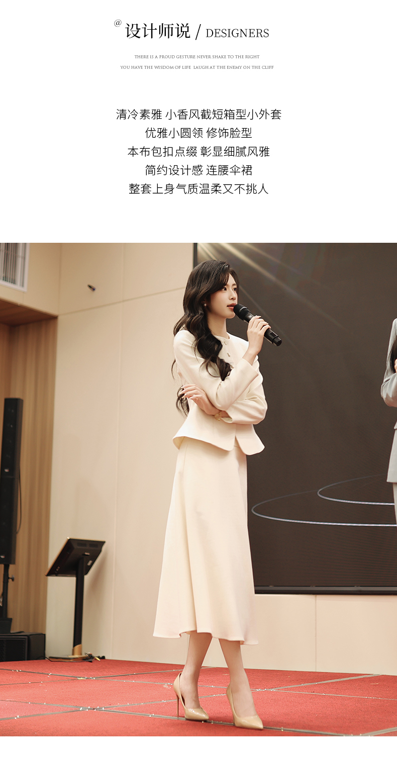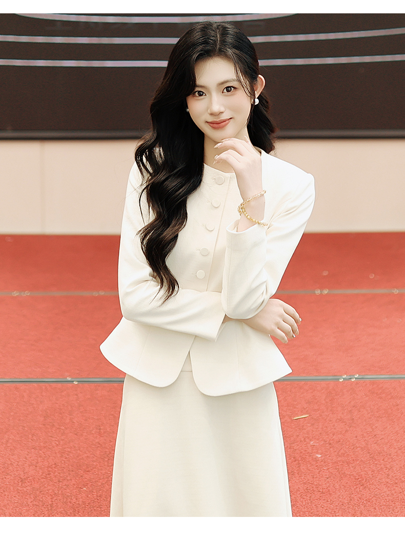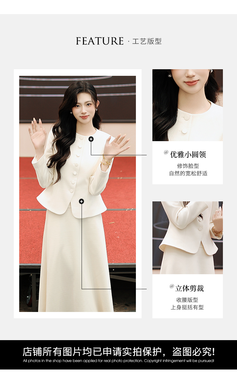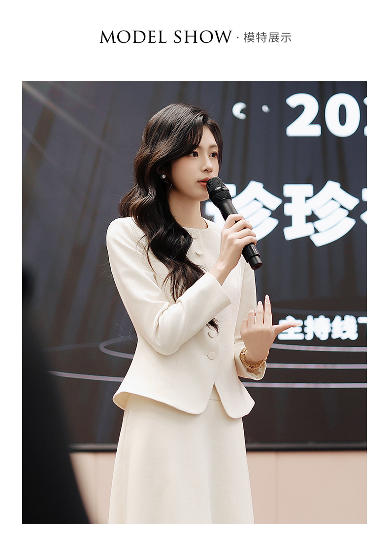 法小曼*子珍专款/春夏女2025年新款时尚套装年轻洋气减龄正装米白色职业装西装伞裙