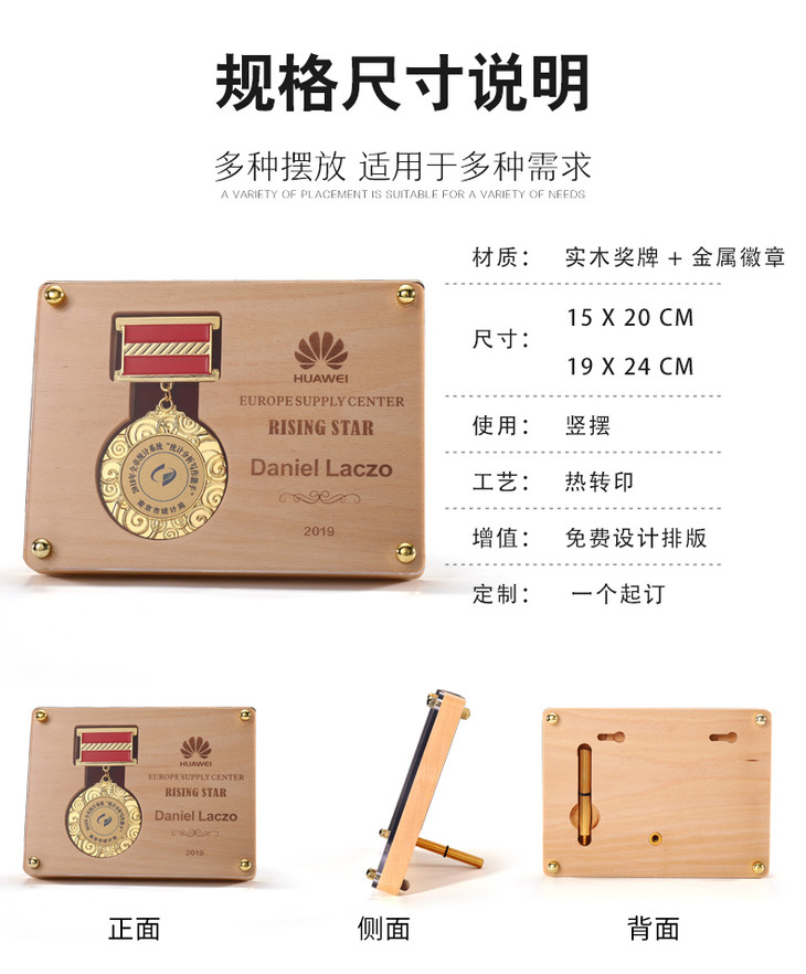 奖牌定制定做实木授权牌创意金属功勋荣誉奖章纪念品制作水晶奖杯