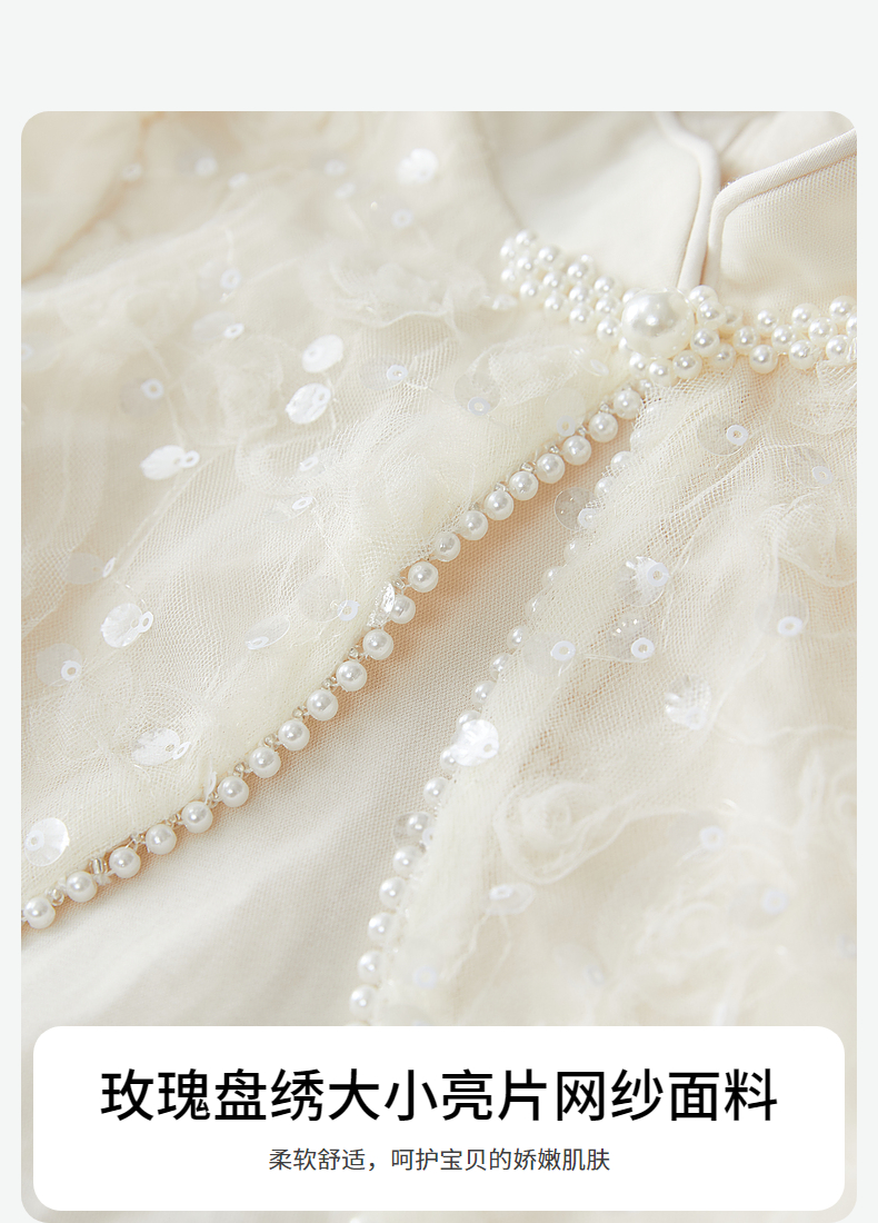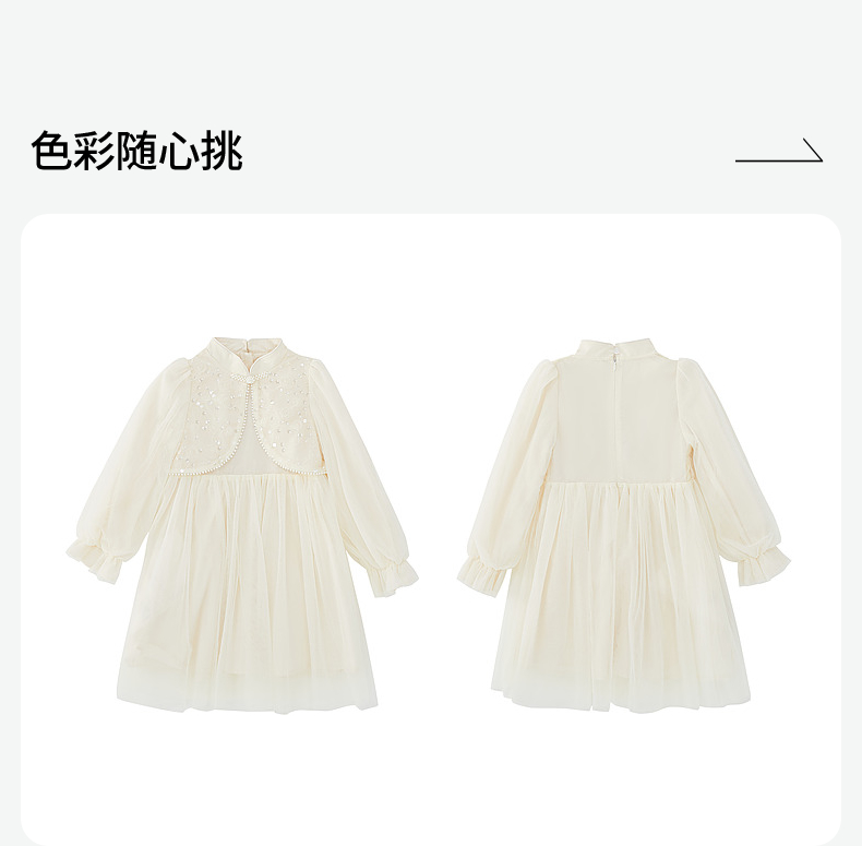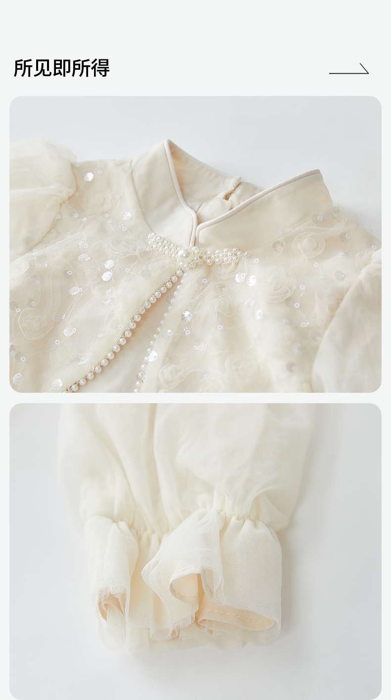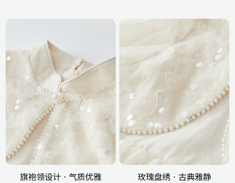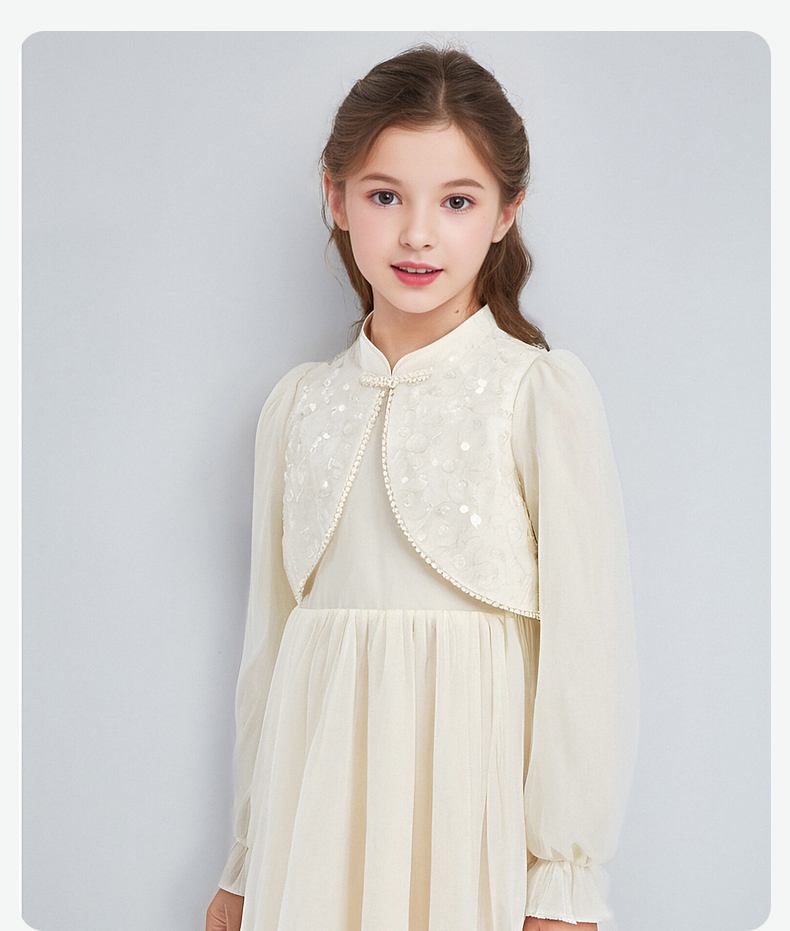 笛莎Deesha 连衣裙2024秋季新款中童淡雅米色亮片网纱新中式裙