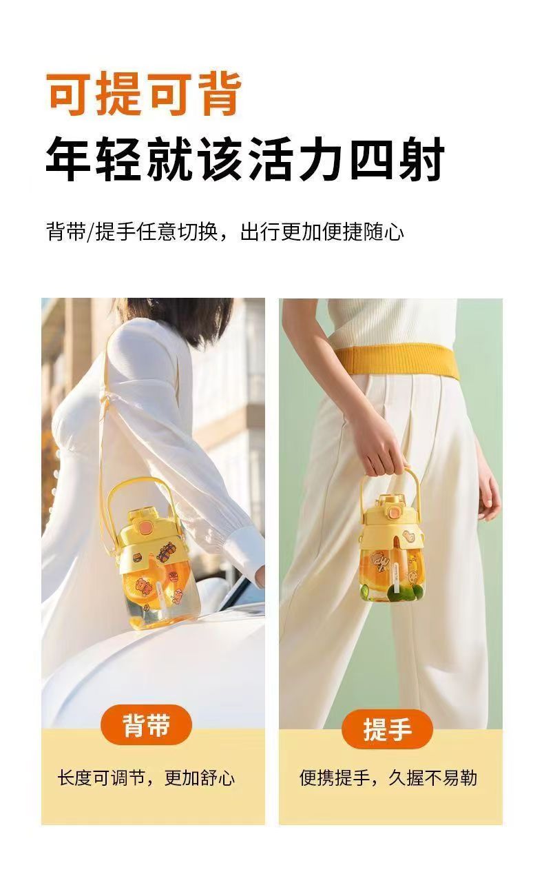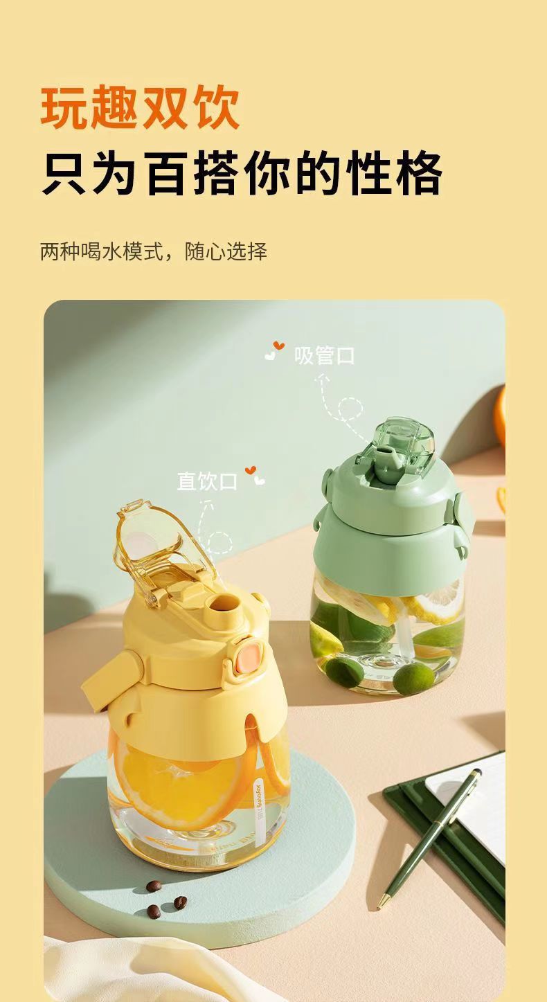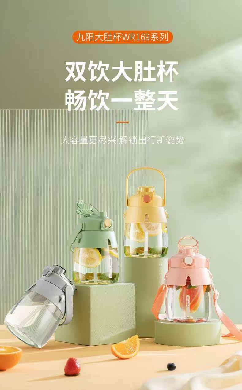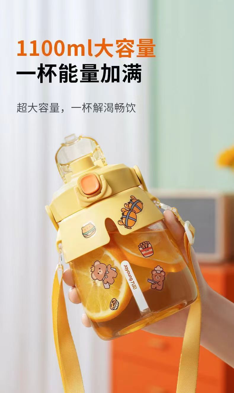 九阳Tritan大肚杯大容量1100ML水壶宝宝吸管杯网红款夏日补充水分