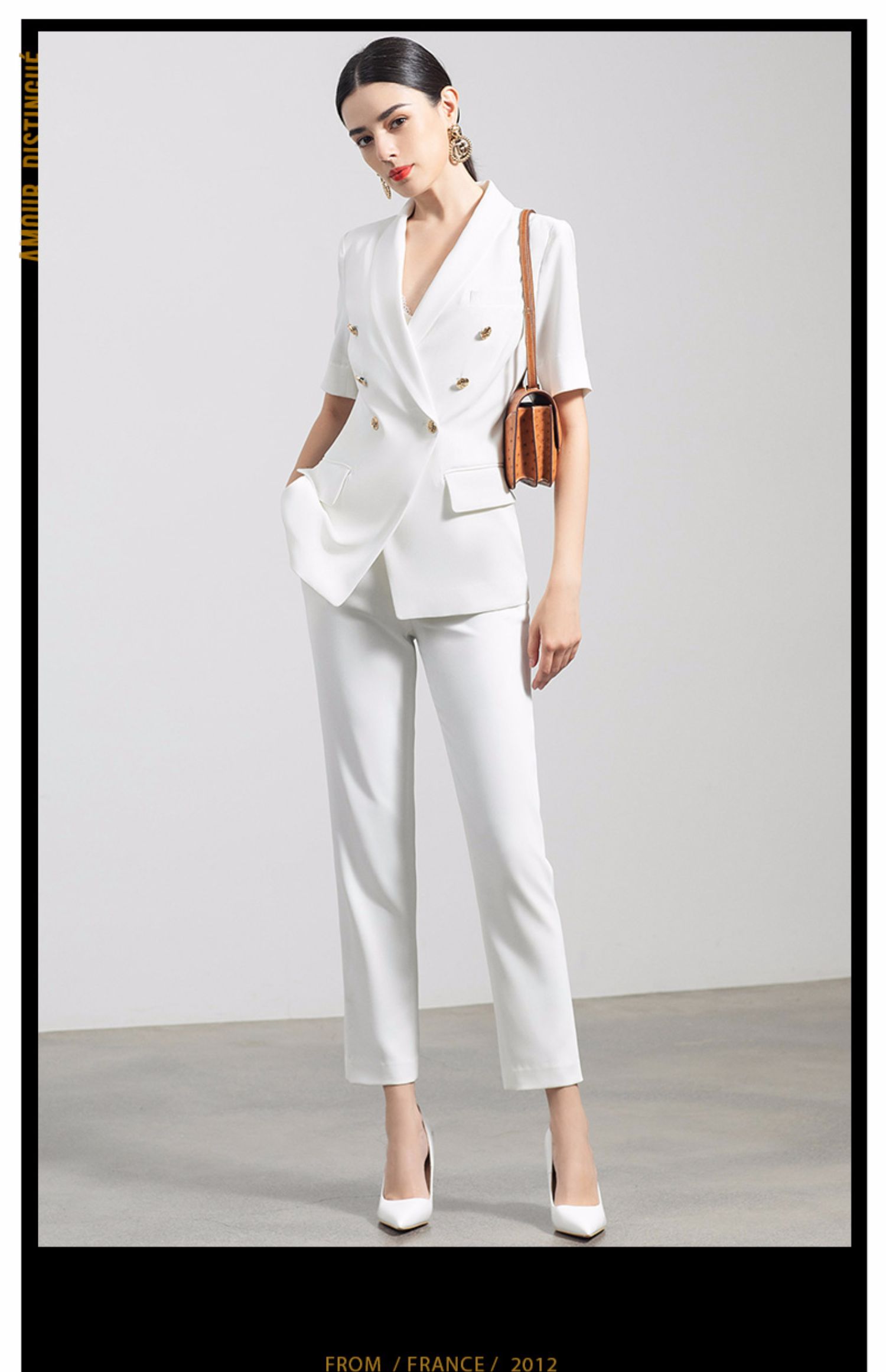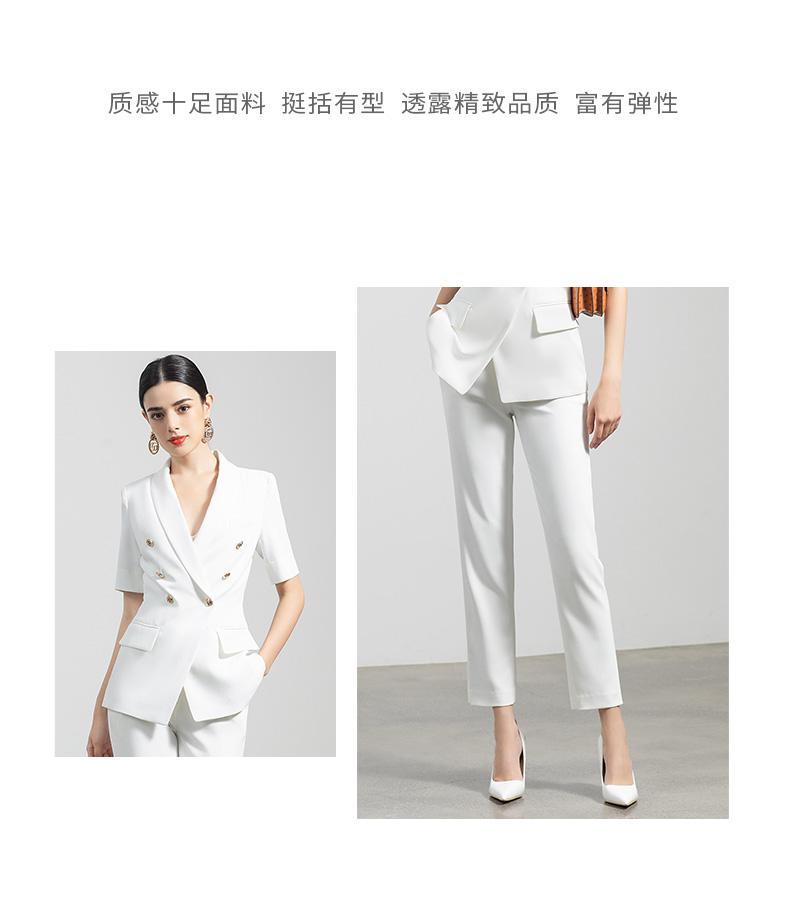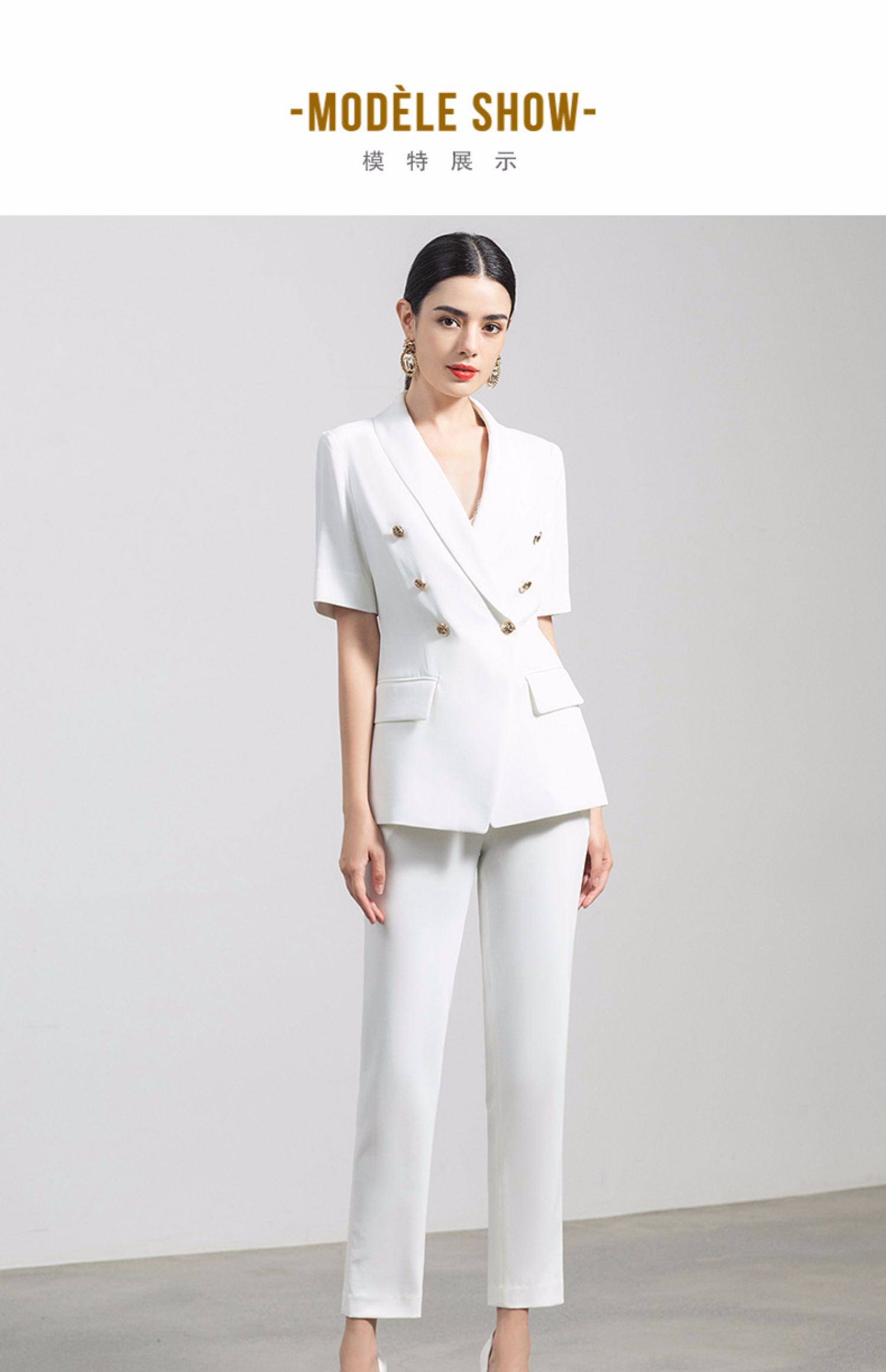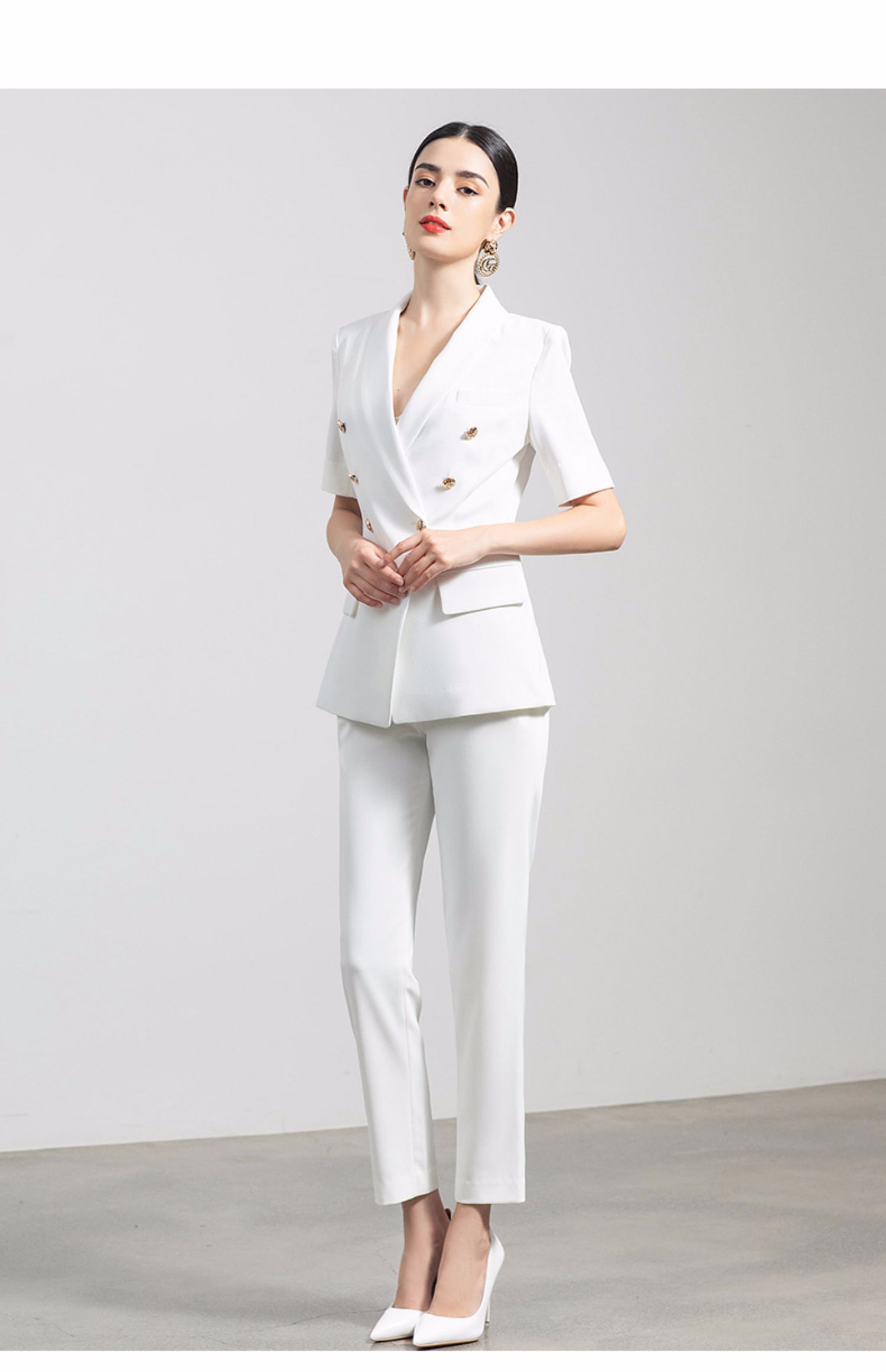 IWY/白色短袖西装套装女薄款气质高端职业装总裁正装休闲工作服OLC1247+P1246--