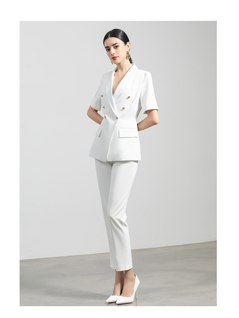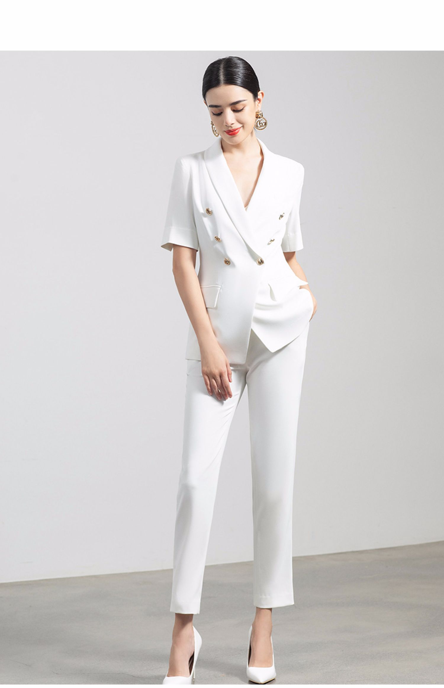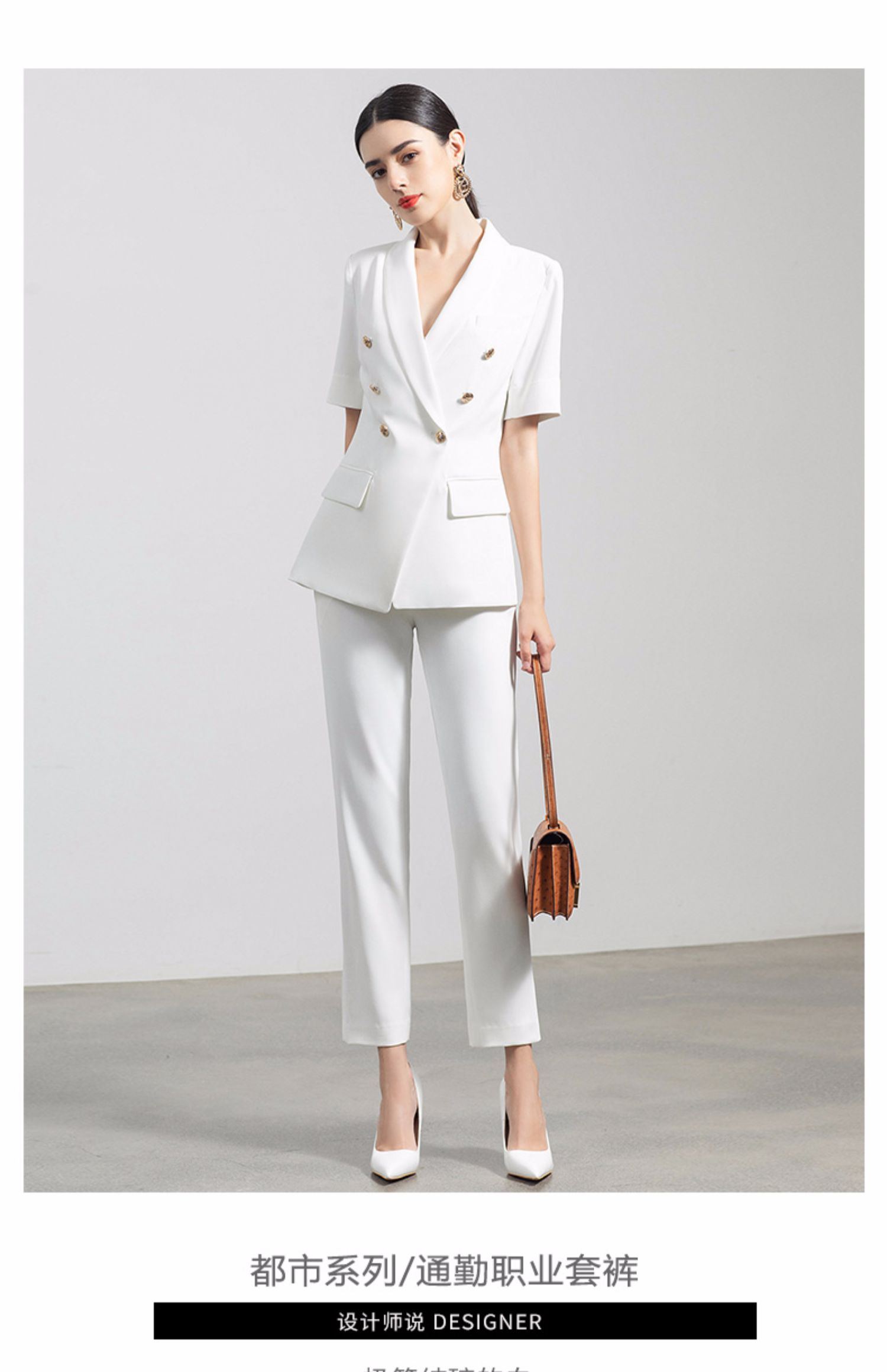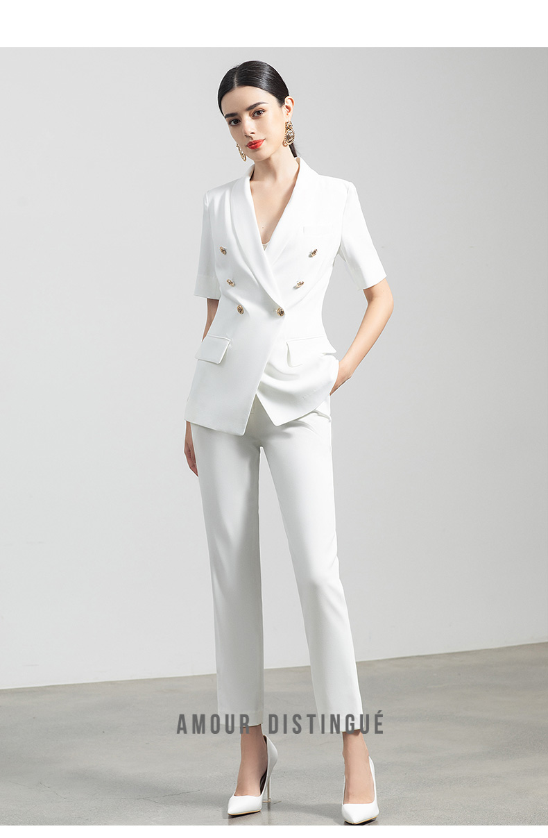 IWY/白色短袖西装套装女薄款气质高端职业装总裁正装休闲工作服OLC1247+P1246--