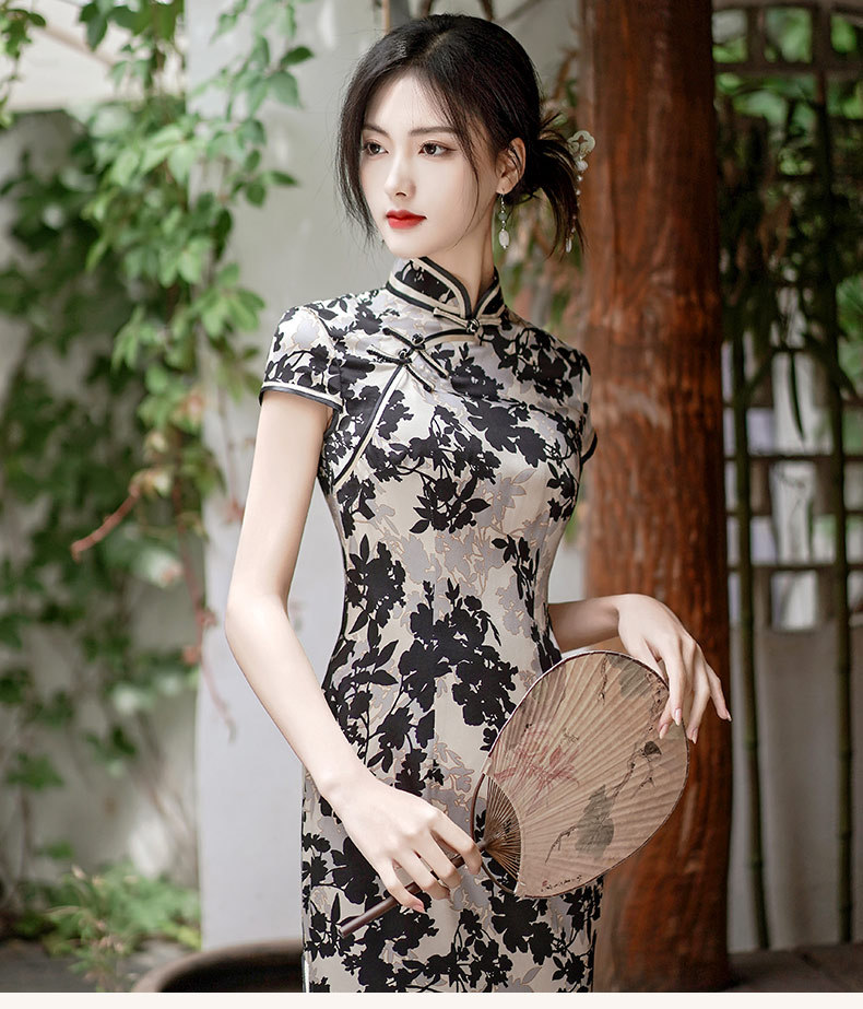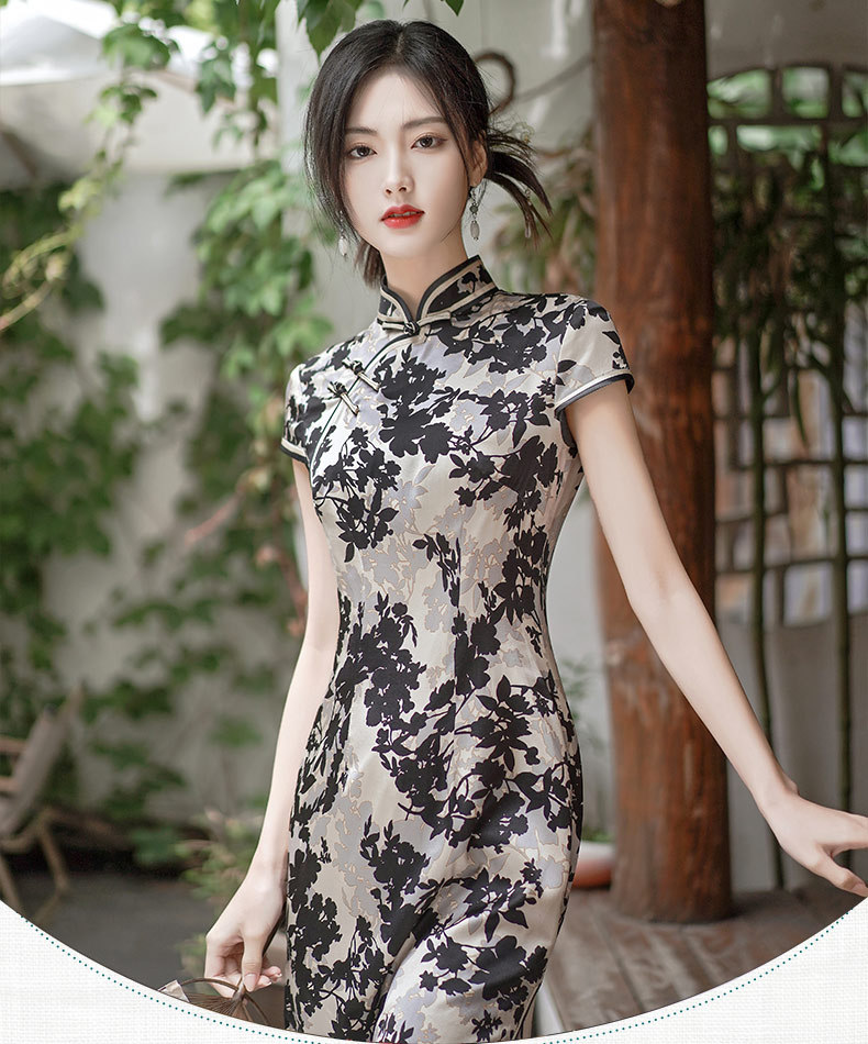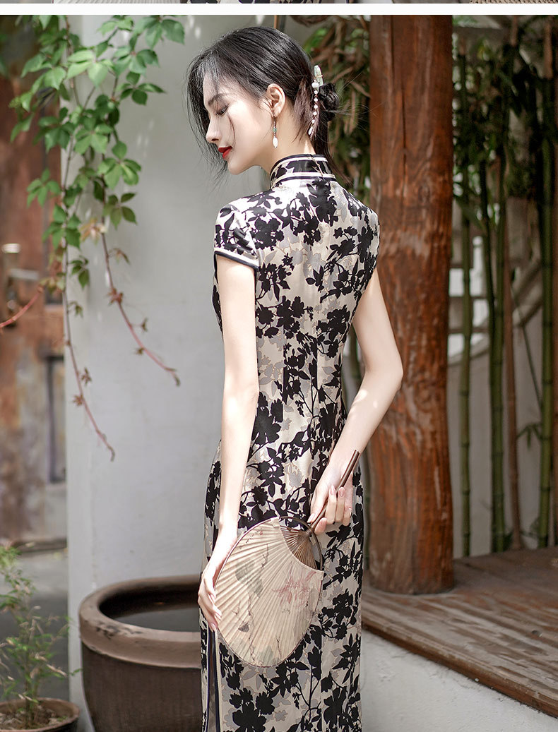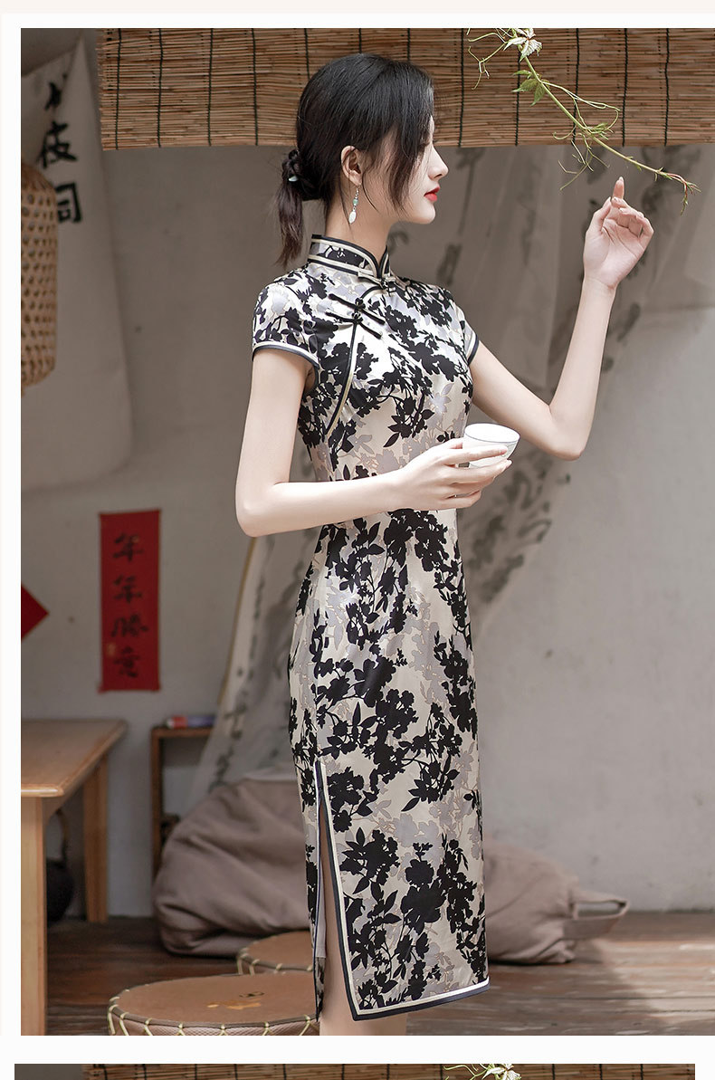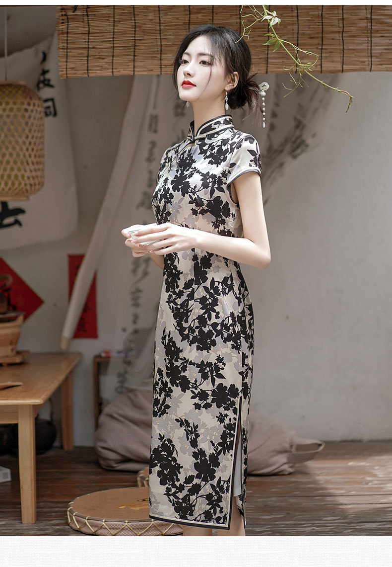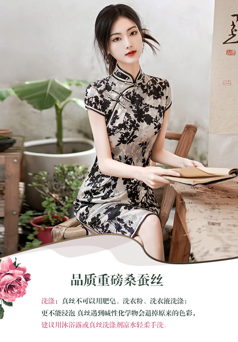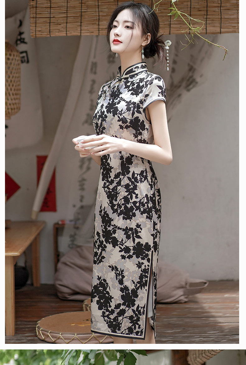 日常优雅,中长日常优雅年轻款复古改良真丝旗袍WXG-D345
