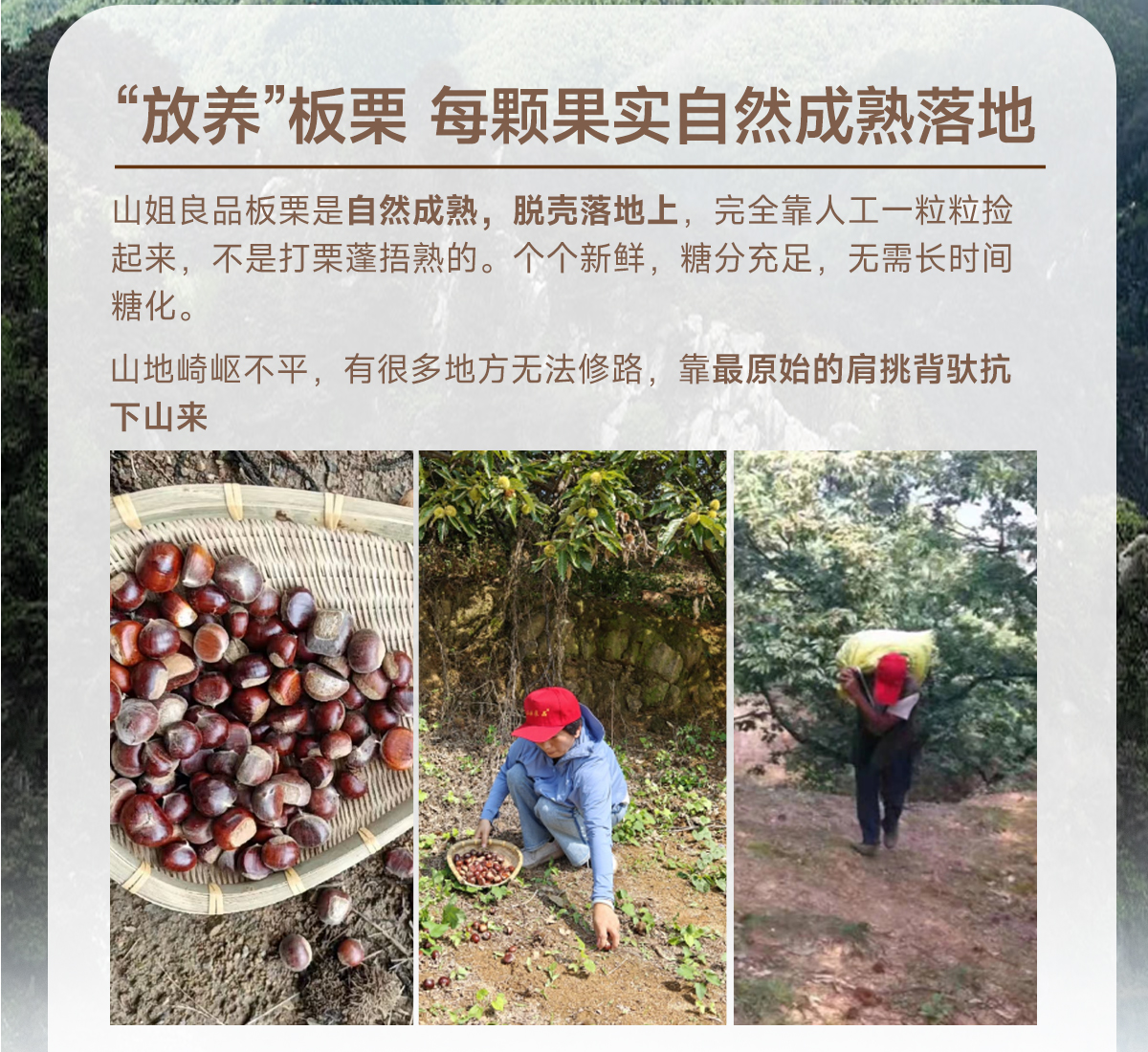 【品名/规格】山姐良品®沂蒙山百年老树板栗,3斤装/5斤装(无纺布袋)