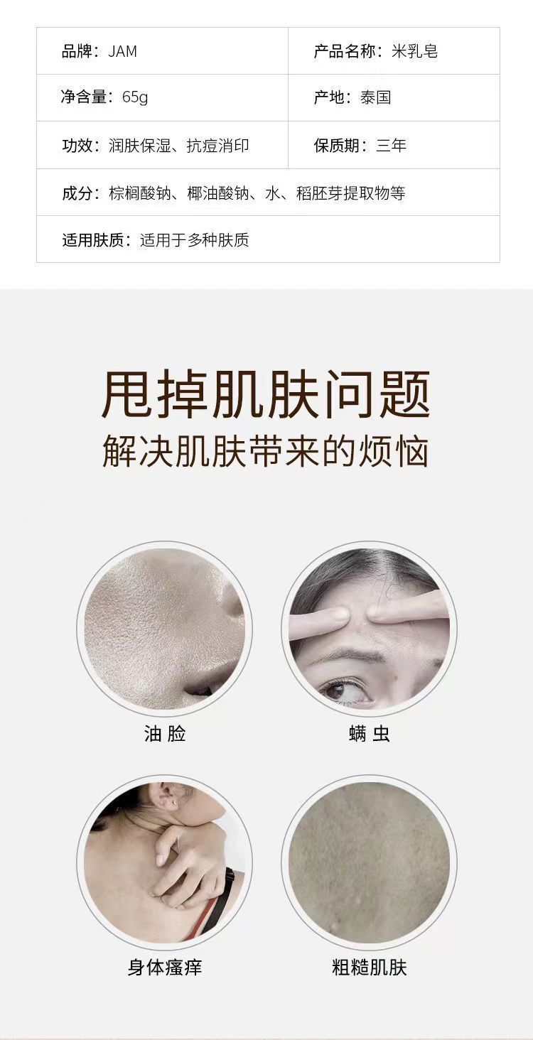 【爆款超低价预售 急单慎拍】泰国JAM大米皂天然洁面皂控油温和清洁除螨抑菌