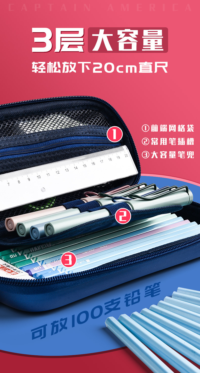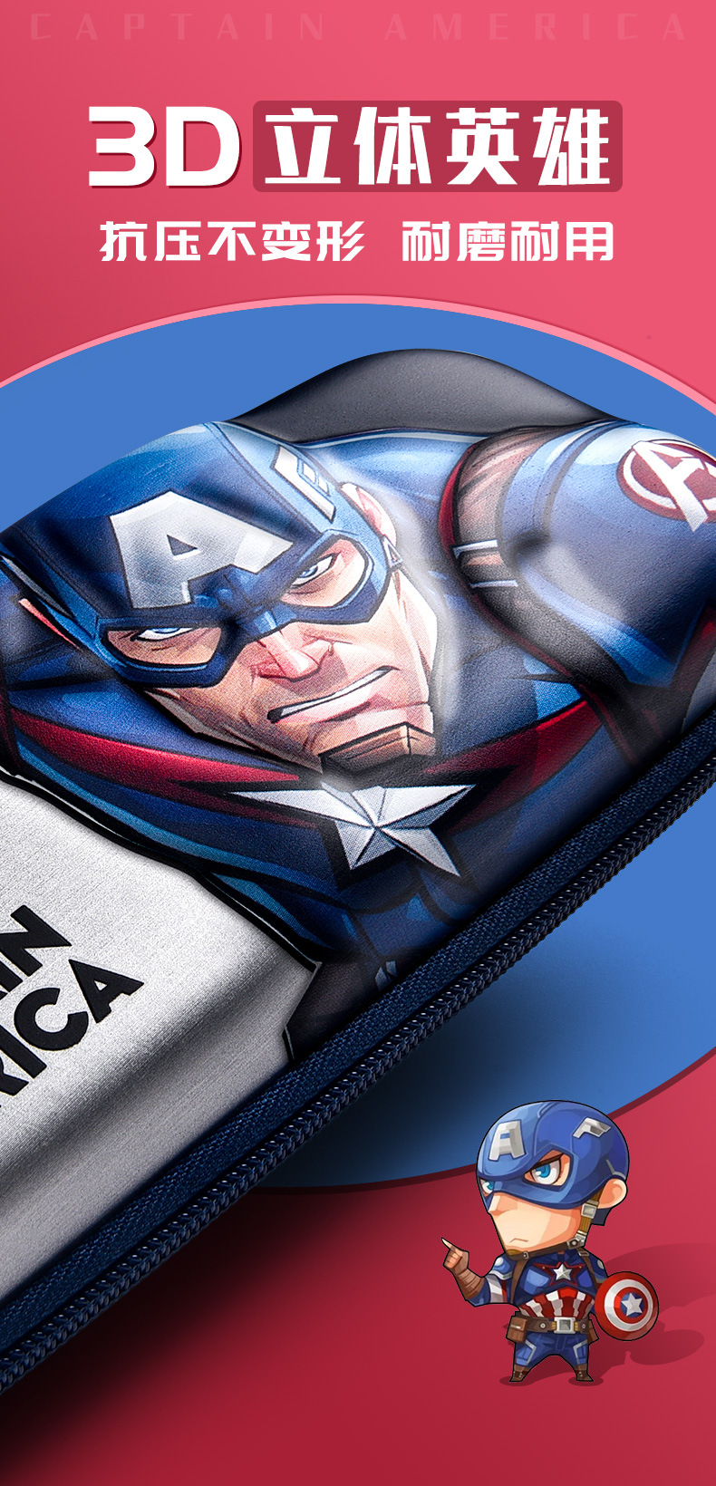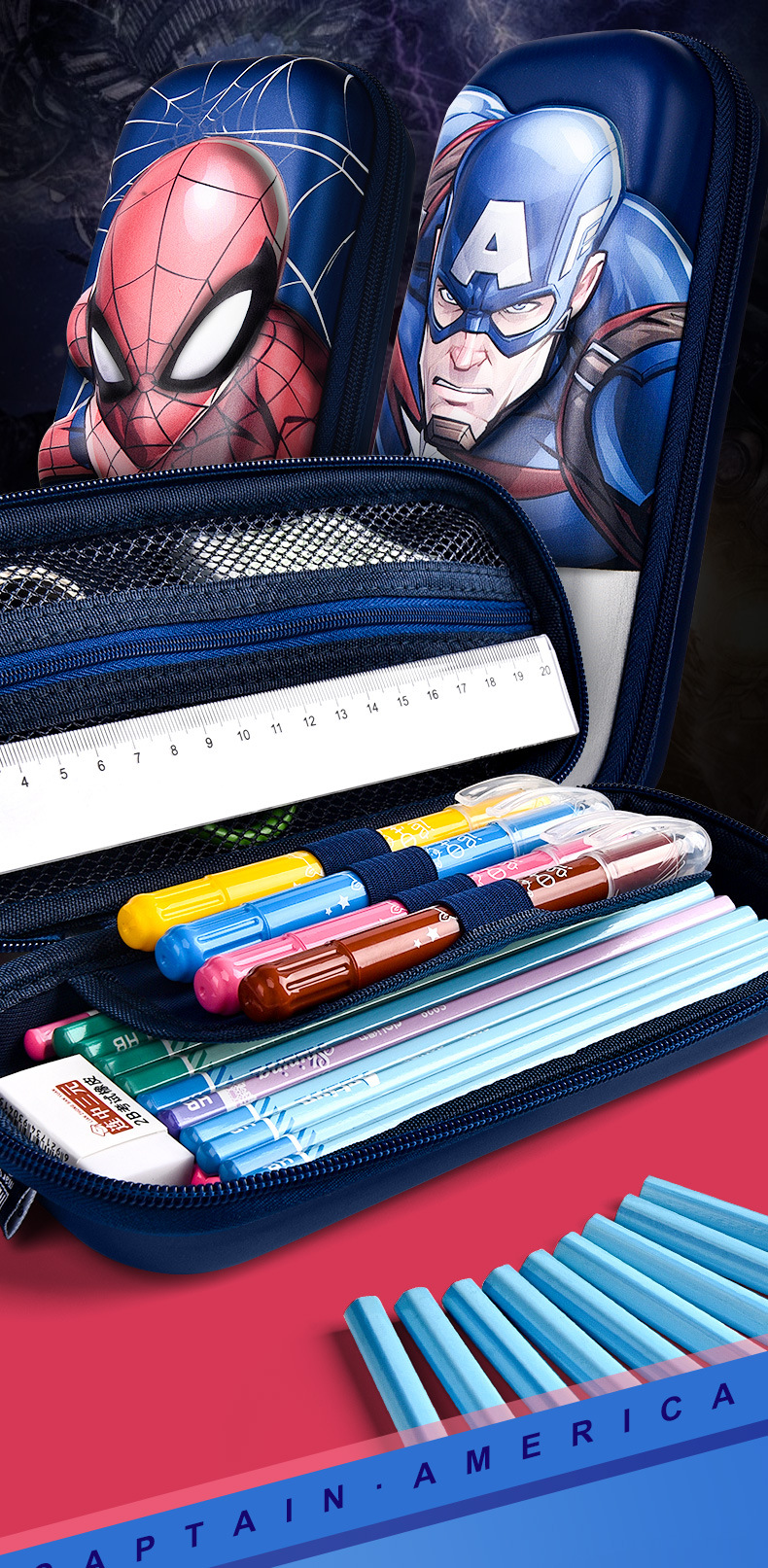 漫威动漫联名款儿童文具盒小学生3D卡通铅笔盒蜘蛛侠男生笔盒