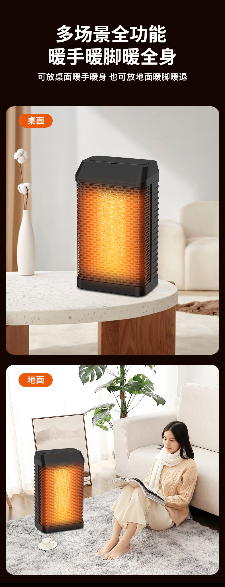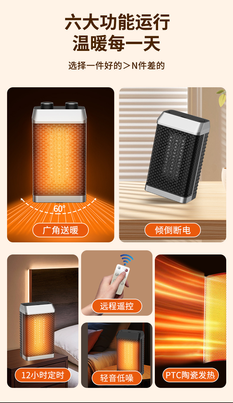 【即开即热!轻音低噪】玲珑小身材,新款取暖器桌面台式暖风机家用速热智能电暖器轻音摇头PTC加热器。rb