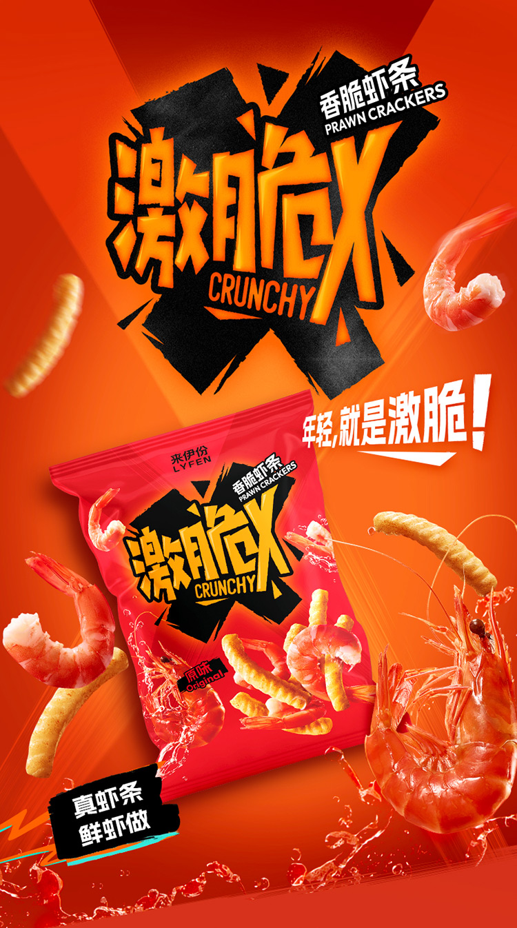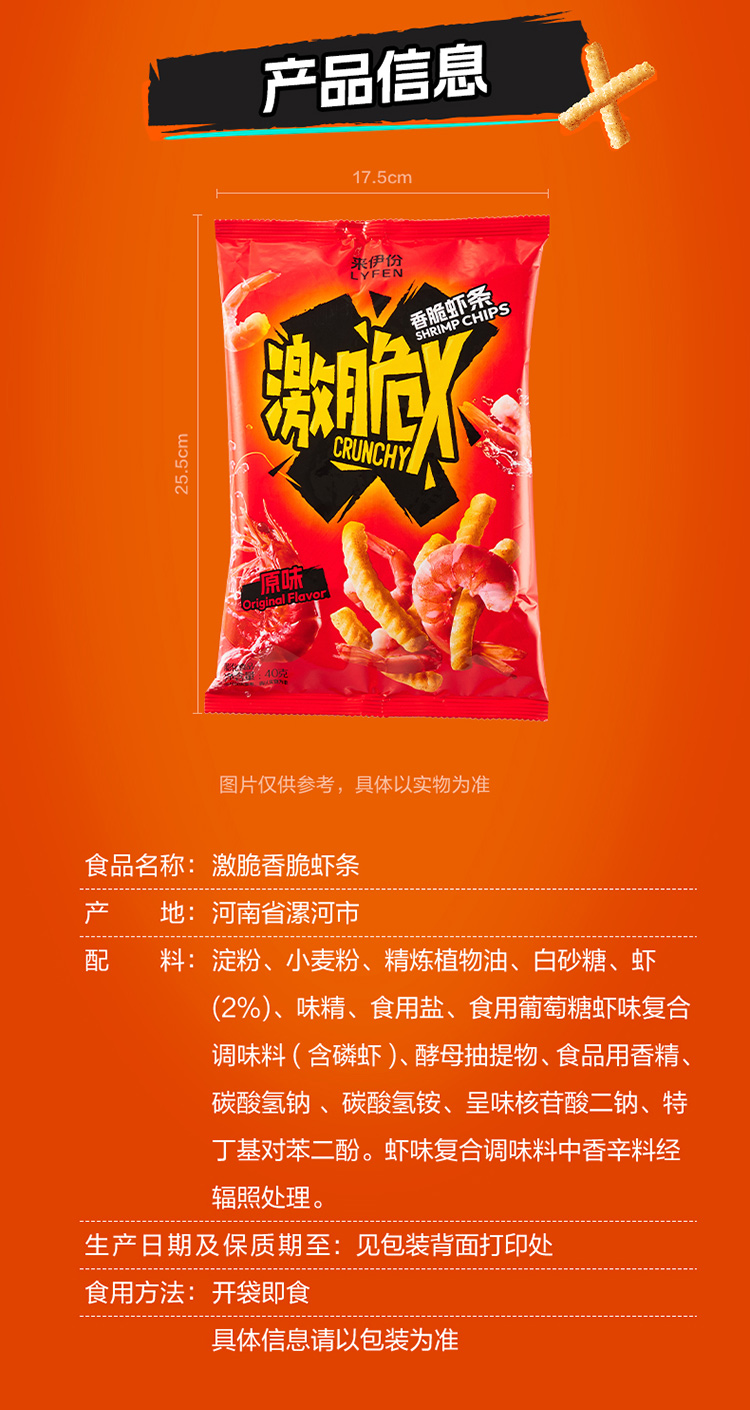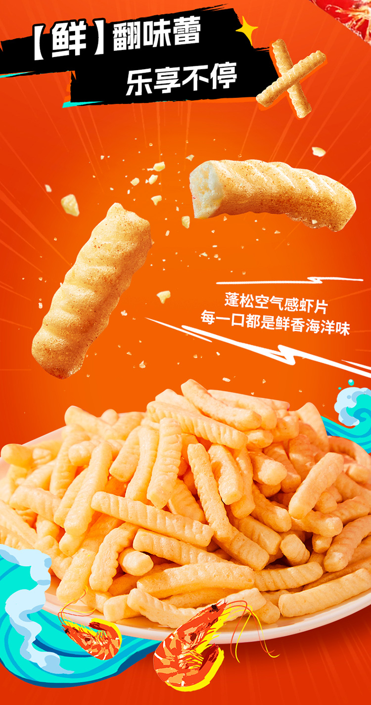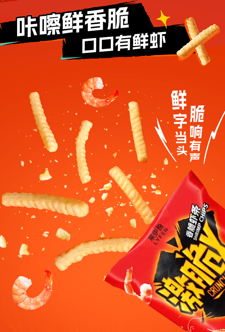 【醒粉福利19.9元3袋】来伊份激脆X脆片虾条即食美味鲜香休闲酥脆膨化