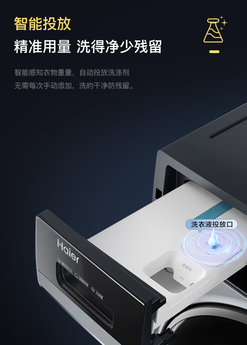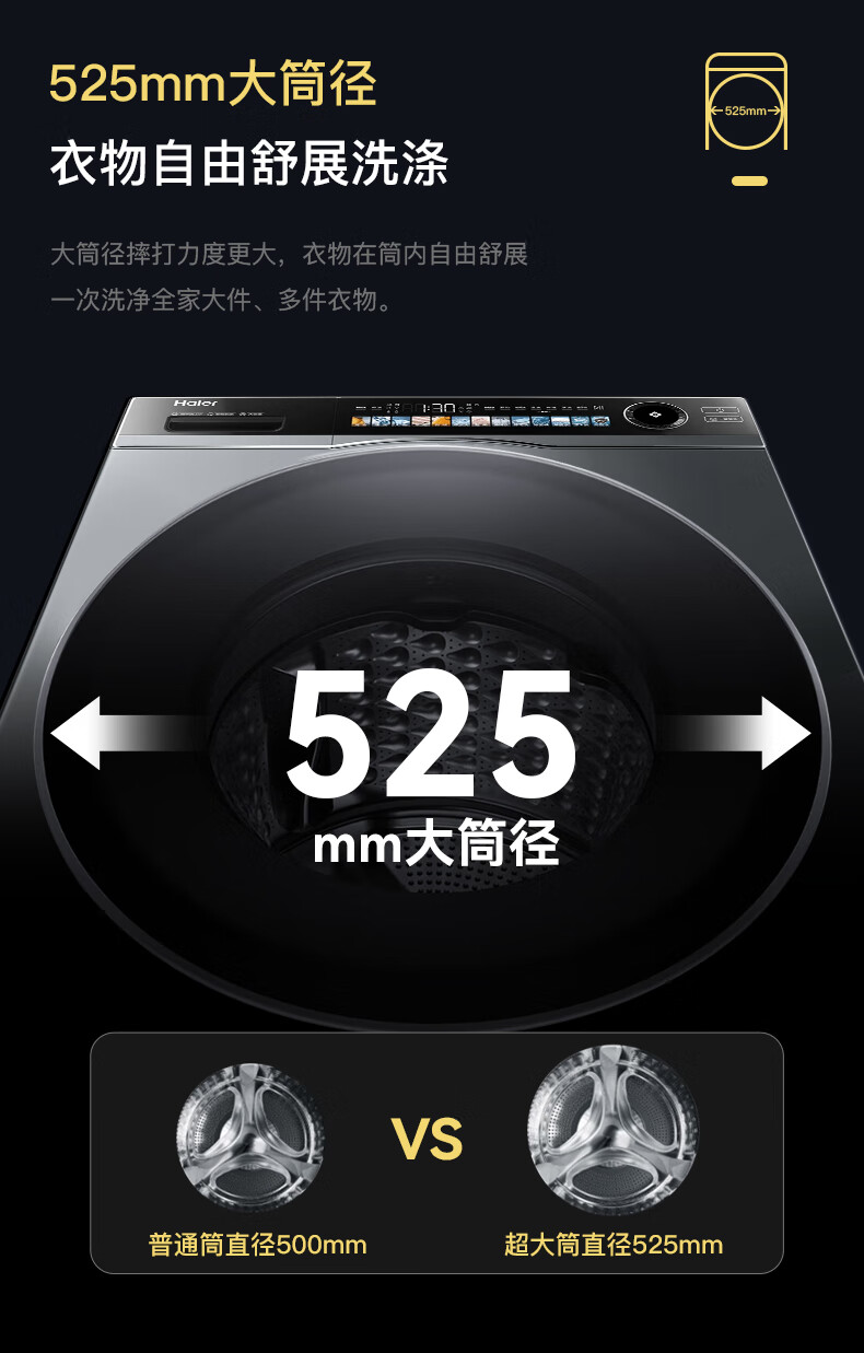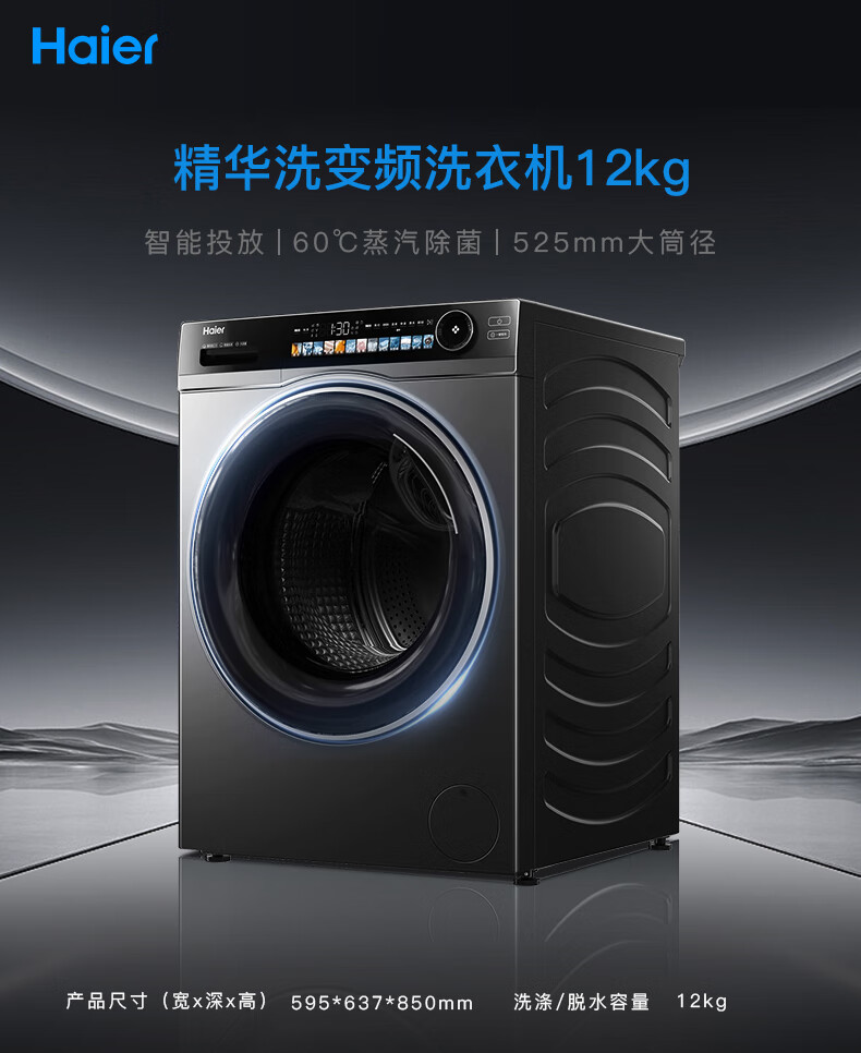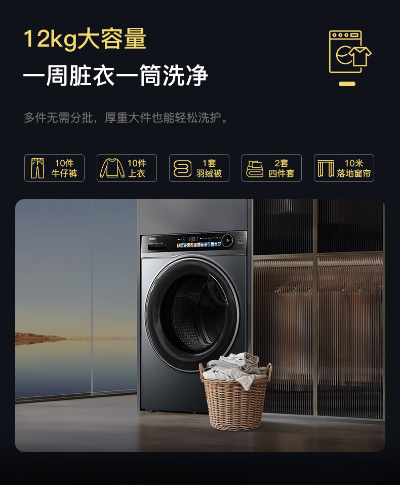 海尔超越全自动滚筒洗衣机12KG大容量 家用宿舍超薄 XQG120-LDE569H