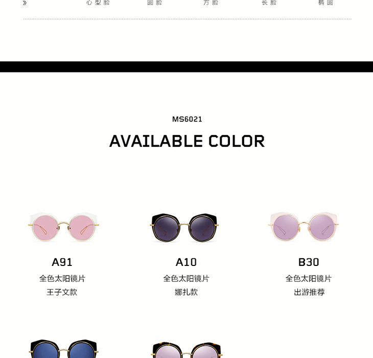 陌森太阳镜女款几何镜框透色镜片彩色时尚墨镜MS6021