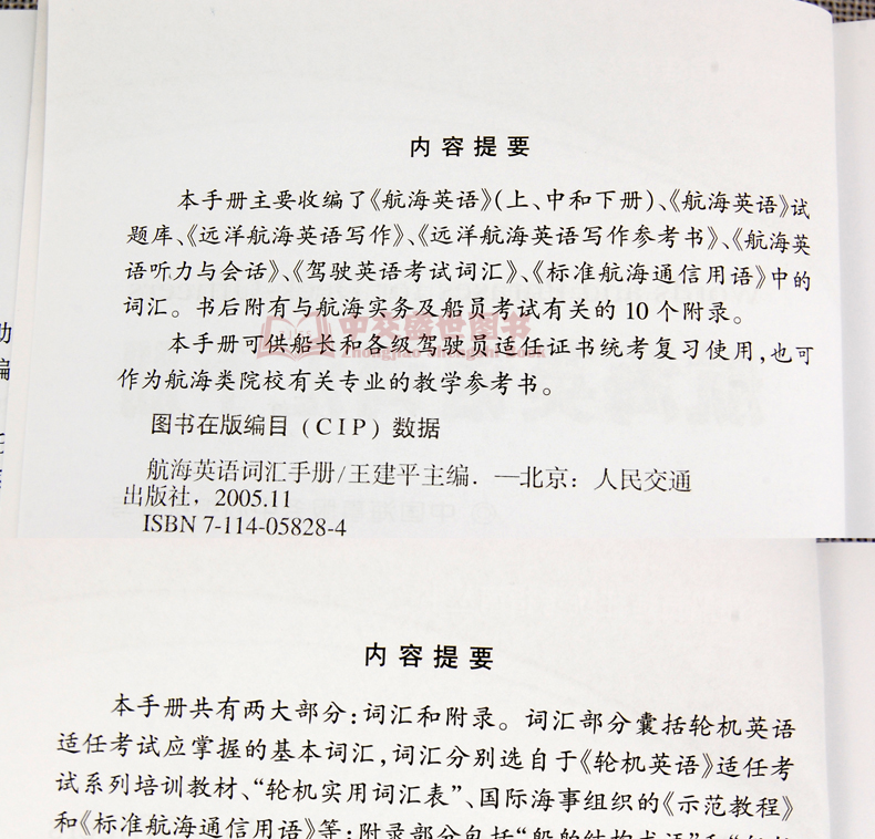 书名:航海英语词汇手册+轮机英语词汇手册套装