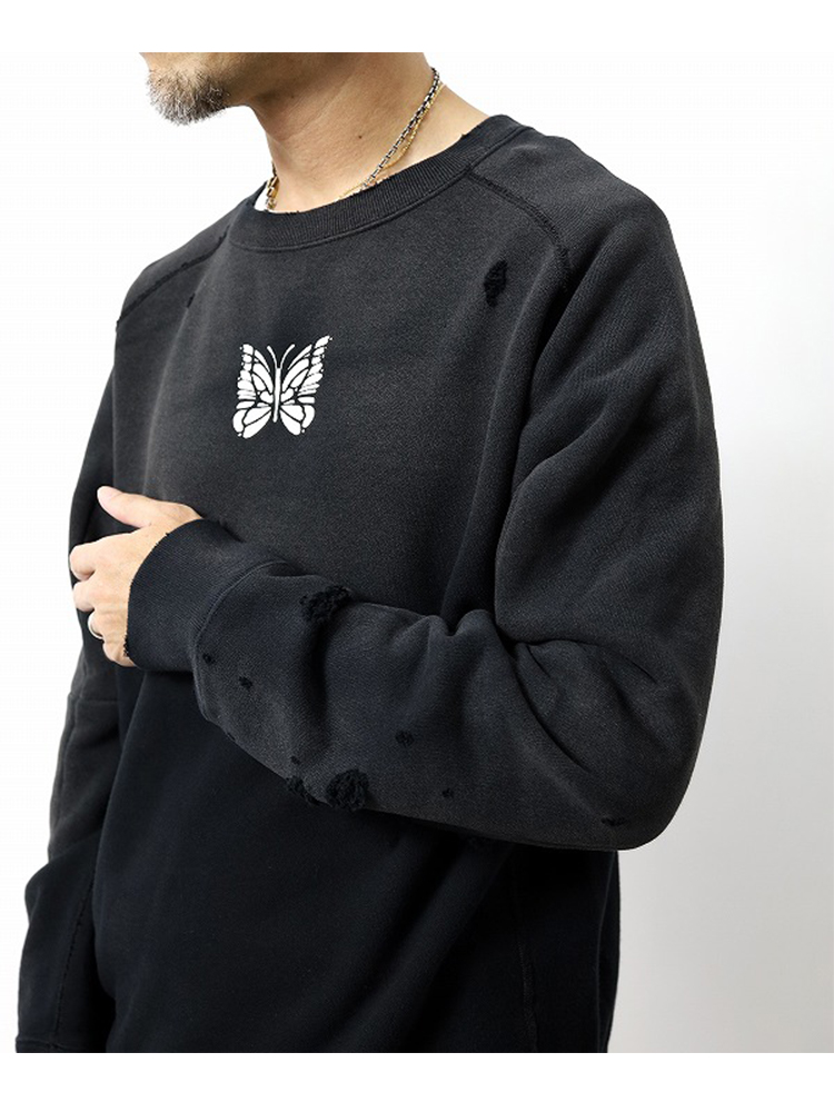 Needles Deconstructed Sweat Shirt 酵素水洗破坏加工蝴蝶卫衣