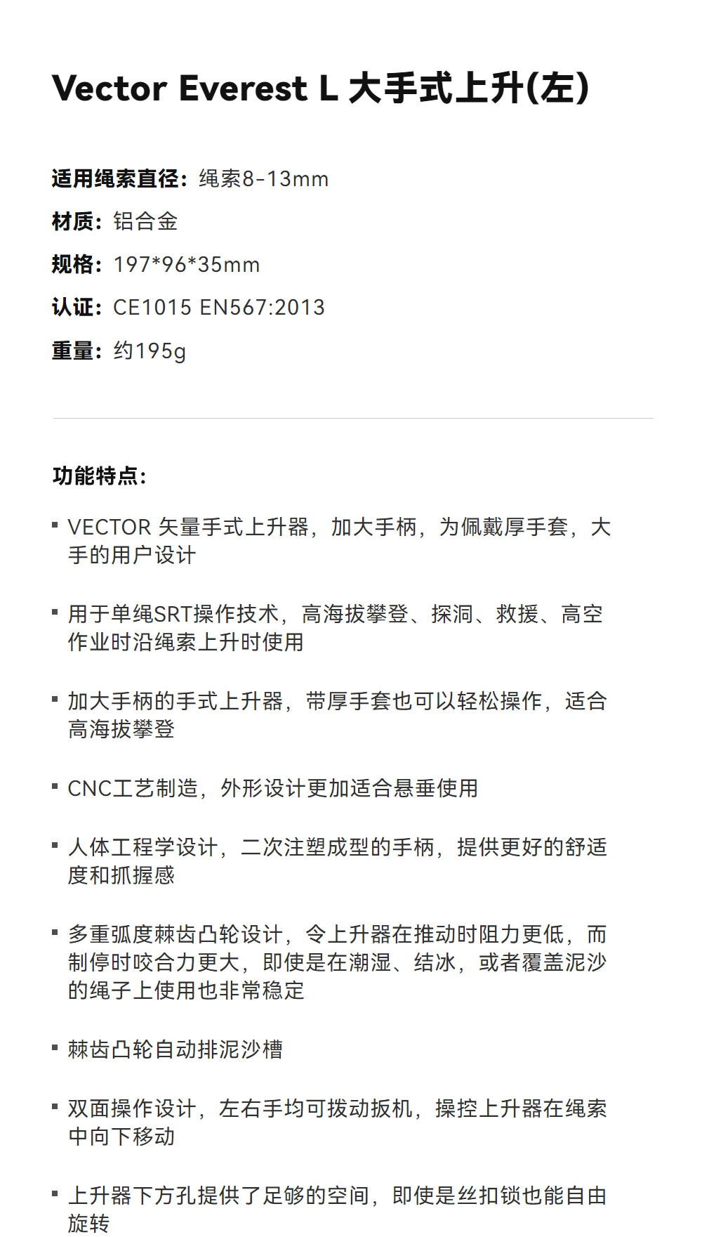 KAILAS凯乐石 户外运动Vector Everest L 大手式上升器(左)EA401C