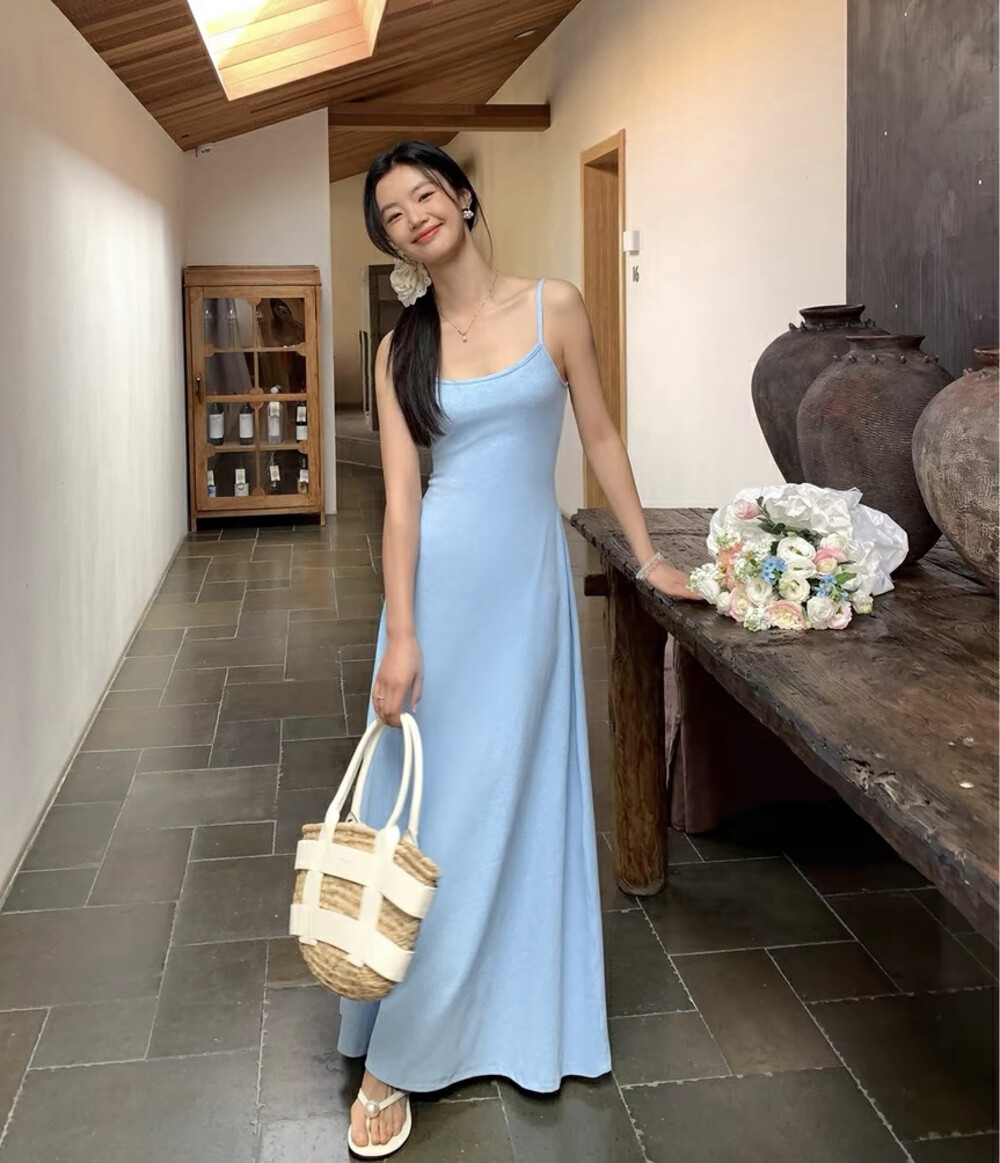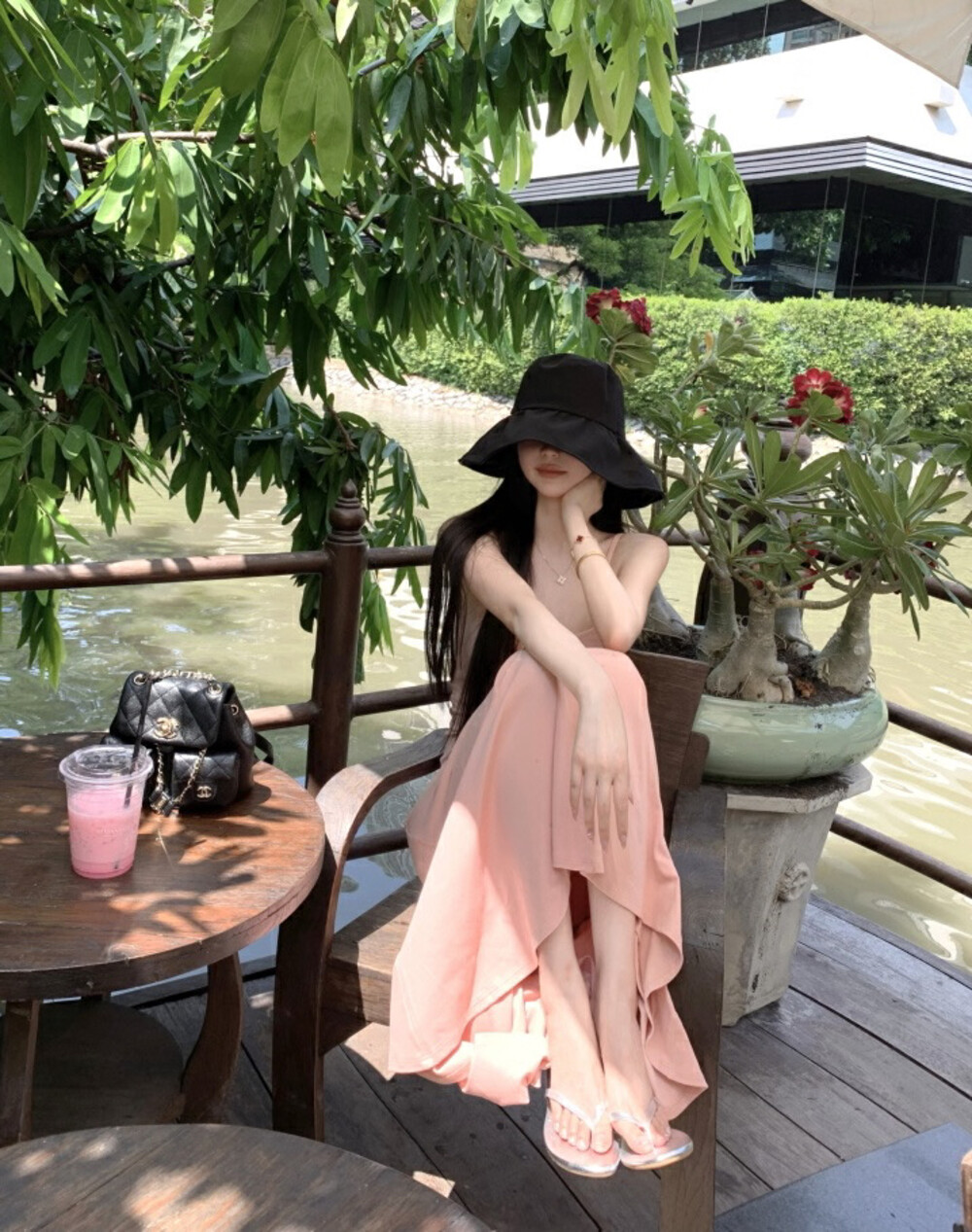 【GZ】无忧购韩系慵懒不挑身材辣妹自带胸垫百搭吊带连衣裙6612-55#(截单后7天发货)