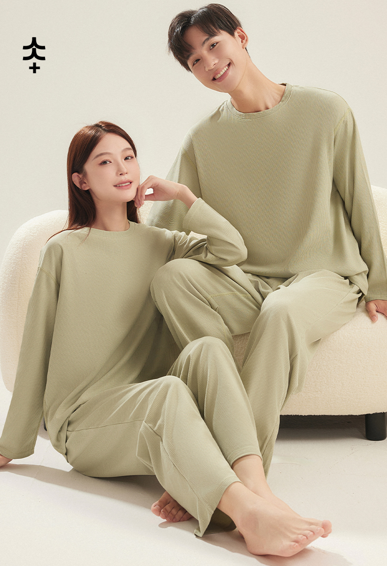【好看又舒适家居服】茶稚华夫格情侣家居服套装HFG0101 云朵般丝滑软糯新肤一套就够 居家休闲/早晨遛狗/下楼取快递/宿舍生活/睡眠/超市购物
