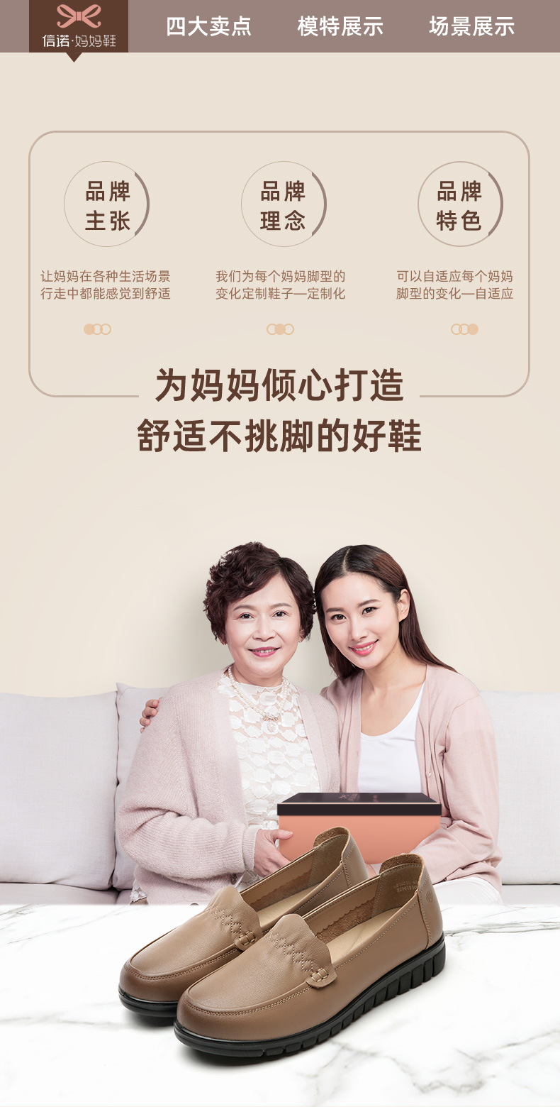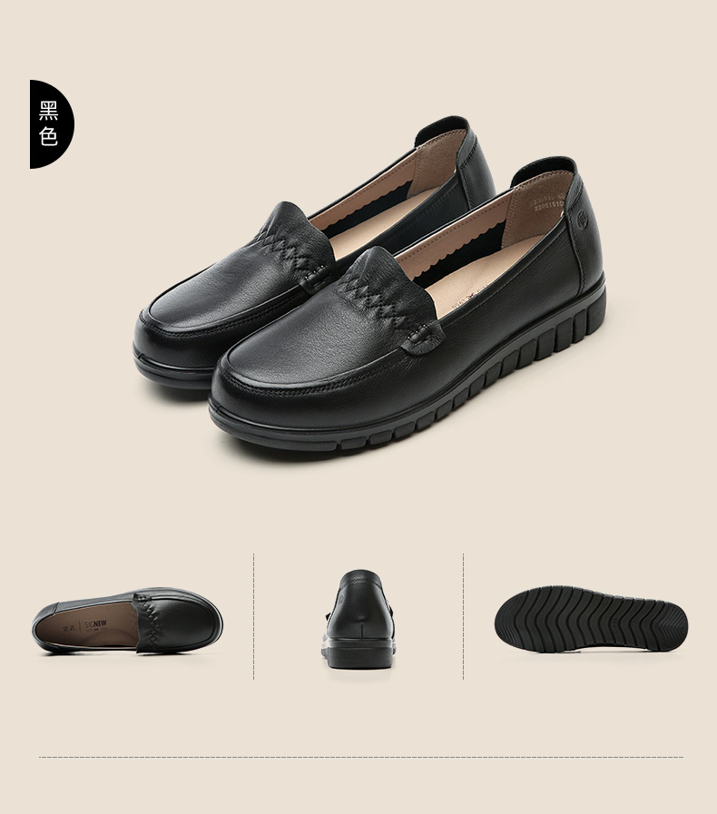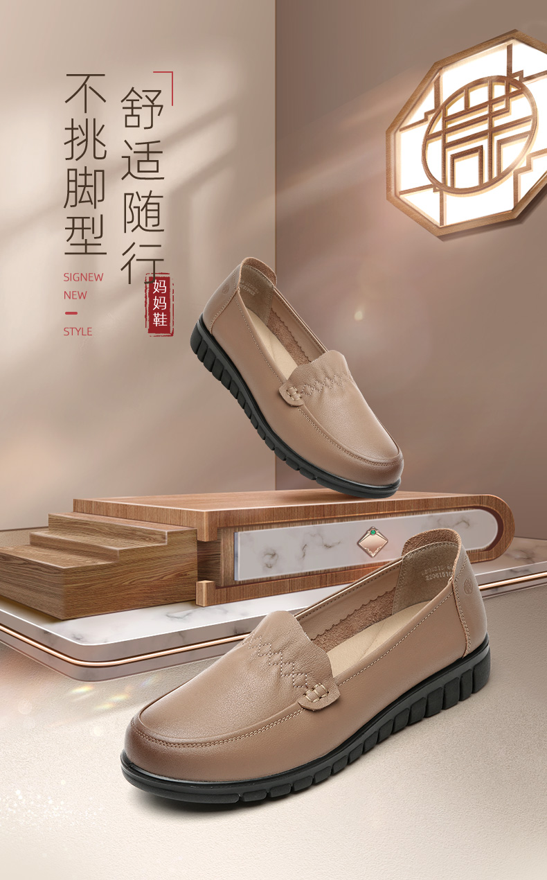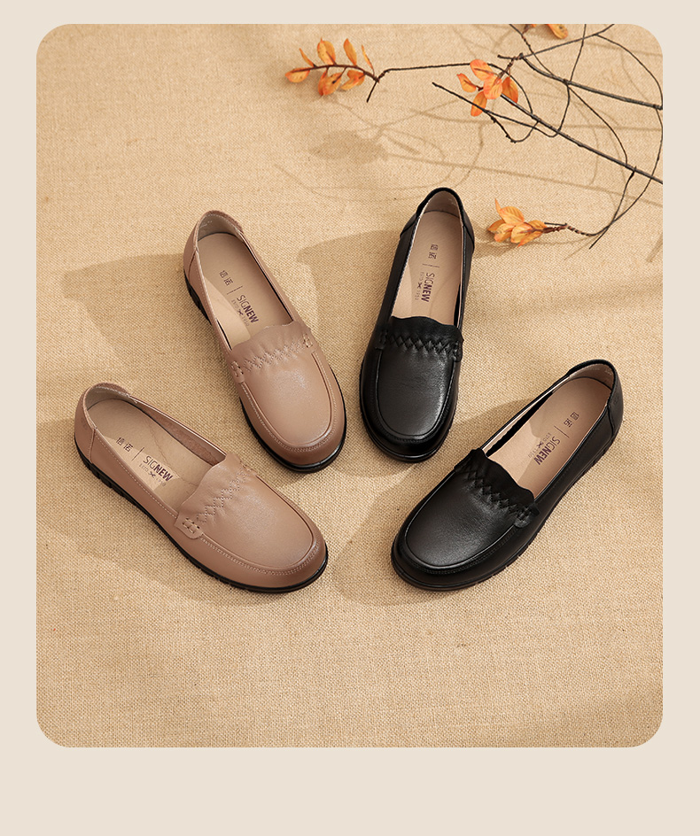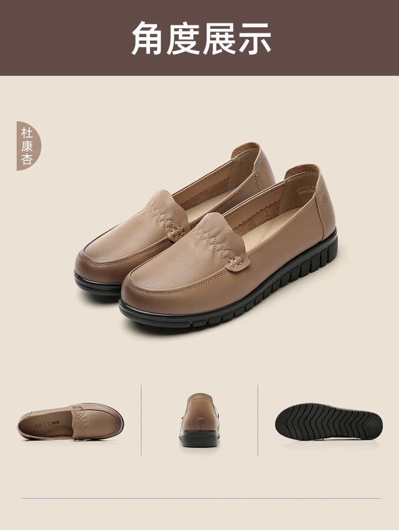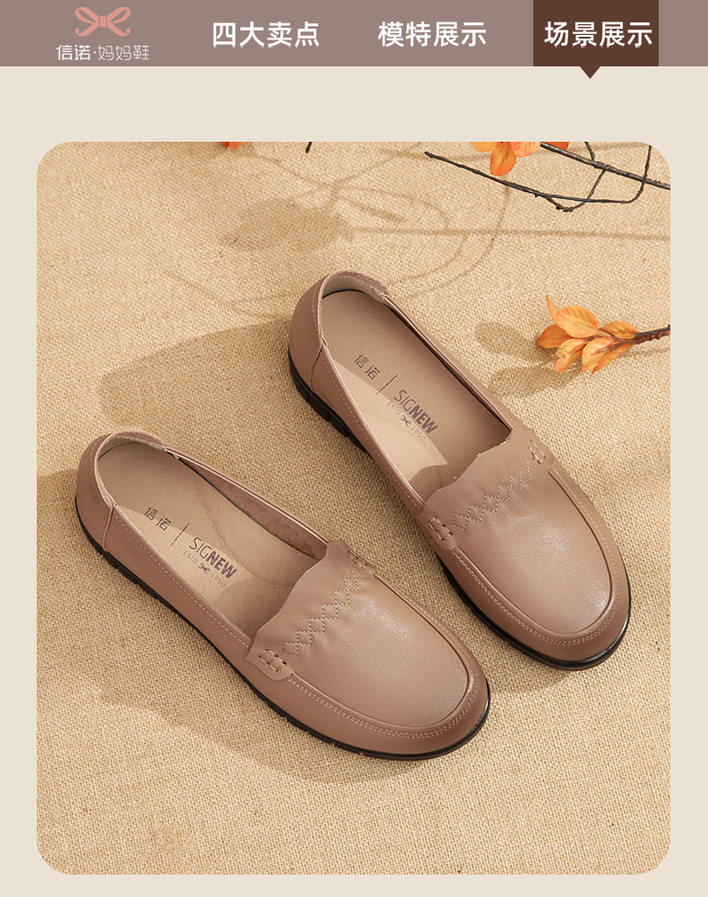 信诺 真皮舒适女鞋 中老年妈妈鞋软底轻便春秋款平底脚宽舒适皮鞋22Q6315-68