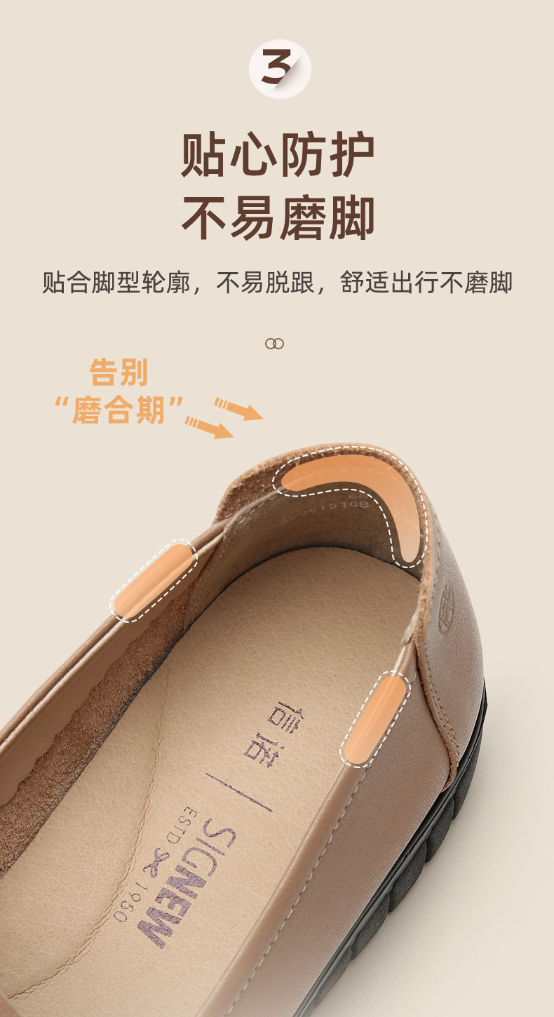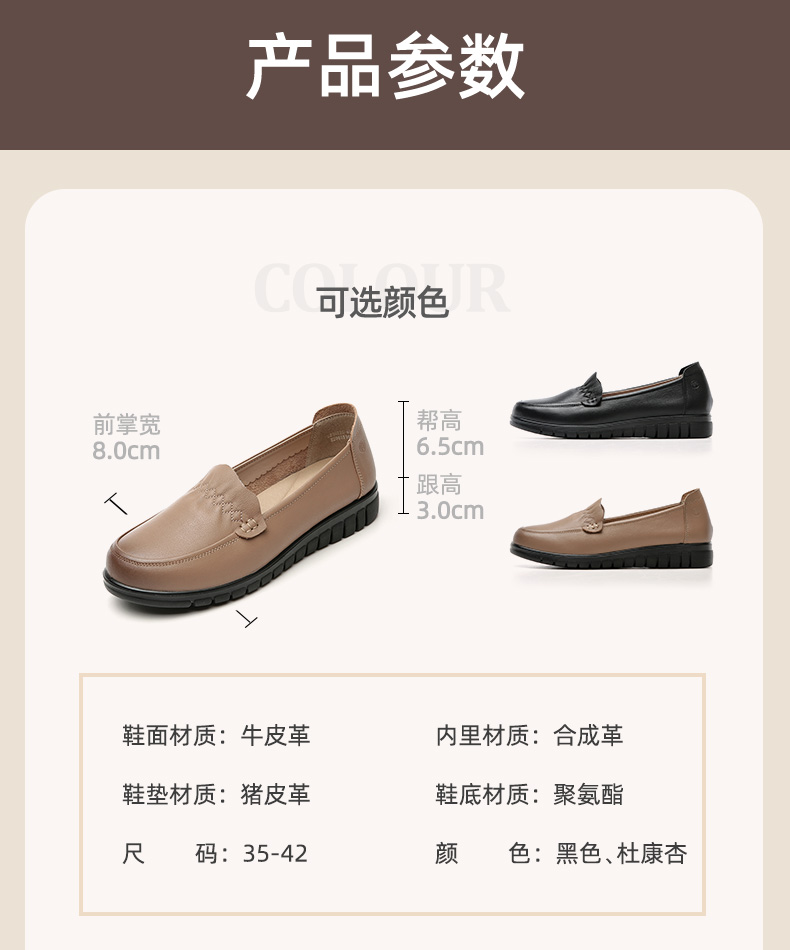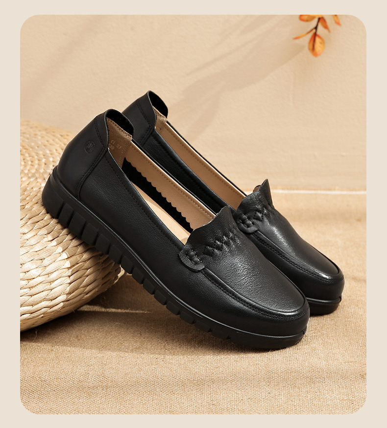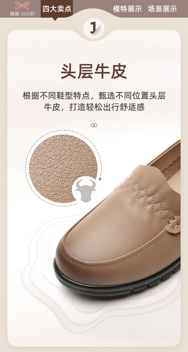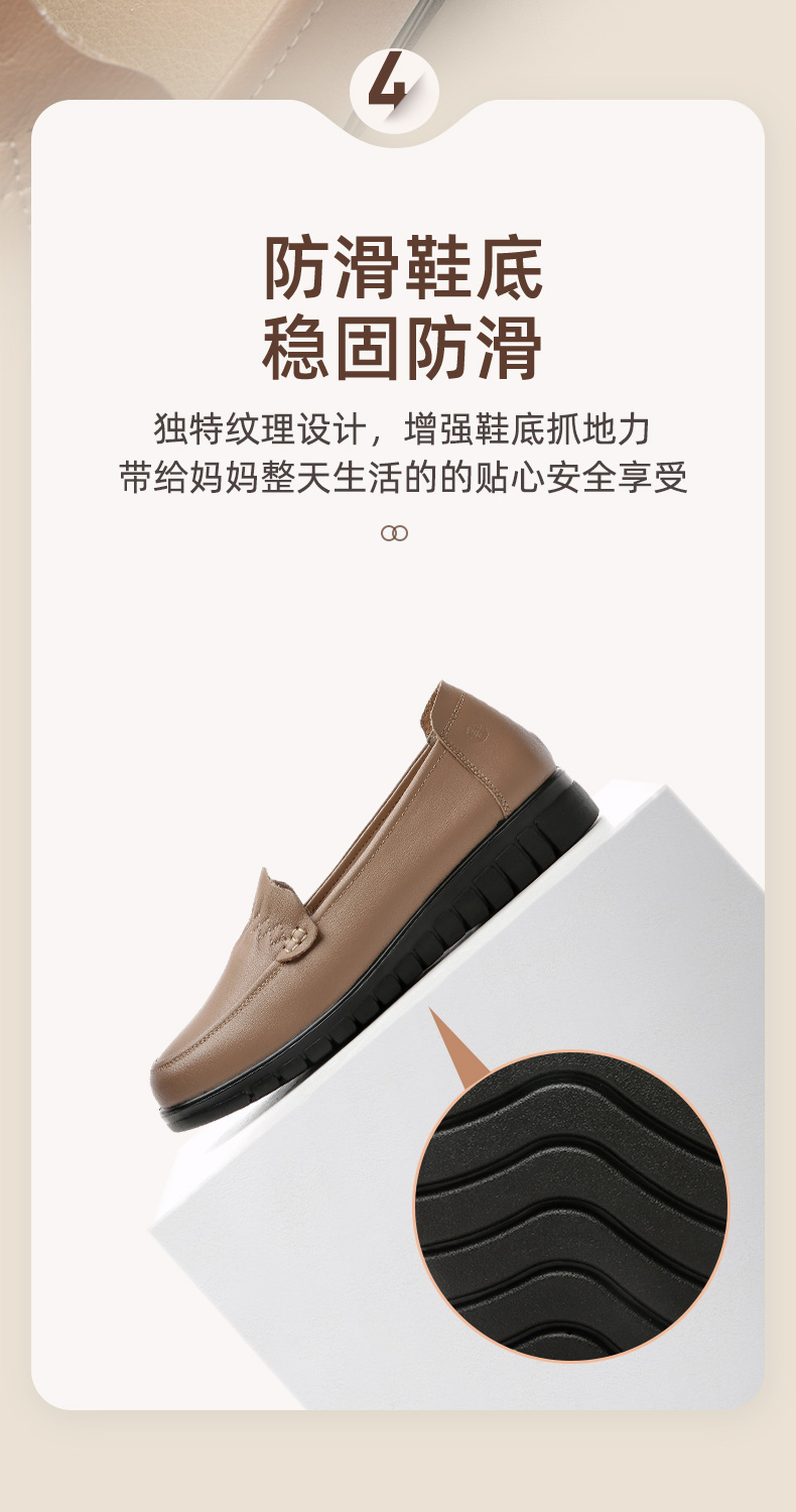 信诺 真皮舒适女鞋 中老年妈妈鞋软底轻便春秋款平底脚宽舒适皮鞋22Q6315-68