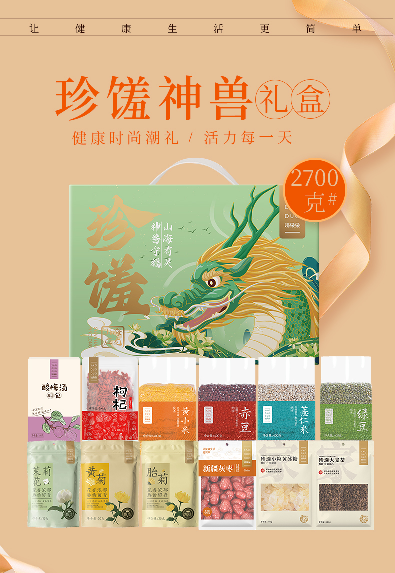 姚朵朵 珍馐神兽干货礼盒2700克 绿豆黄小米茉莉花酸梅汤