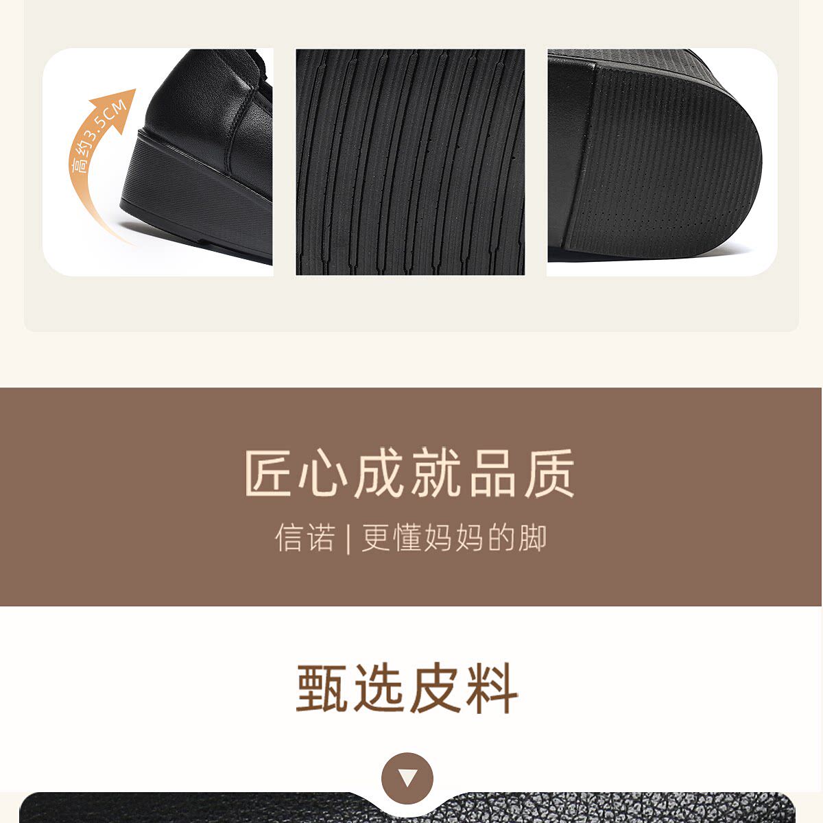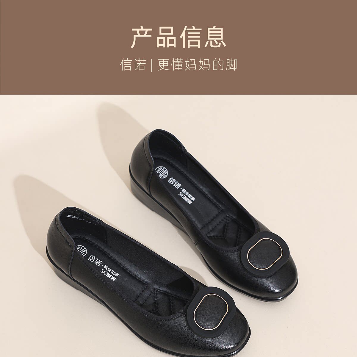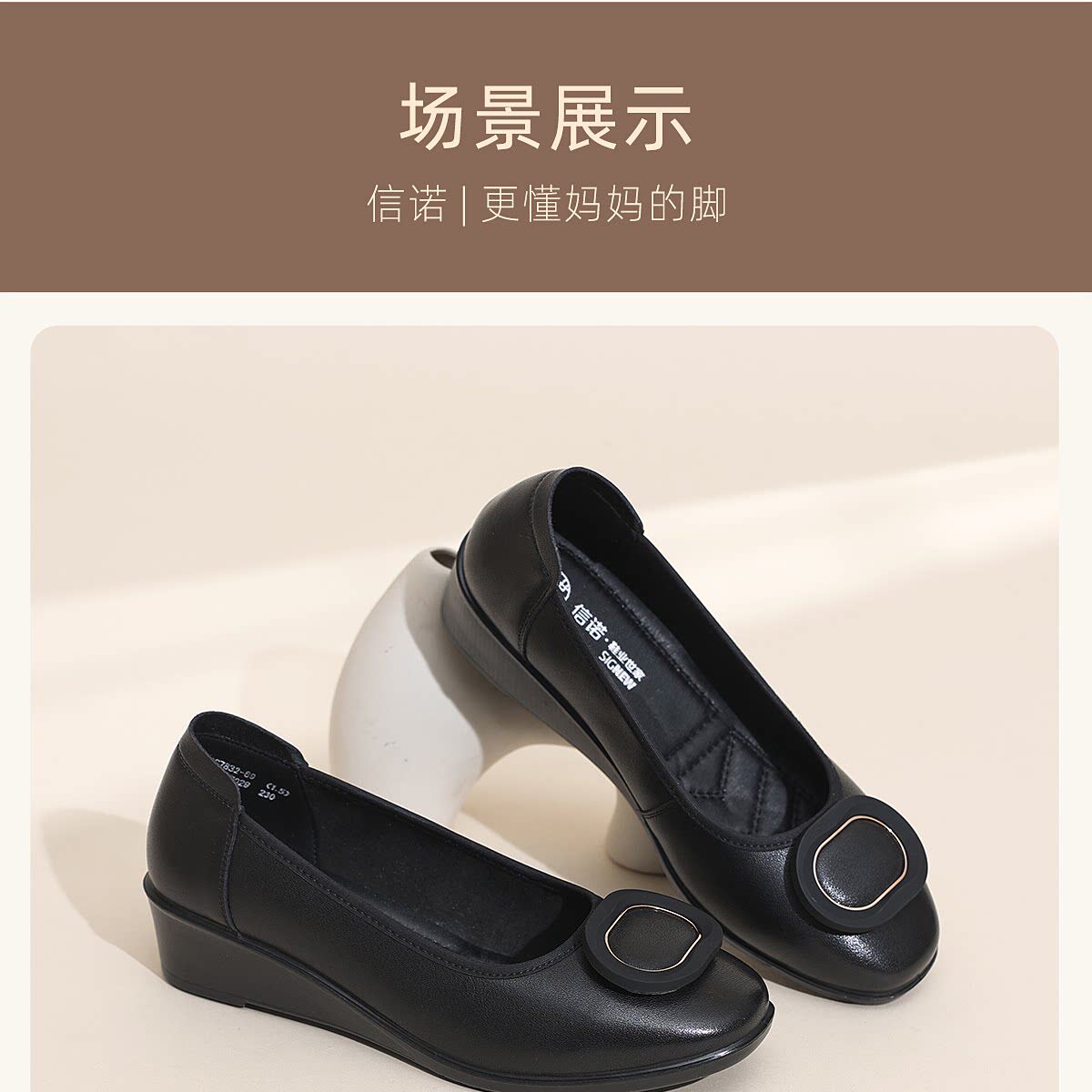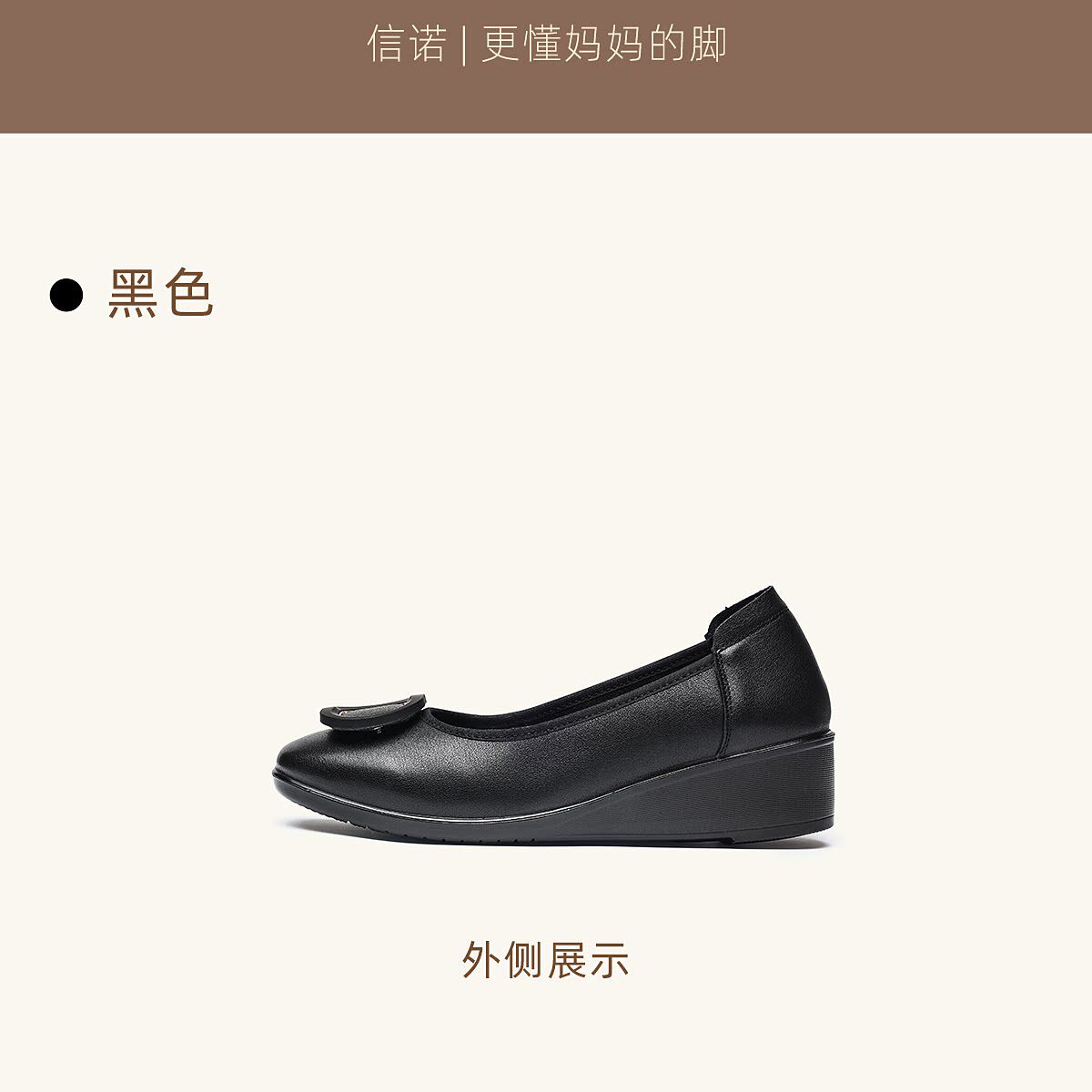 信诺真皮坡跟妈妈鞋女软底舒适中老年不累脚通勤皮鞋2026夏季新款6C7832-89