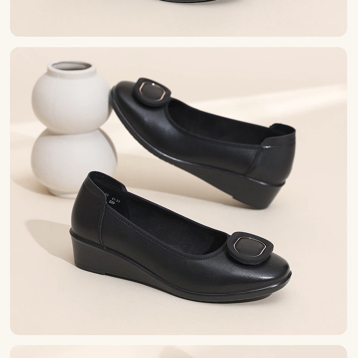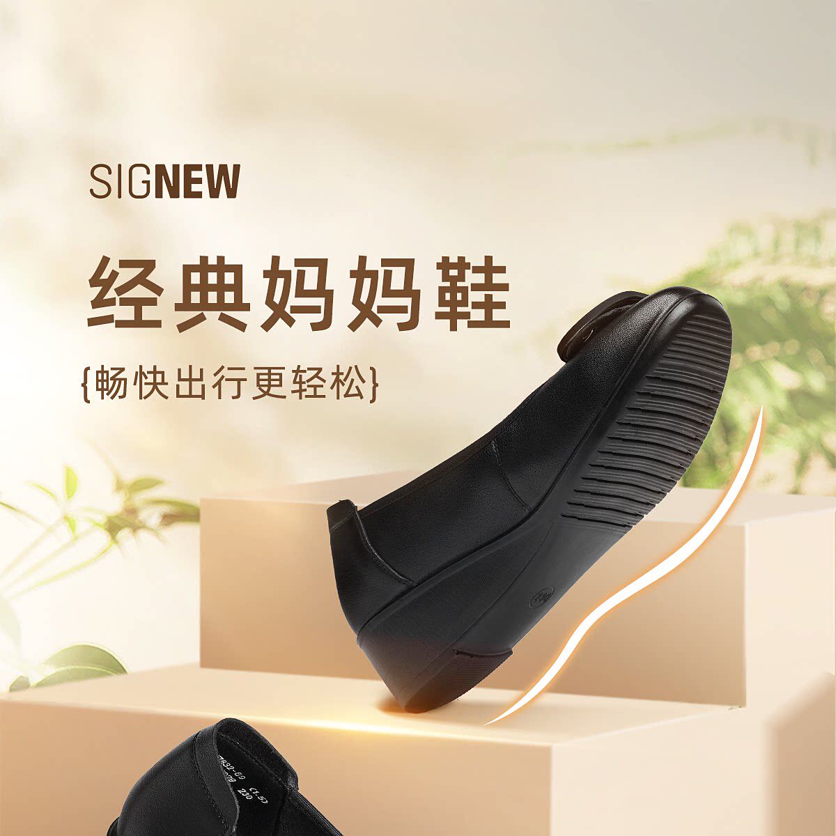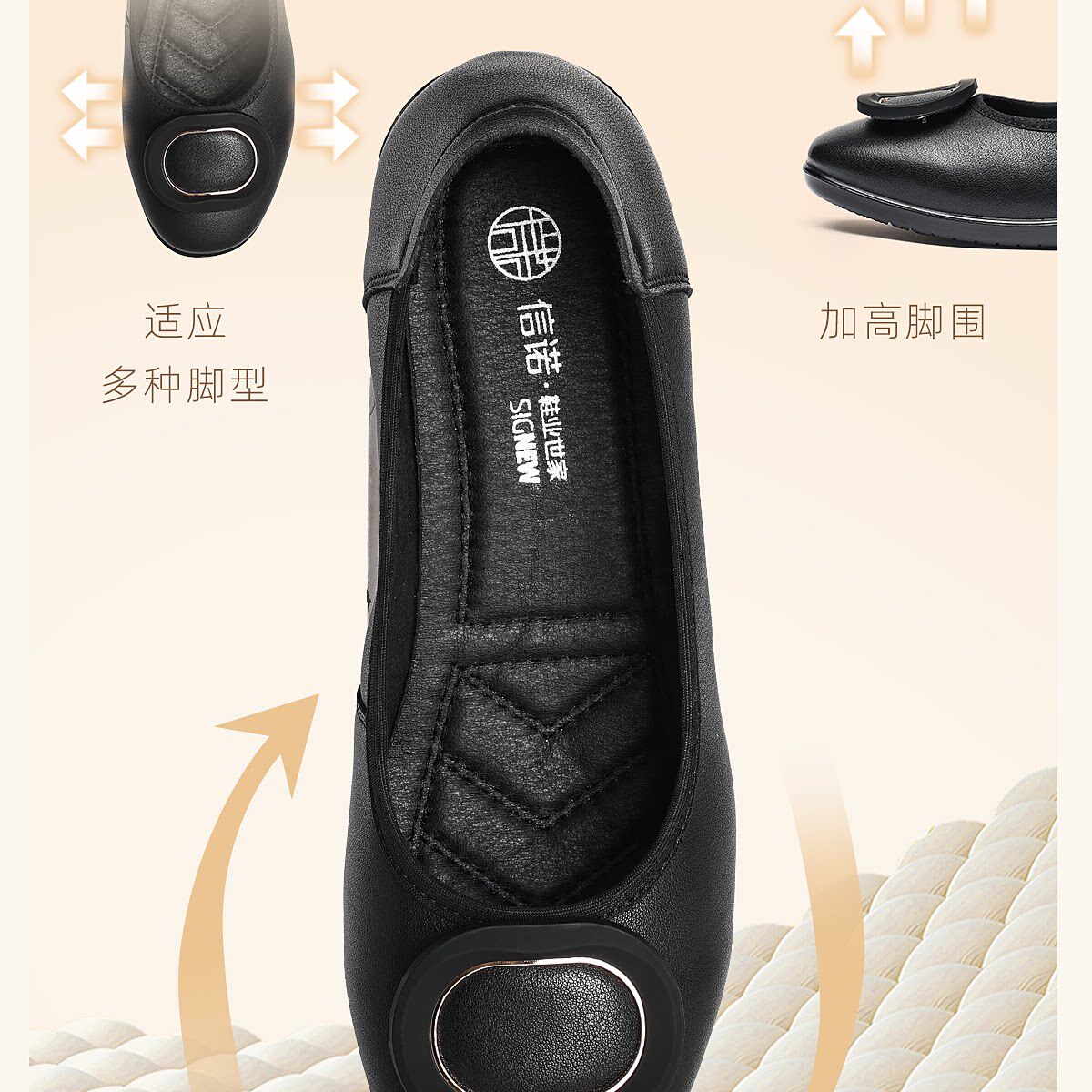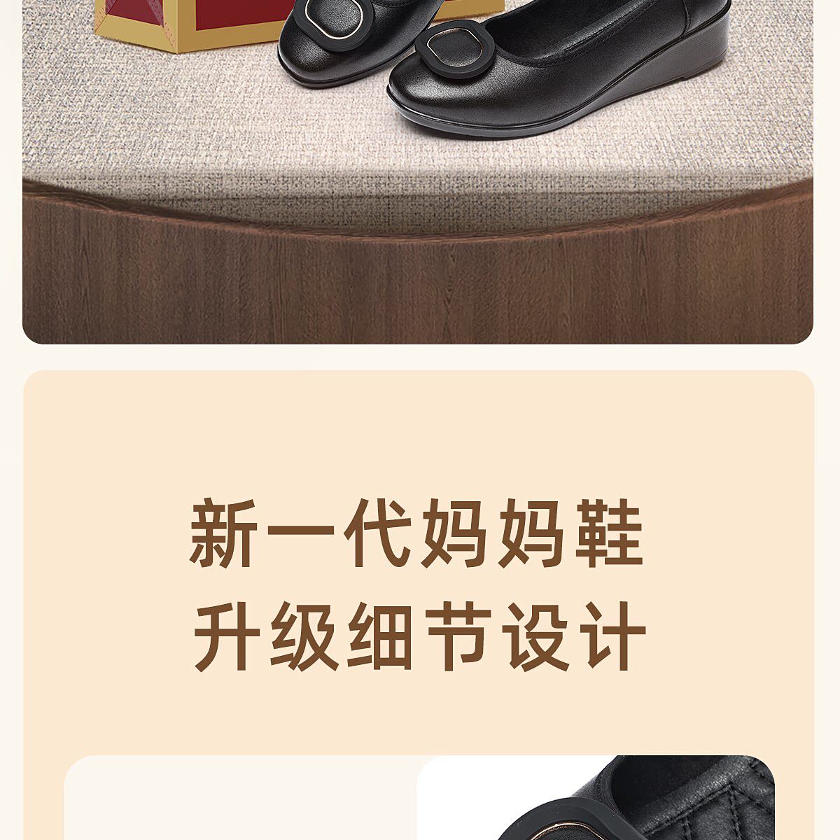 信诺真皮坡跟妈妈鞋女软底舒适中老年不累脚通勤皮鞋2026夏季新款6C7832-89