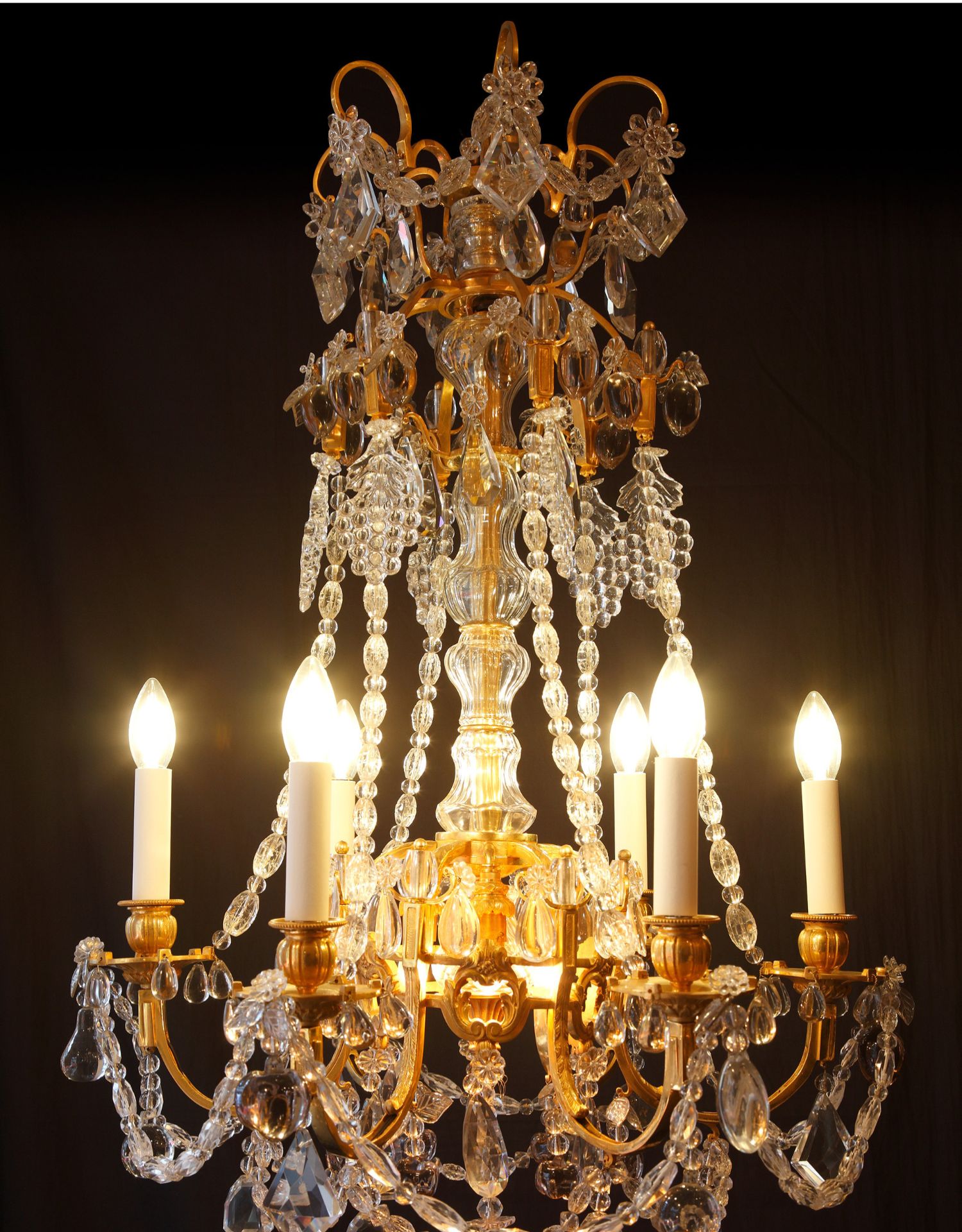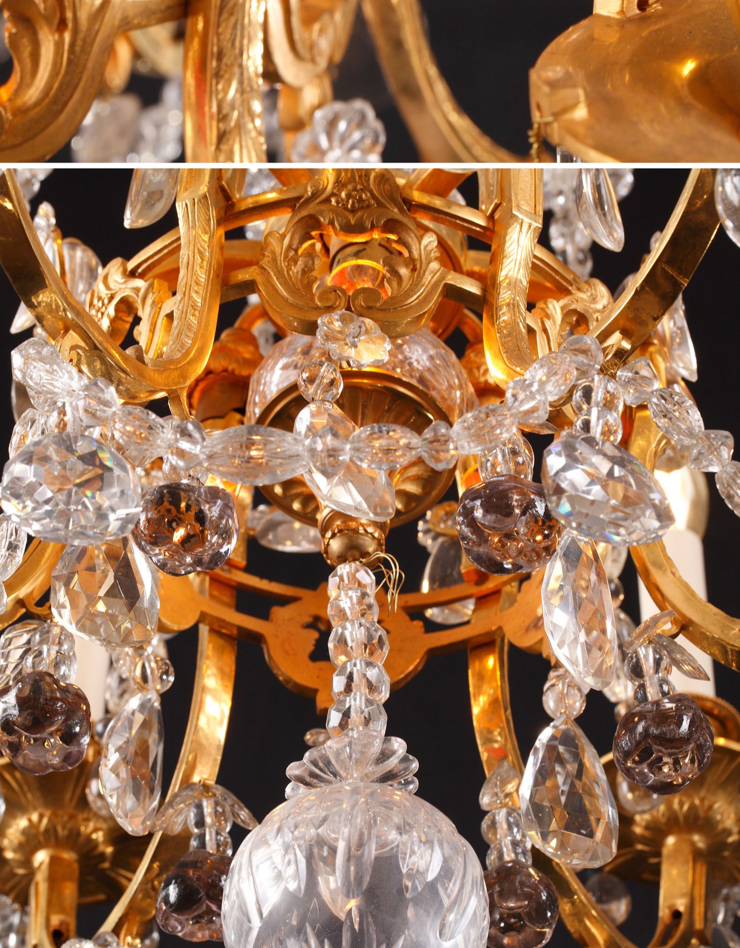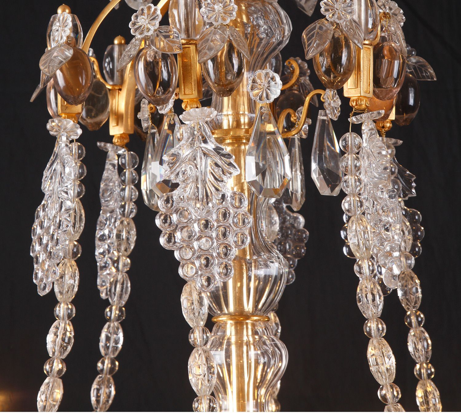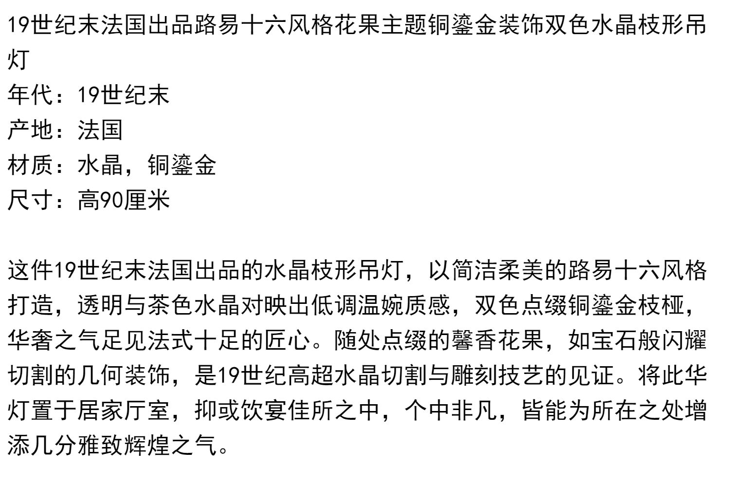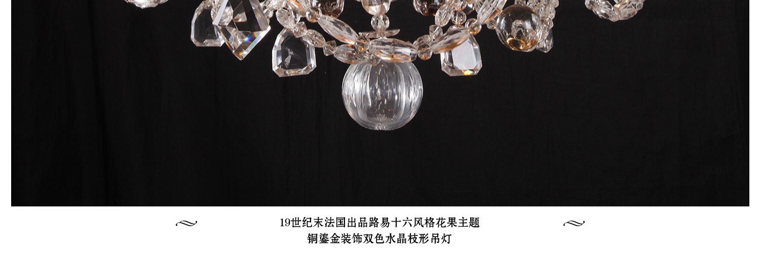 独角鹿西洋古董法国路易十六风格花果主题铜鎏金双色水晶枝形吊灯