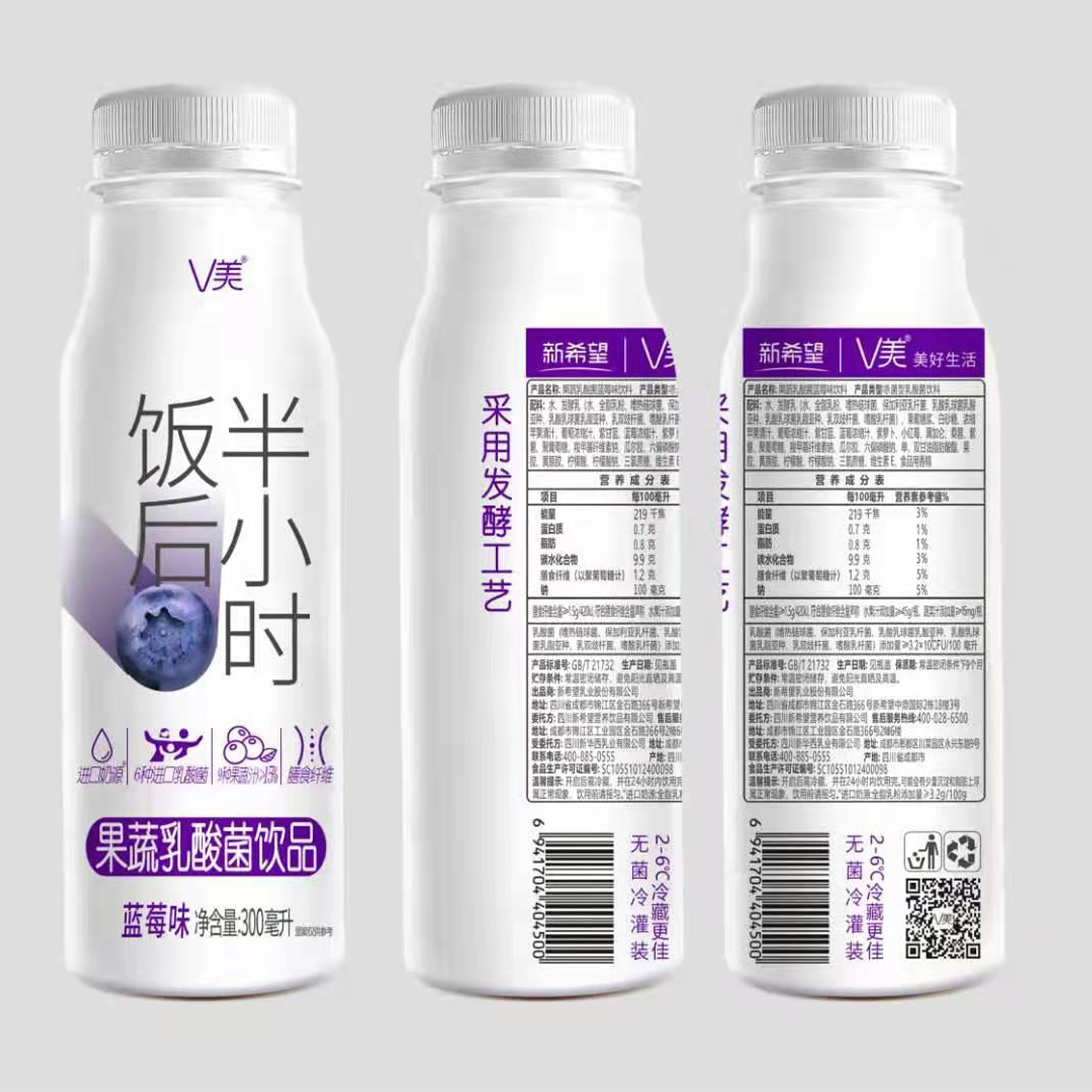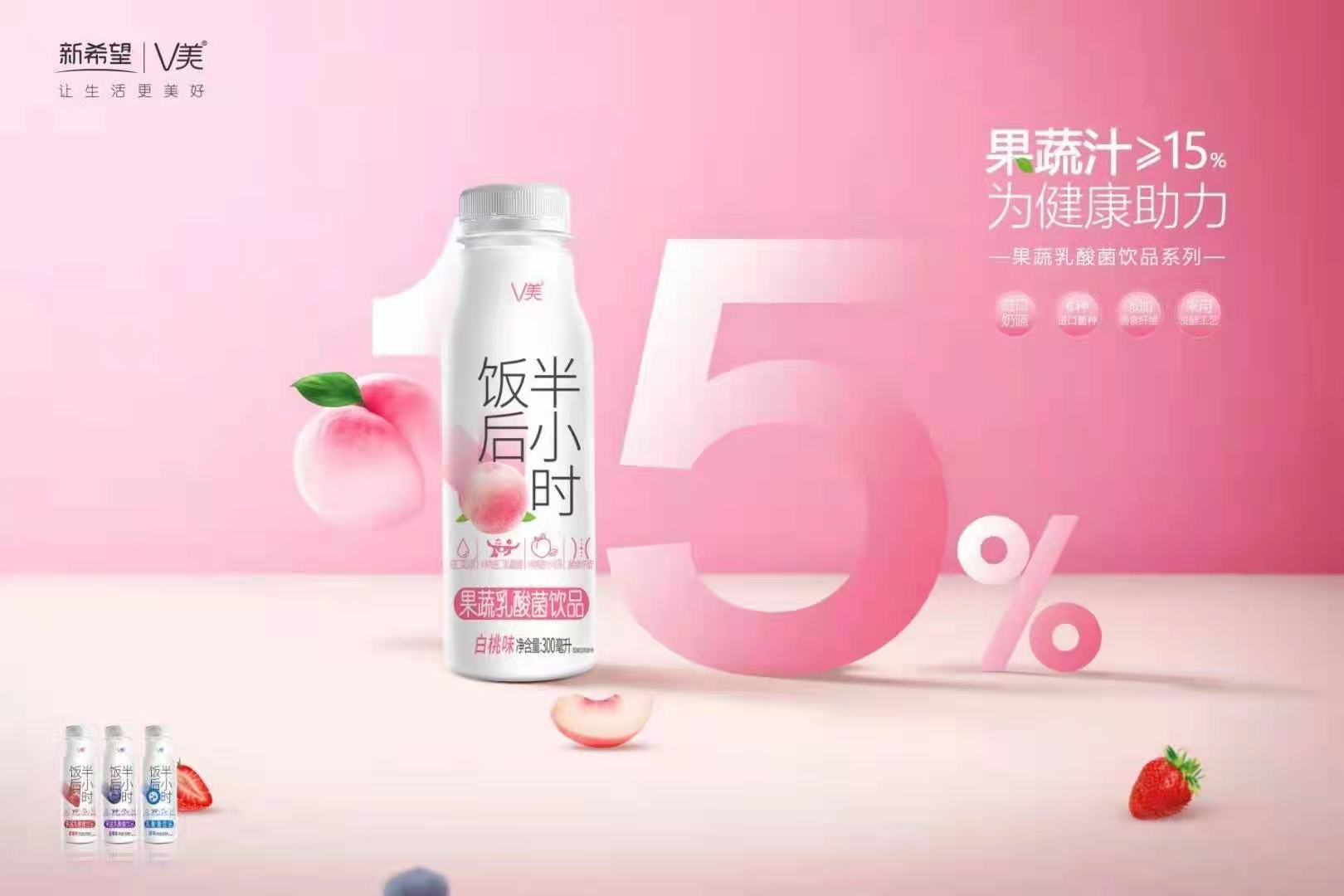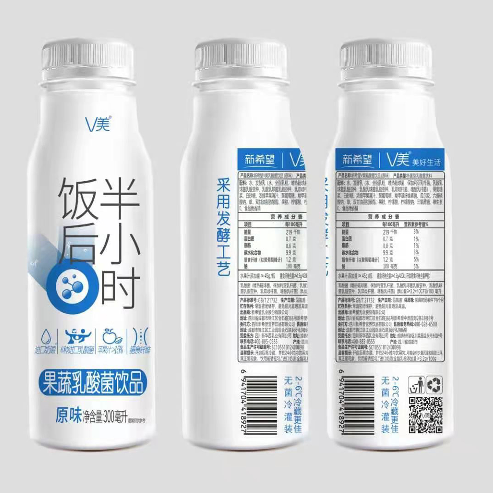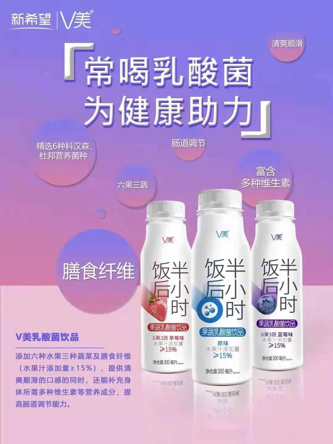 新希望V美果蔬乳酸菌饮品饭后半小时300ml 瓶装
