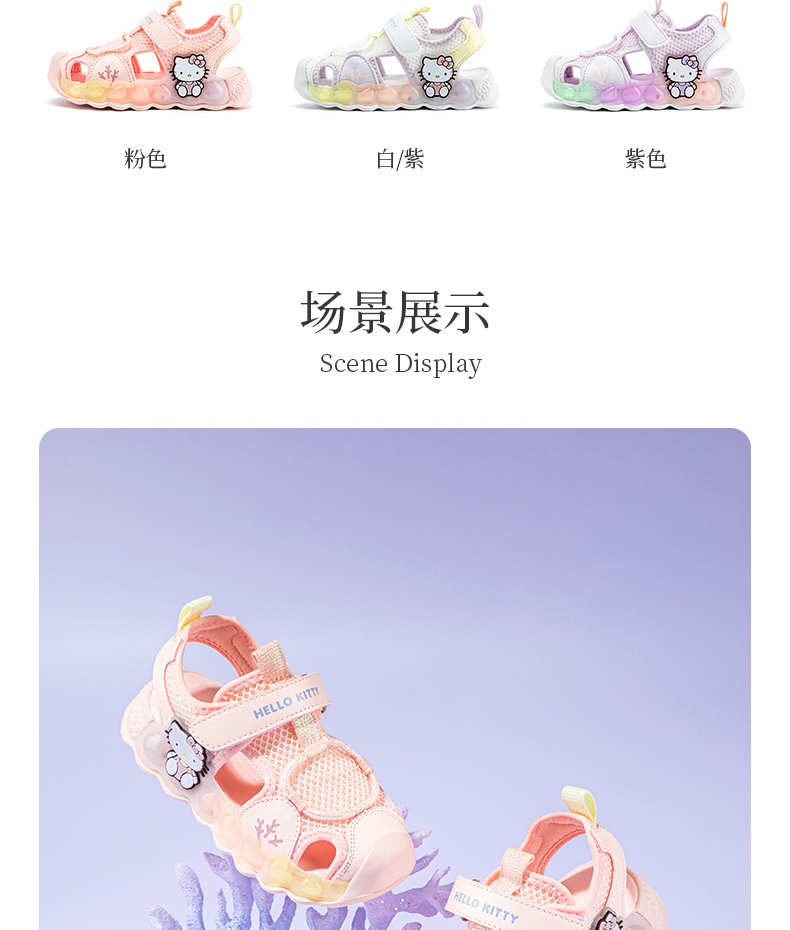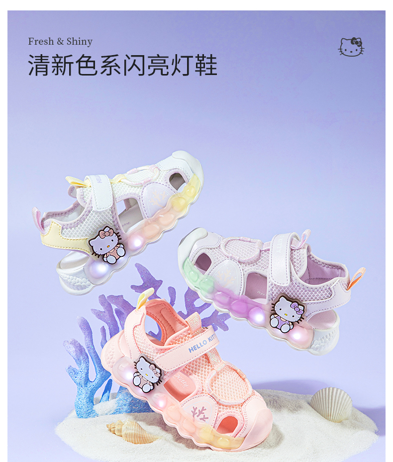 HelloKitty童鞋女童包头凉鞋夏季女宝宝亮灯鞋软底儿童沙滩鞋24-30 K4526804