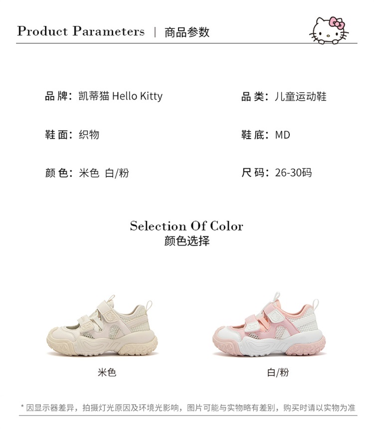 hellokitty童鞋女童夏季运动鞋儿童镂空鞋透气女孩老爹鞋26-30 K3516315