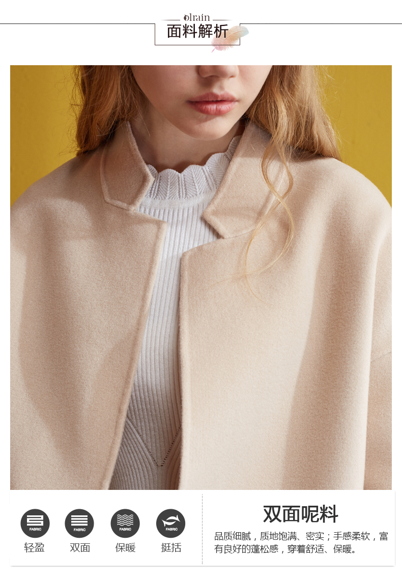 欧芮儿冬装女2019 双面呢子大衣女毛呢外套女中长款呢大衣