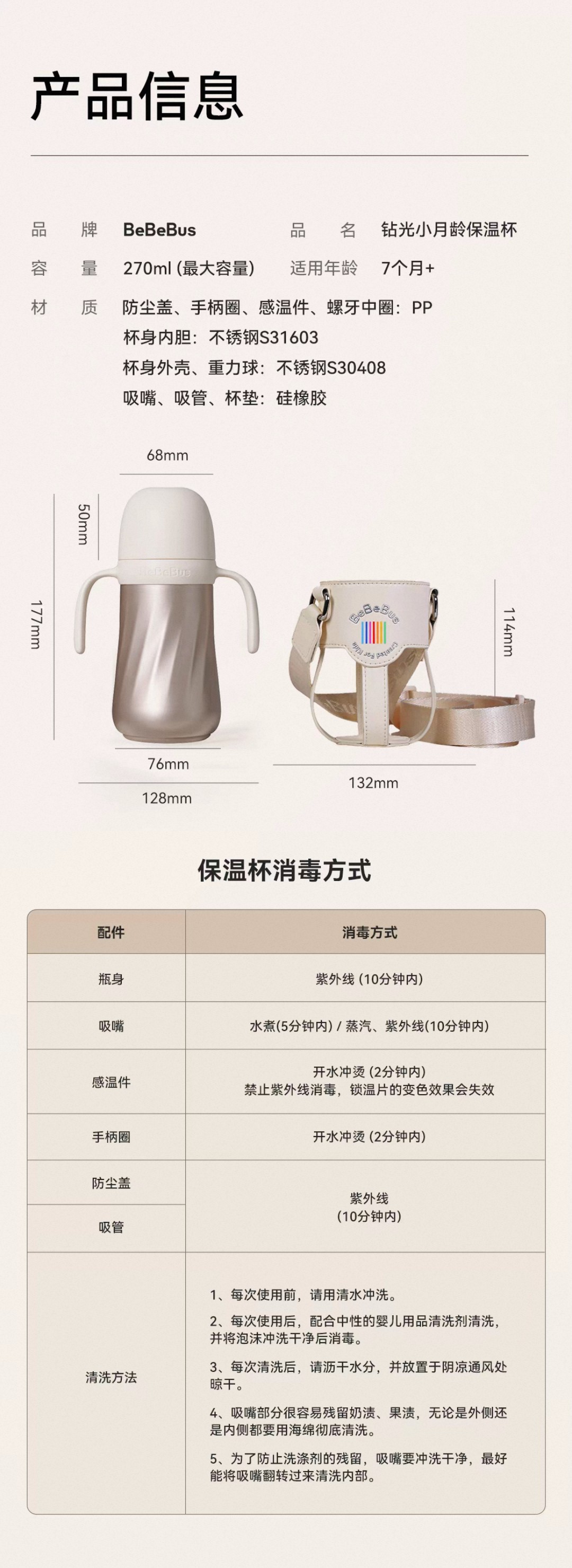 Bebebus钻光保温杯婴幼儿宝宝水杯儿童学饮杯6个月以上外出防呛奶