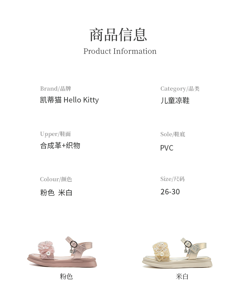HelloKitty童鞋女童凉鞋夏季女宝宝优雅时装鞋公主软底鞋26-30 K4526887