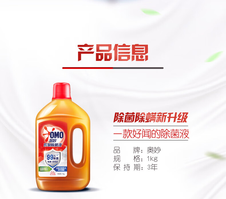 奥妙 衣物除菌液 1kg 99%除菌 除螨 孕妇儿童内衣宝宝衣物用 持久花香