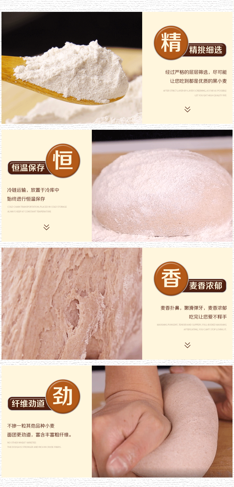 4. 口感:越嚼越有麦香味,香甜不粘牙。水饺皮、面条水里放久了不易破。