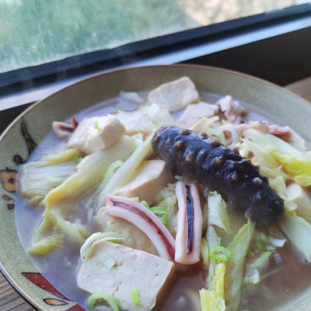 地鲜大白菜,配海鲜鱿鱼。鲜美二次方。