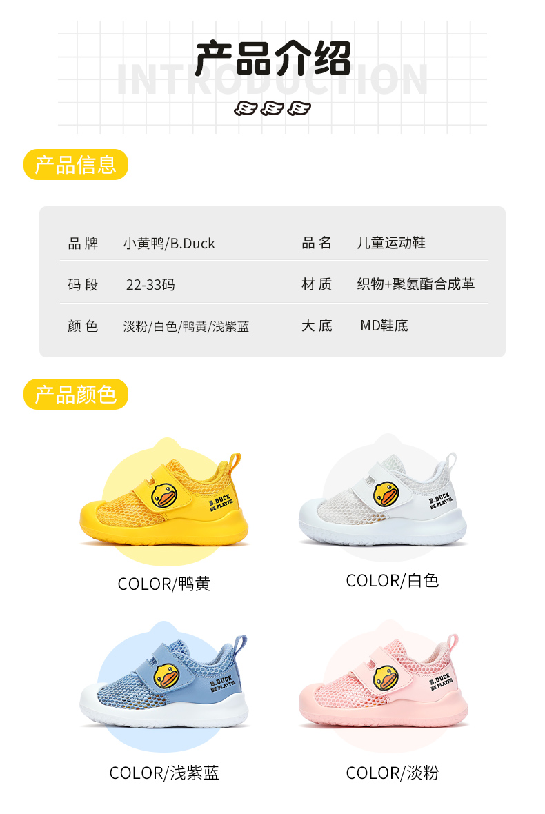 B.Duck小黄鸭童鞋夏季儿童运动鞋22-33 MB2282996A
