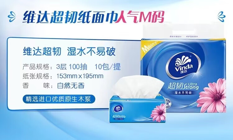 维达3层 超韧抽取式纸面巾M码 V2253 100抽*10包 V2253