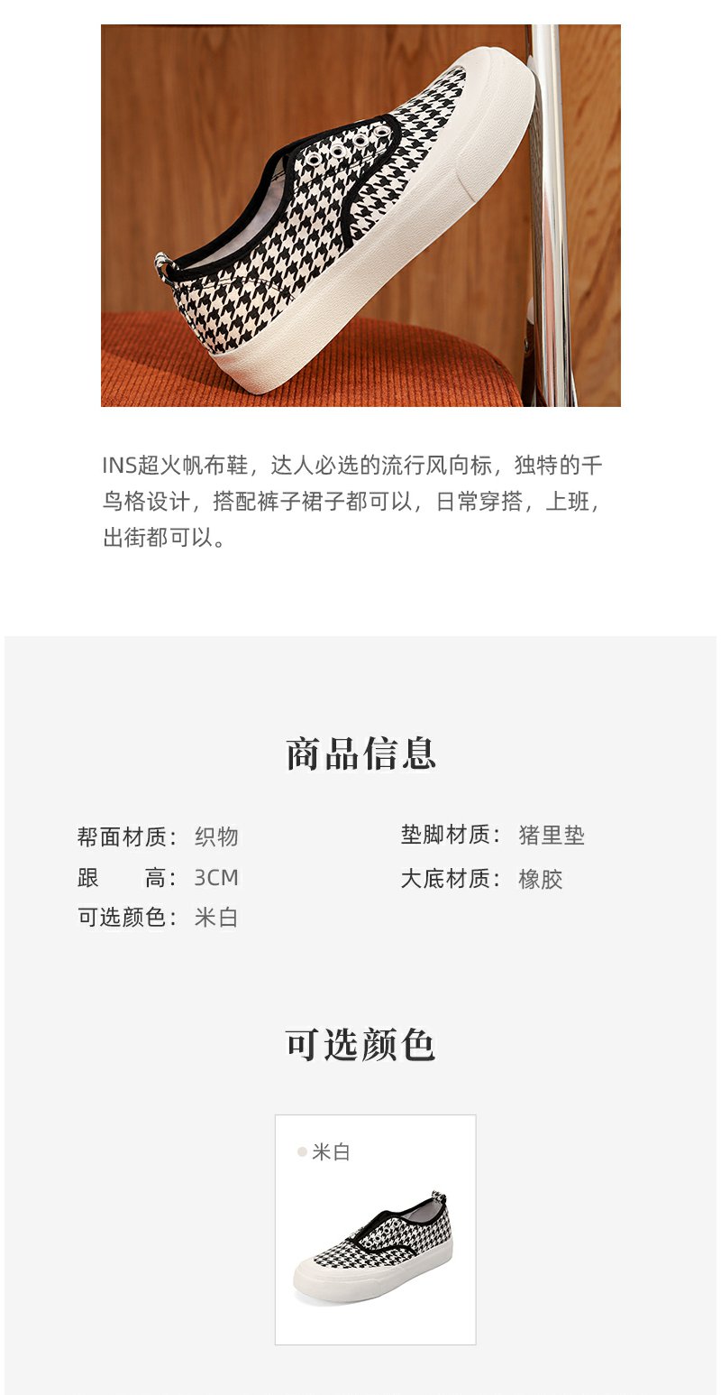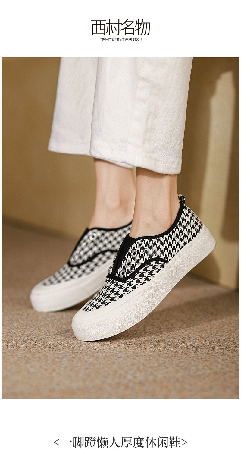 西村名物2022春季新款千鸟格帆布鞋女ins潮流百搭休闲鞋女T22AM17581