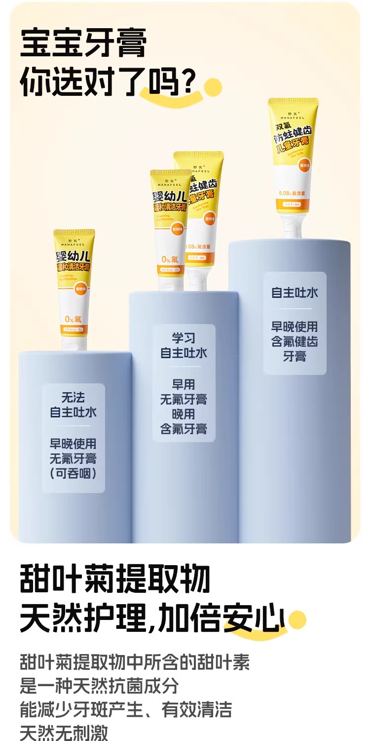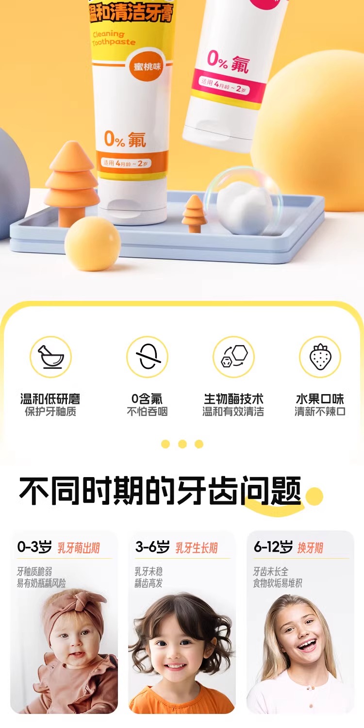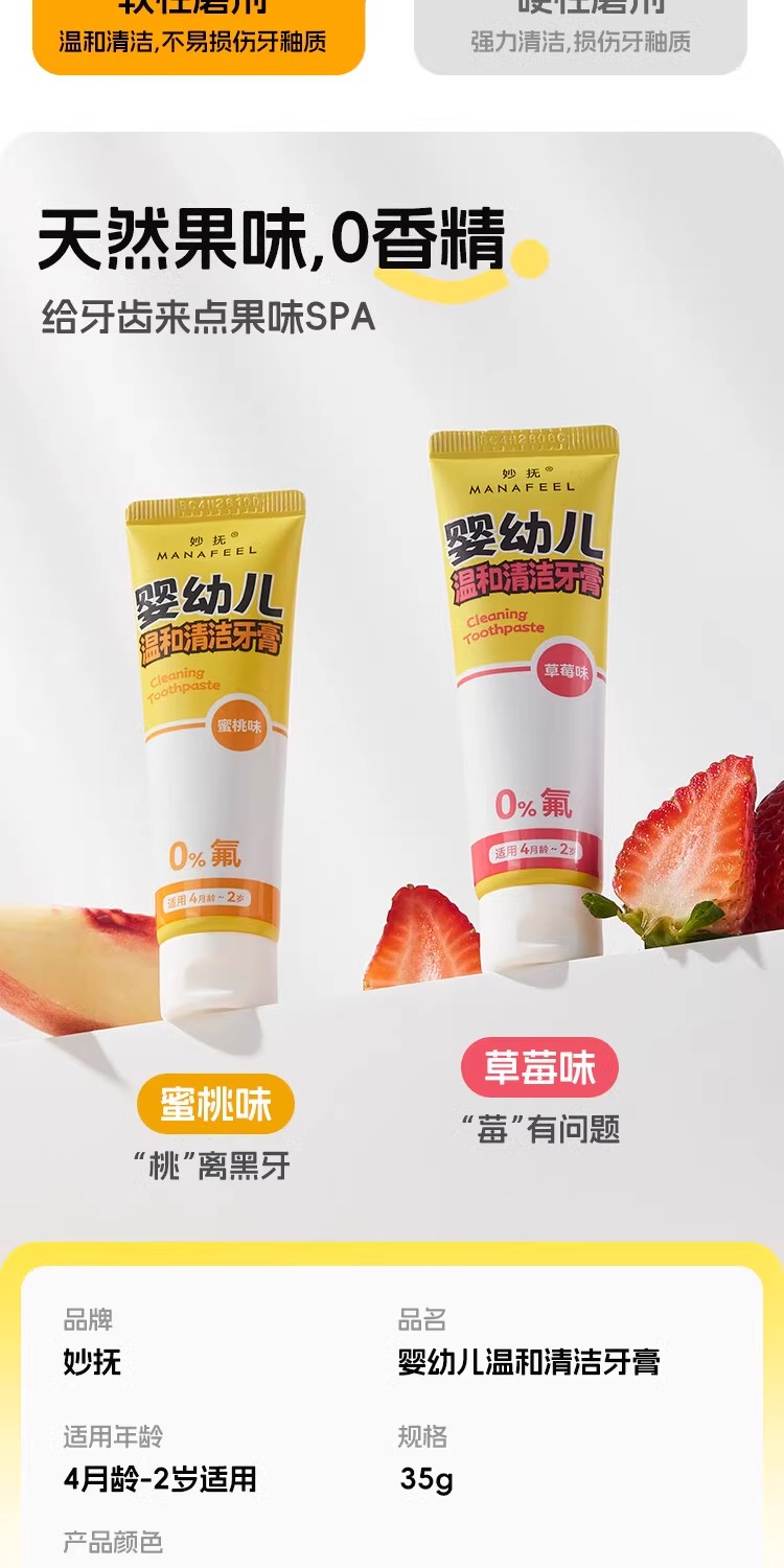 妙抚双氟防蛀健齿儿童牙膏1-6岁草莓味/蜜桃味/MF-ZYY9936/MF-ZYY9905