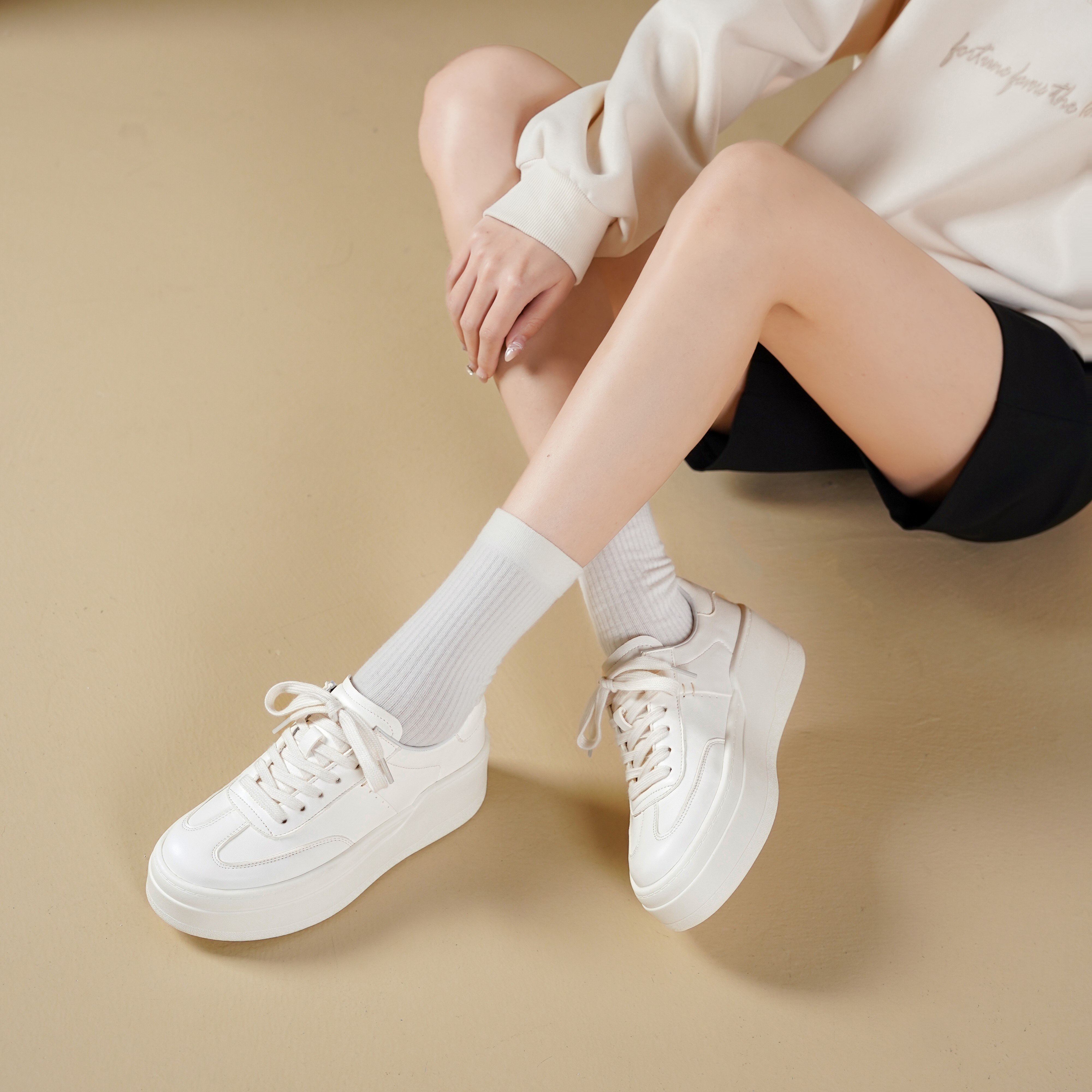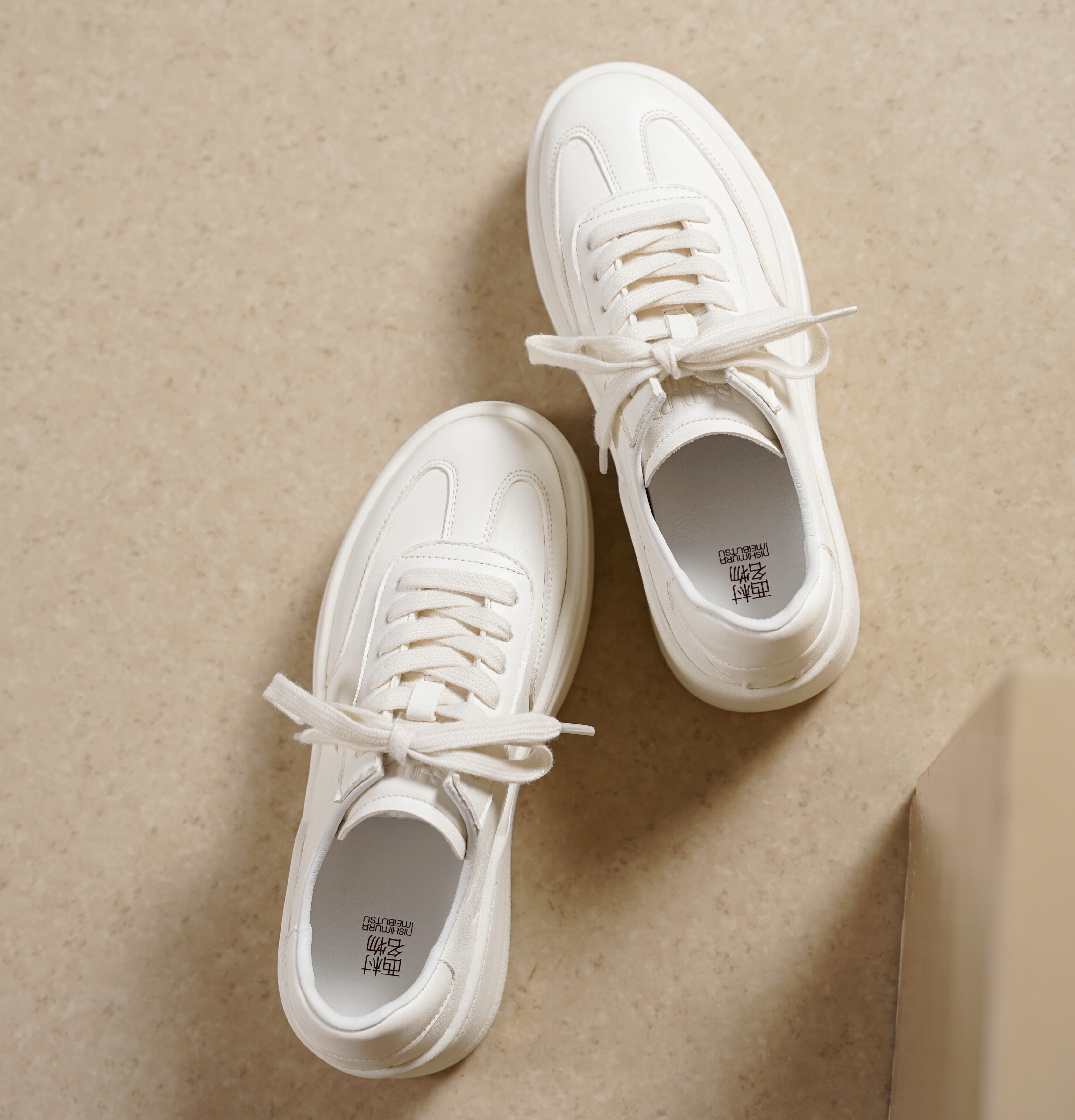 西村名物2025年春季新款超轻厚底防滑系带小白鞋X25AM14801