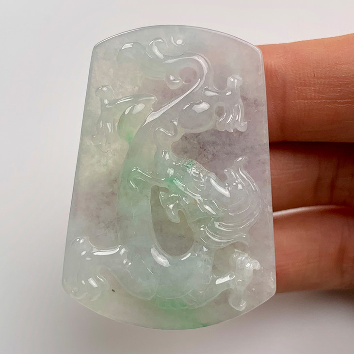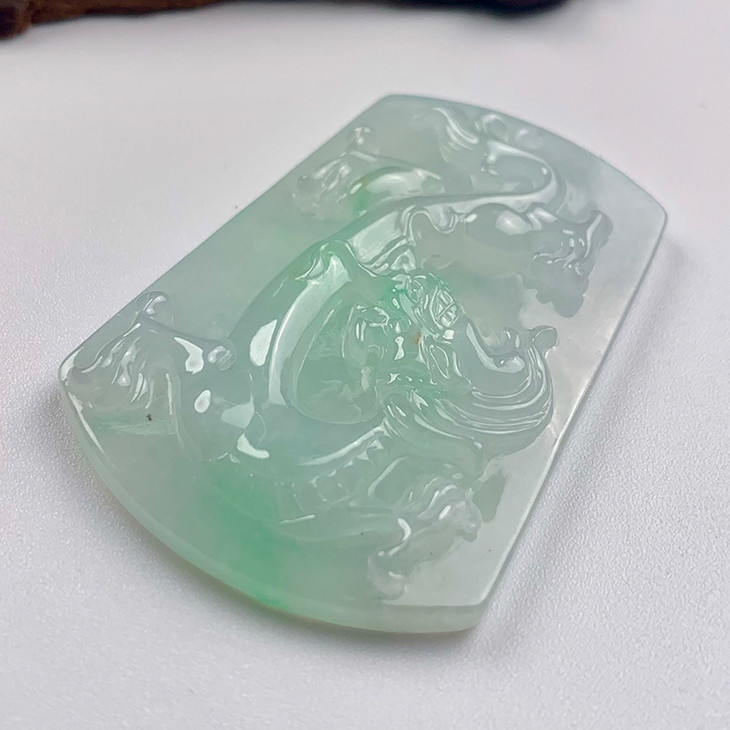 派瑞翡翠 翡翠龙牌挂件 糯种 飘绿花