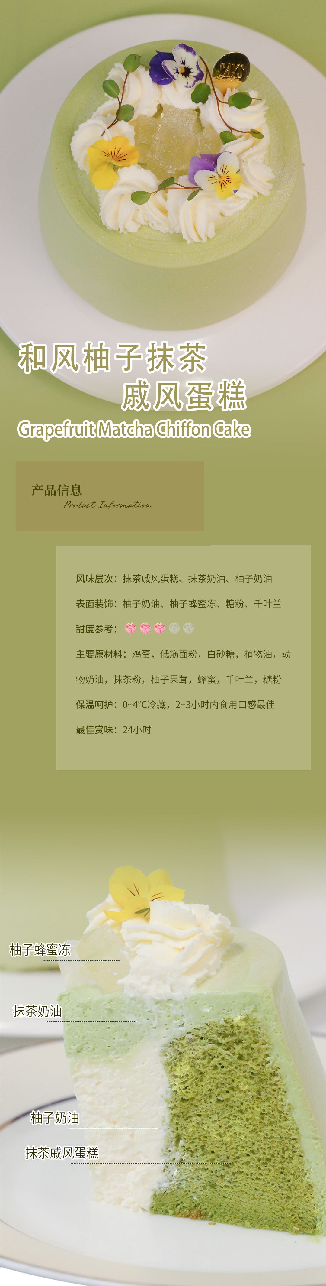和风柚子抹茶戚风 Grapefruit Matcha Chiffon Cake