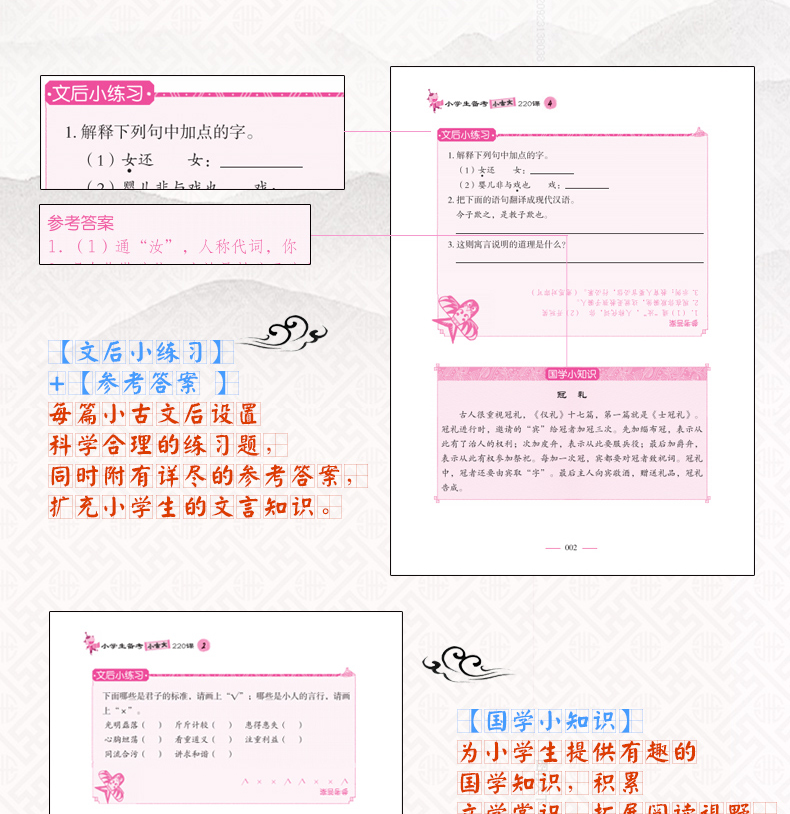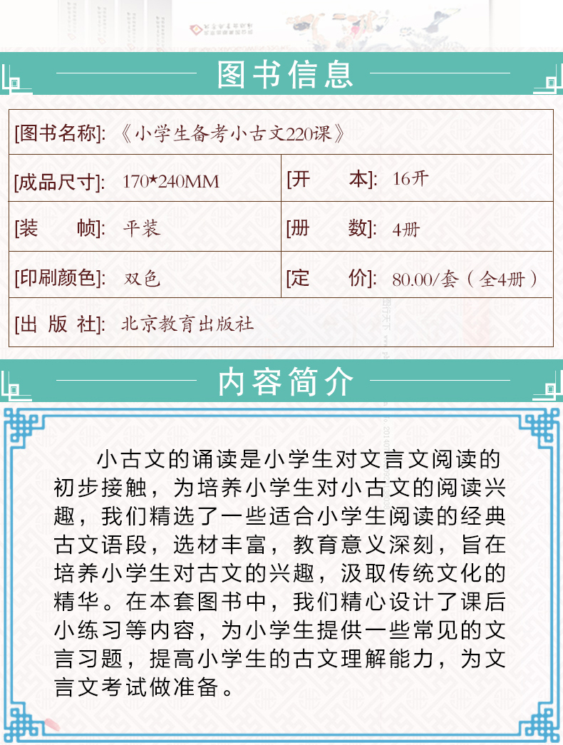 小学生备考小古文220课 全4册 1-6年级文言文入门启蒙 小学生小古文100课走进小古文阅读与训练 刘敬余著 小古文100篇古文经典书籍