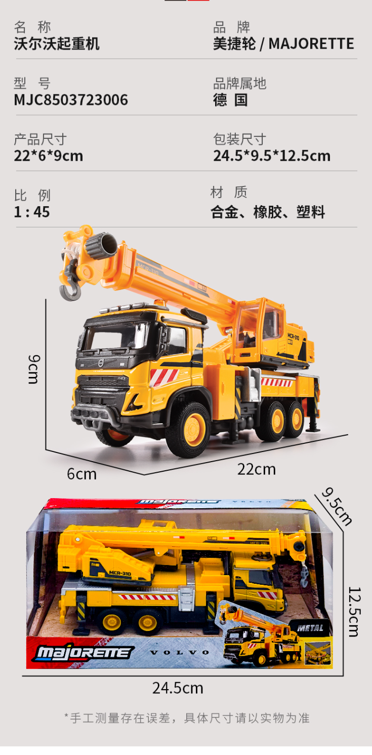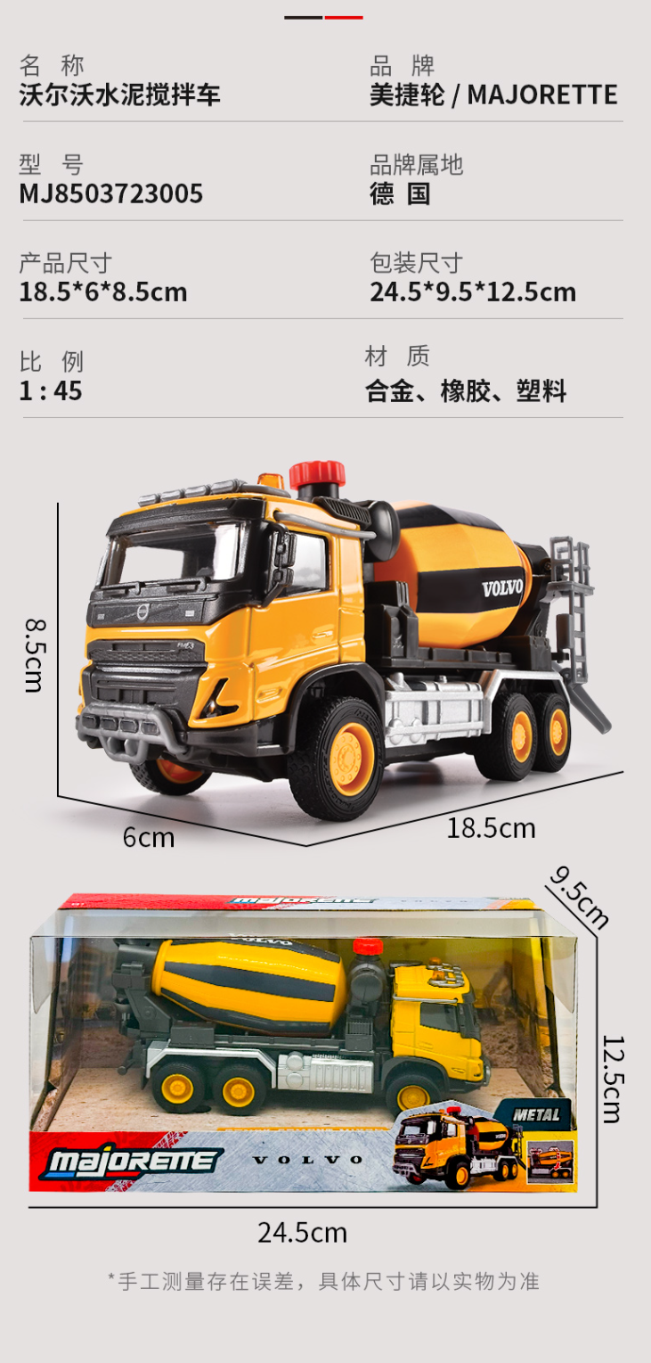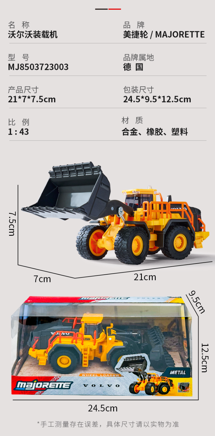 Majorette 美捷轮 沃尔沃系列玩具车 儿童生日礼物男孩玩具模型车工程车 3岁+