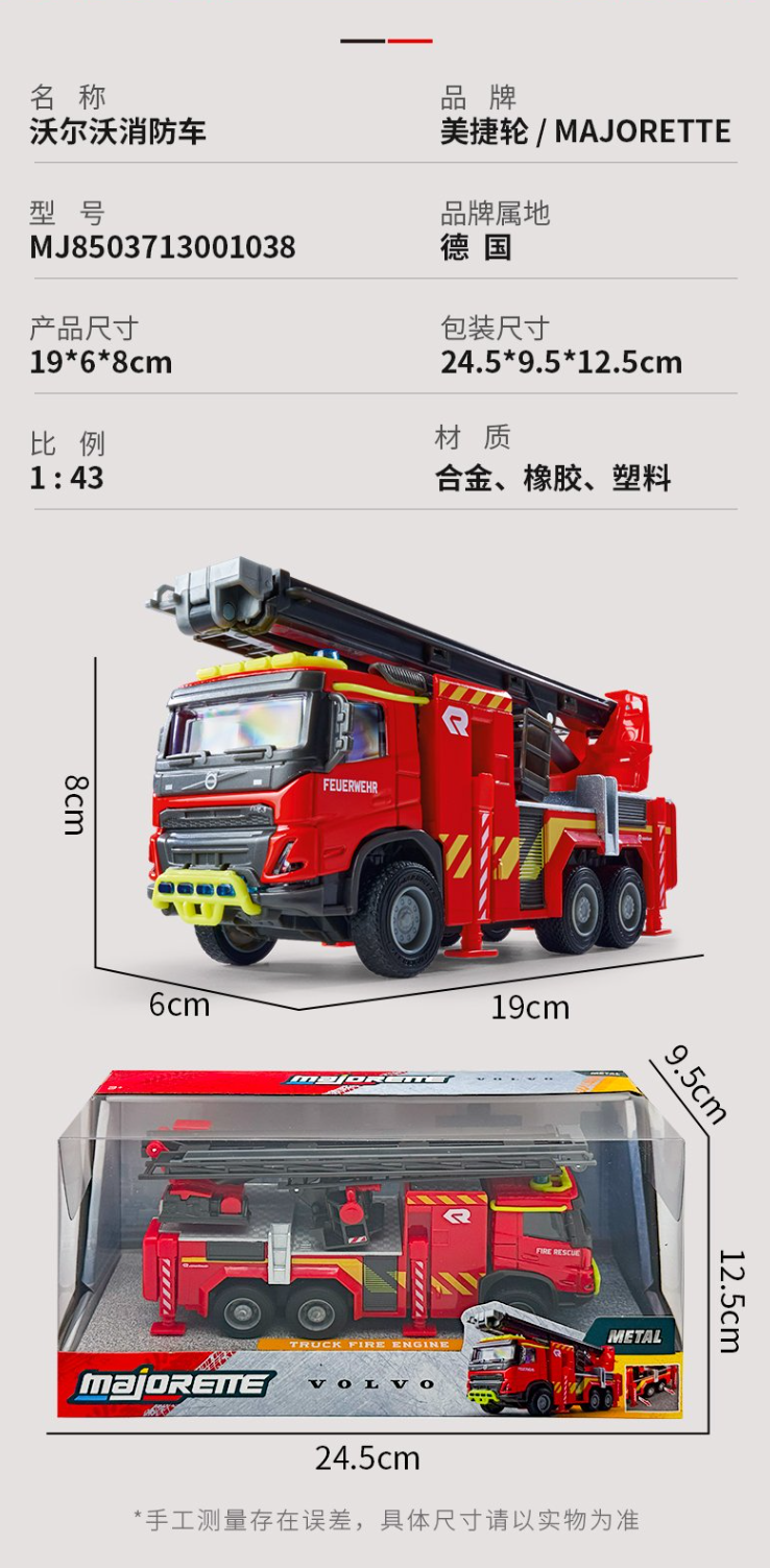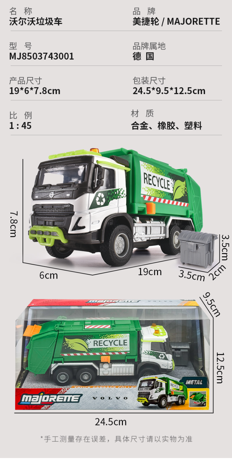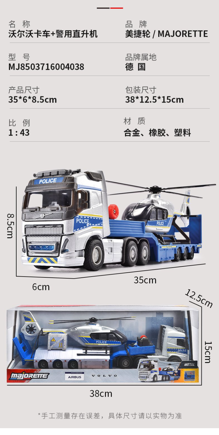 Majorette 美捷轮 沃尔沃系列玩具车 儿童生日礼物男孩玩具模型车工程车 3岁+