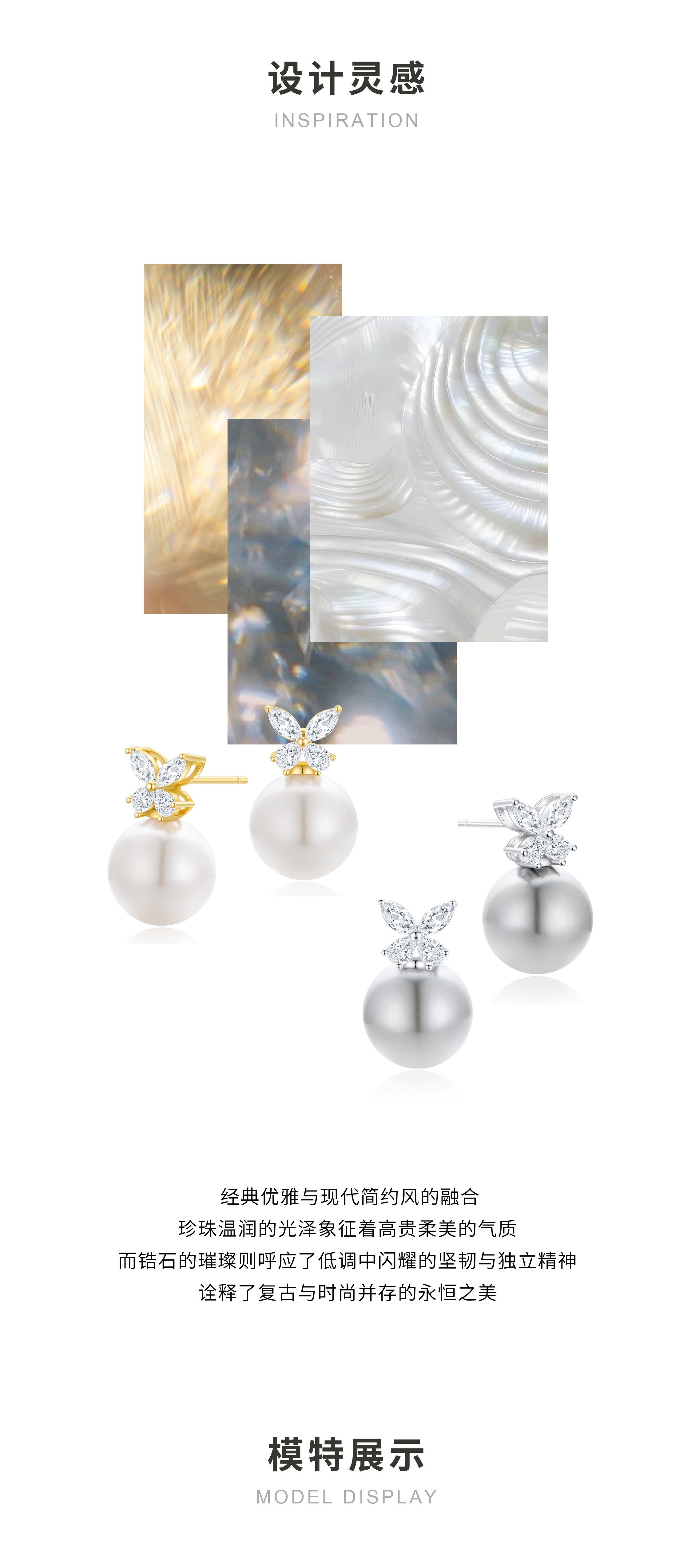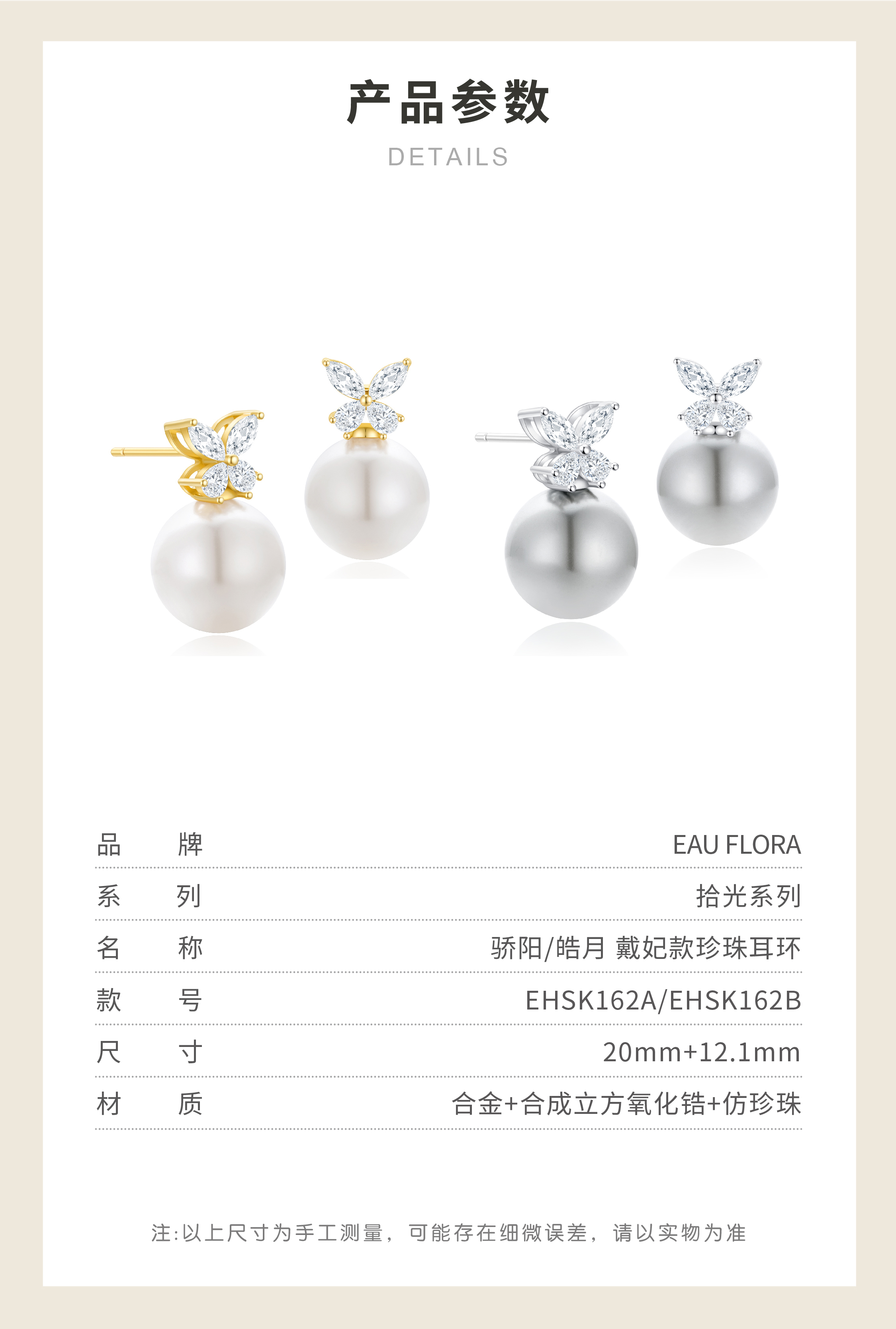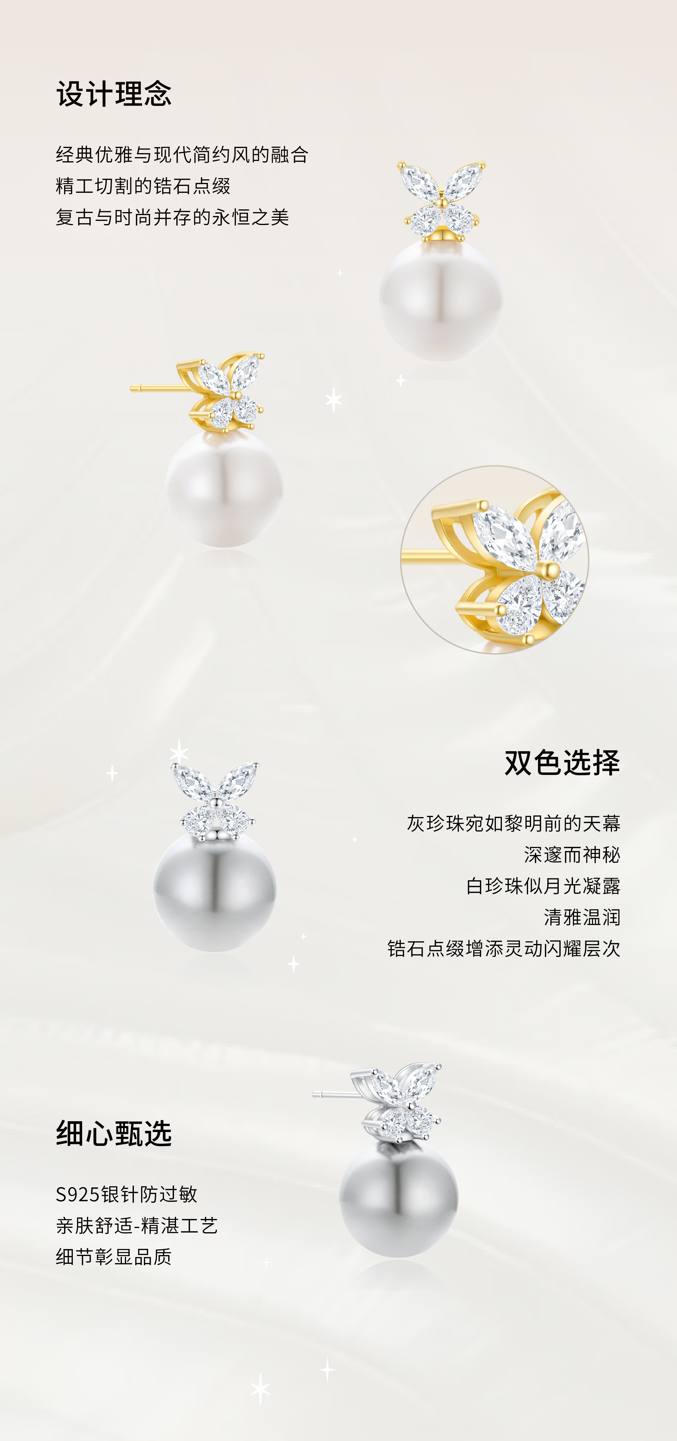 【骄阳】白珍珠耳钉&【皓月】灰珍珠仿珍珠耳钉