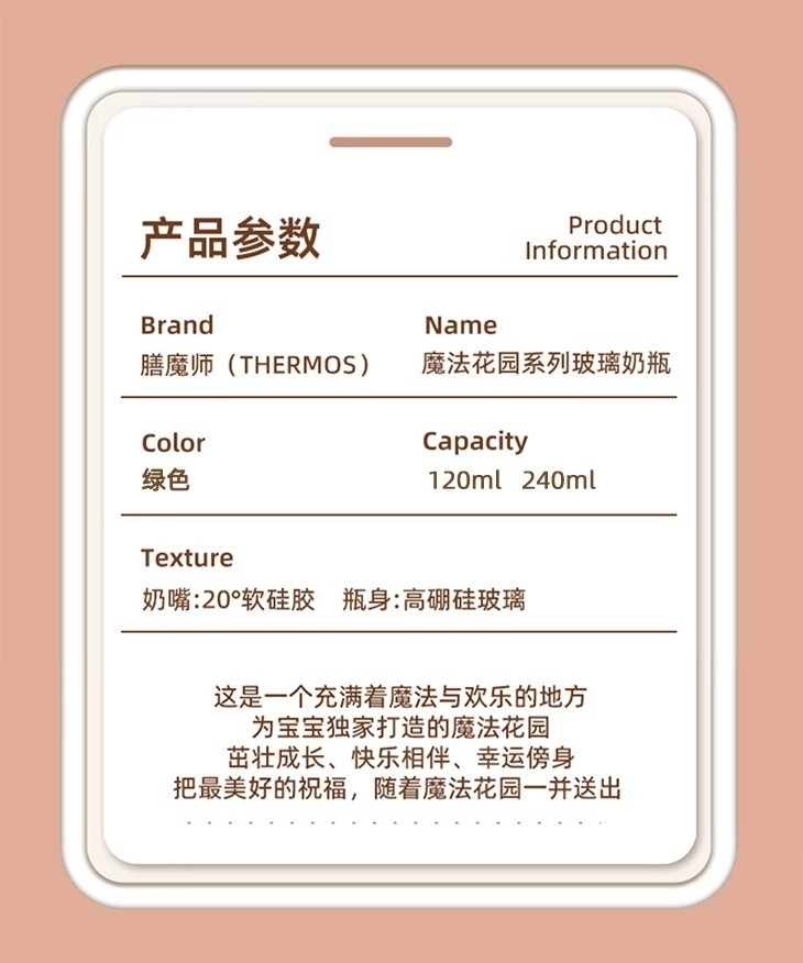 膳魔师foogo 魔法花园系列 玻璃奶瓶120ml绿色(0-3月龄适用)