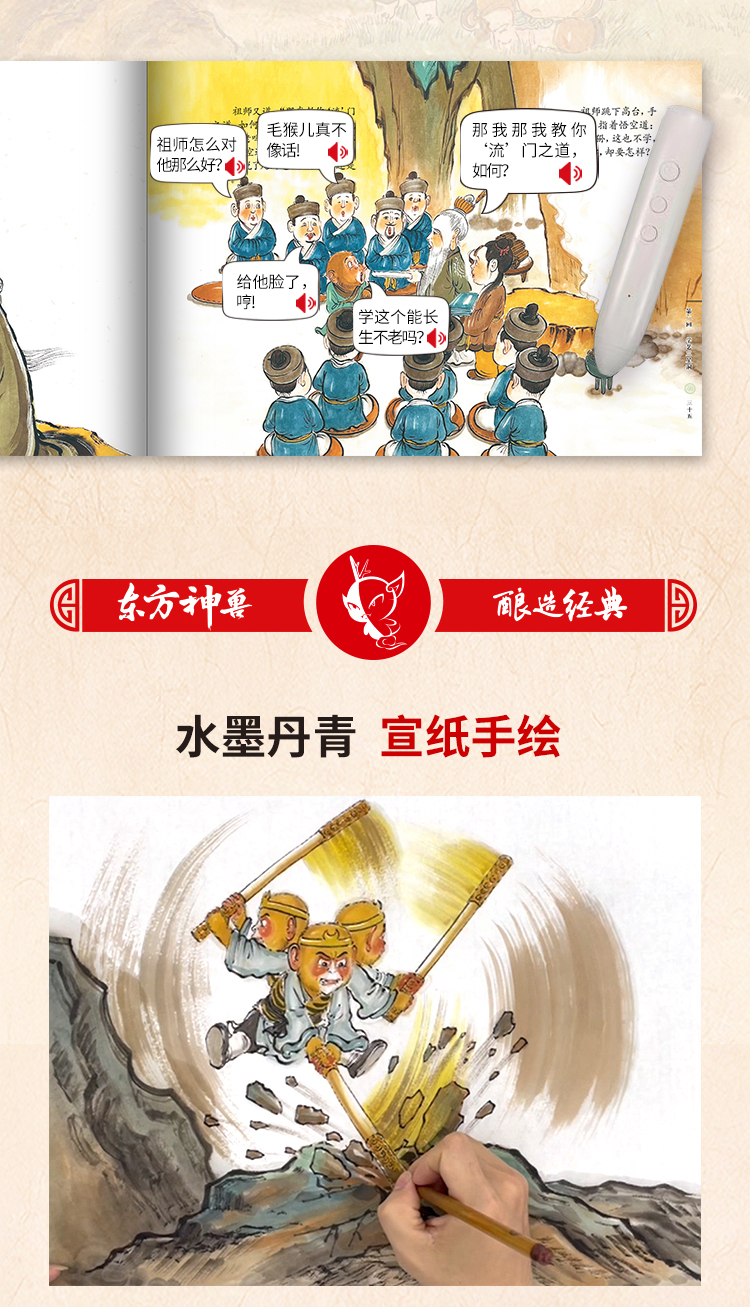 东方神兽-支持点读-幼西游普及版,原著章回无删减,赠伴读音频,1+2购买送身高贴