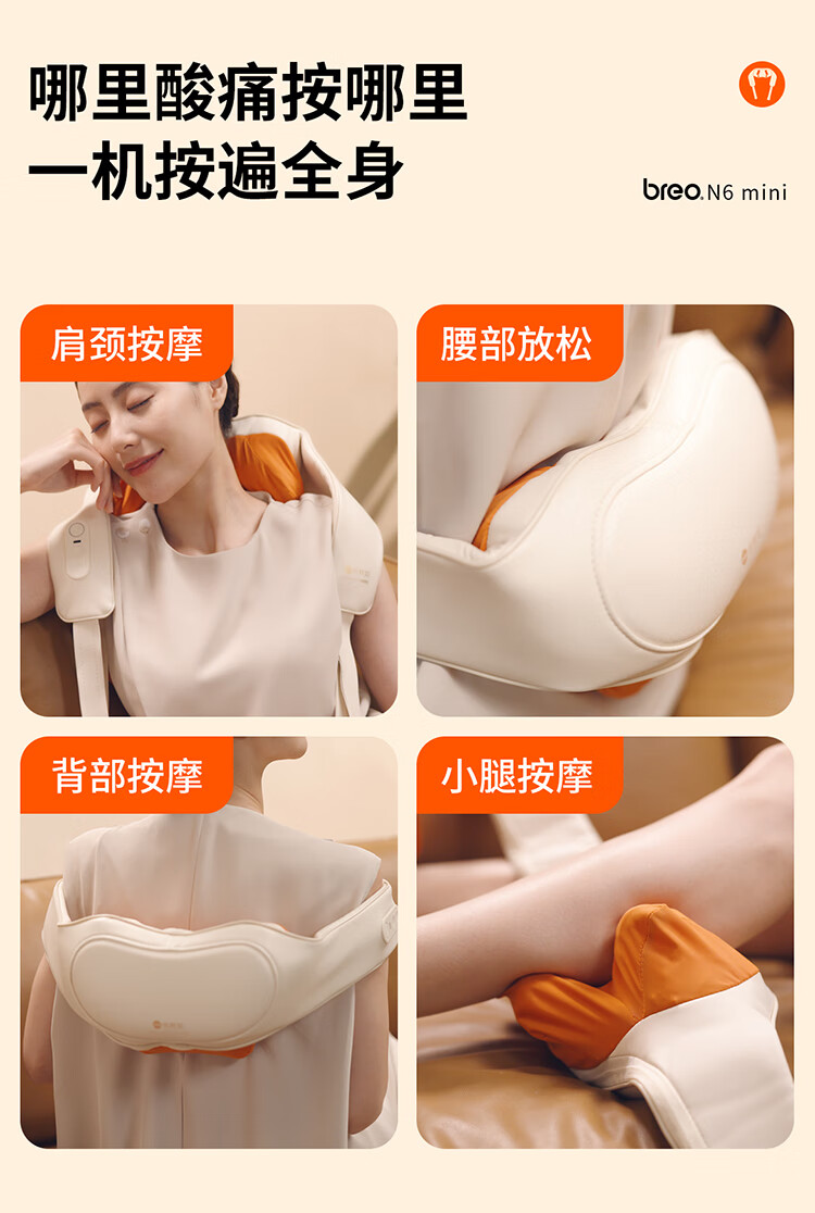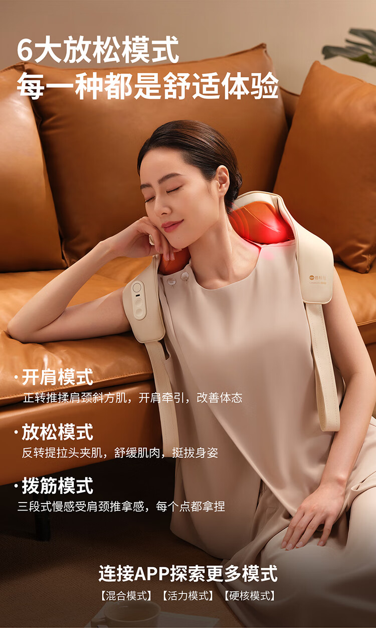 倍轻松 N6mini肩颈按摩仪一字开肩金推手颈椎按摩器斜方